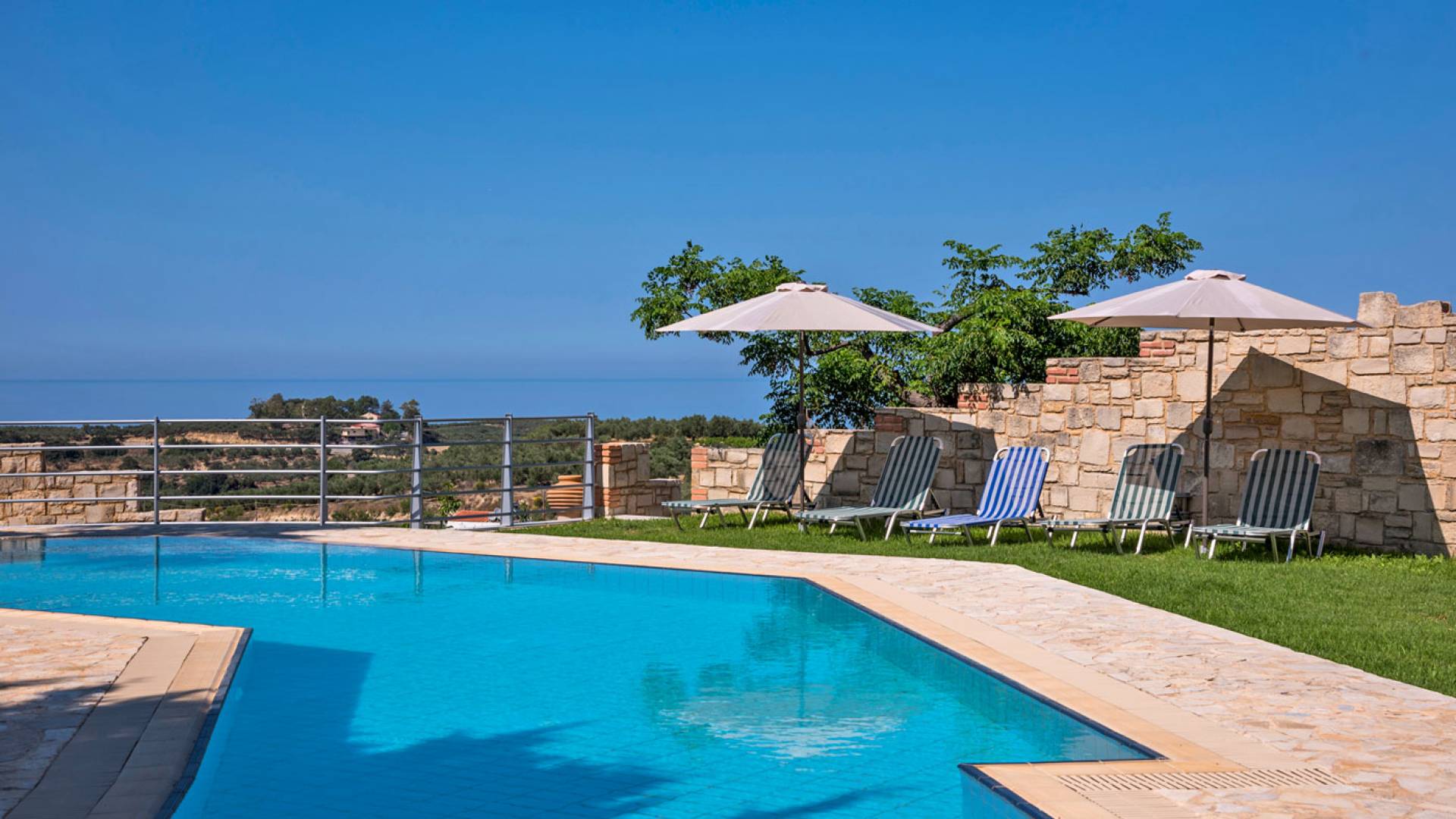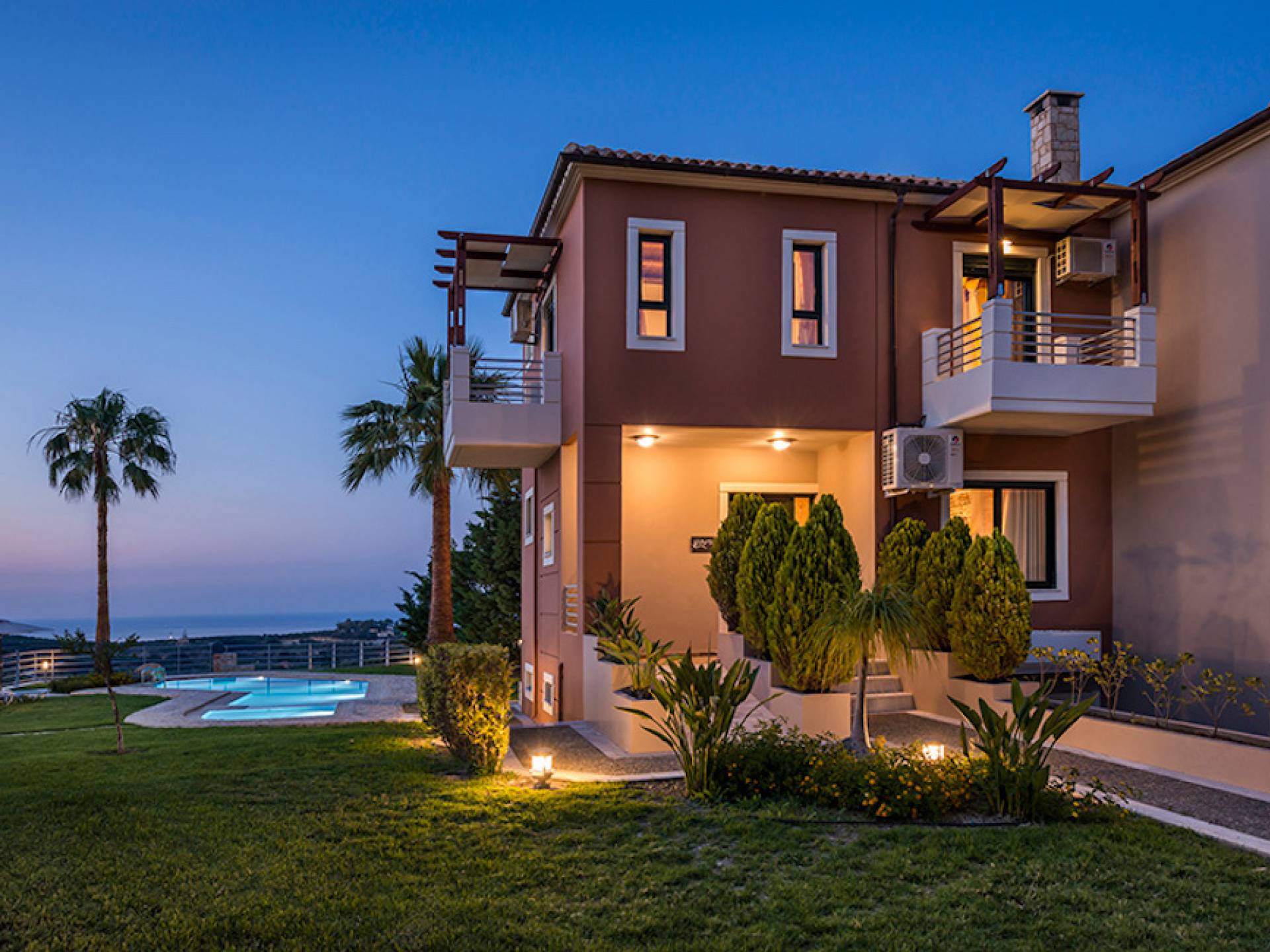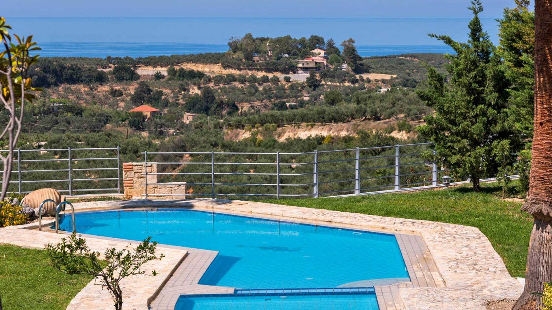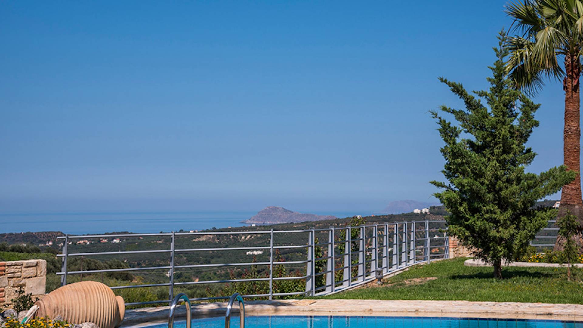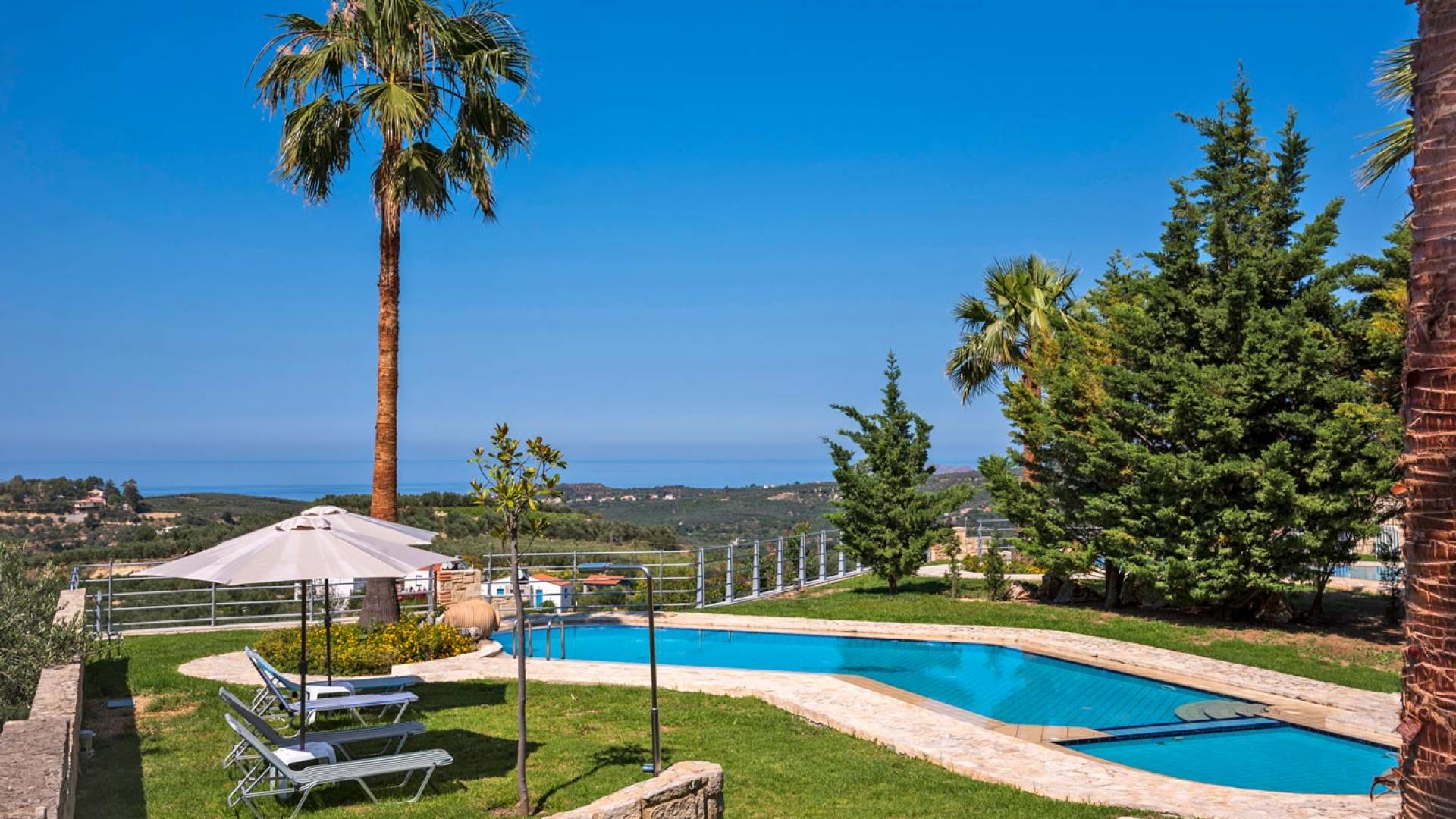 Secluded villa with garden, pool, 3 bedrooms, 2 bathrooms, sleeps up to 7. Myrtia Villa Chania, is a luxurious maisonette of 110 m² built amongst huge lavish gardens offering great sea view and services in absolute privacy.
