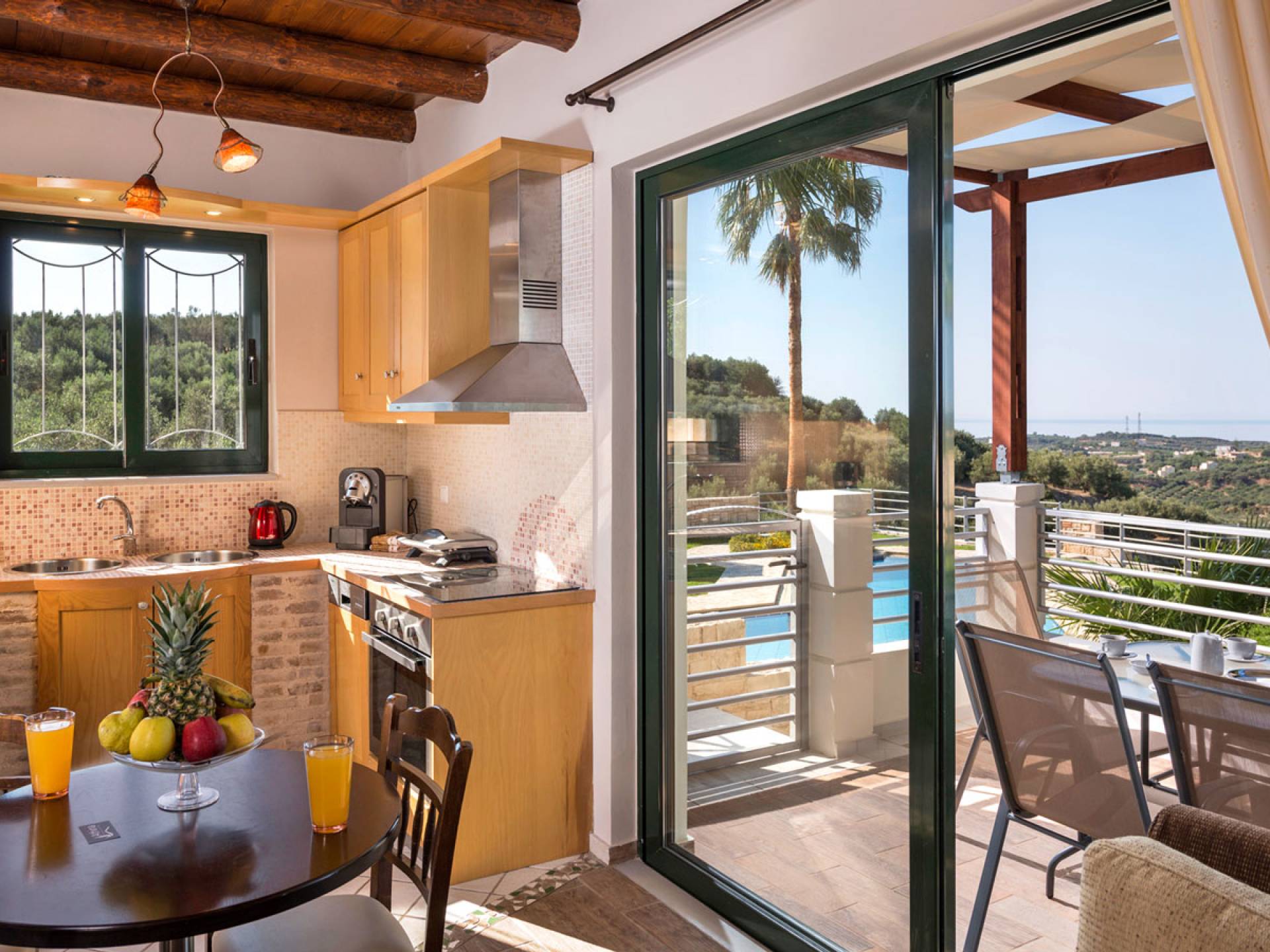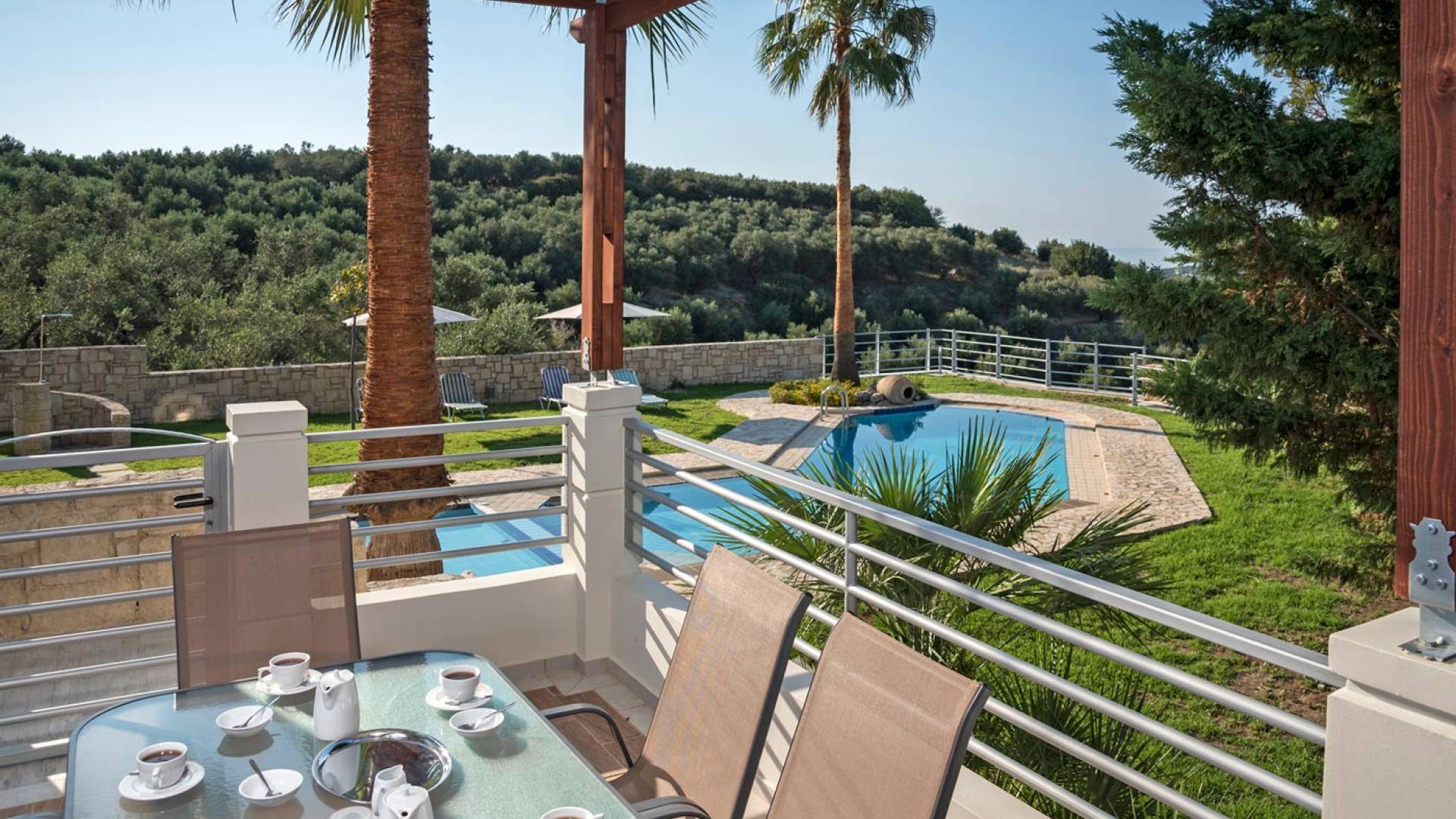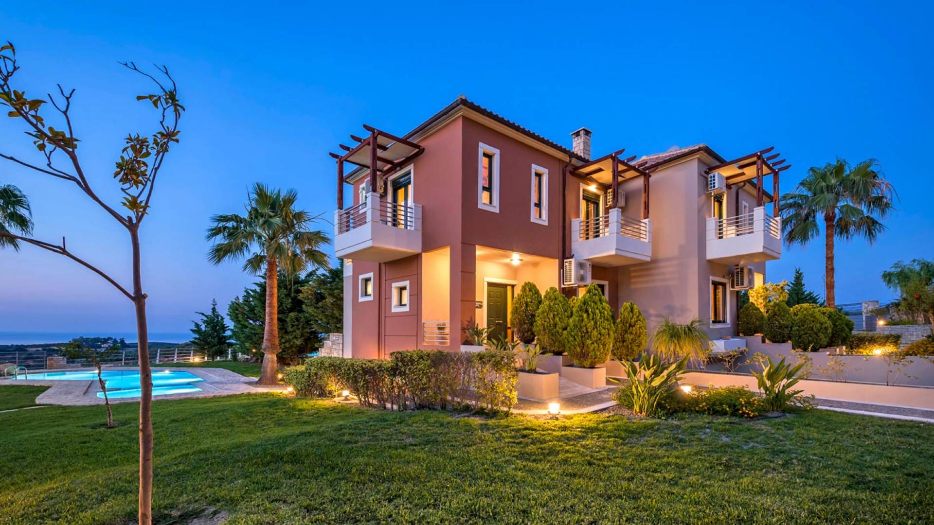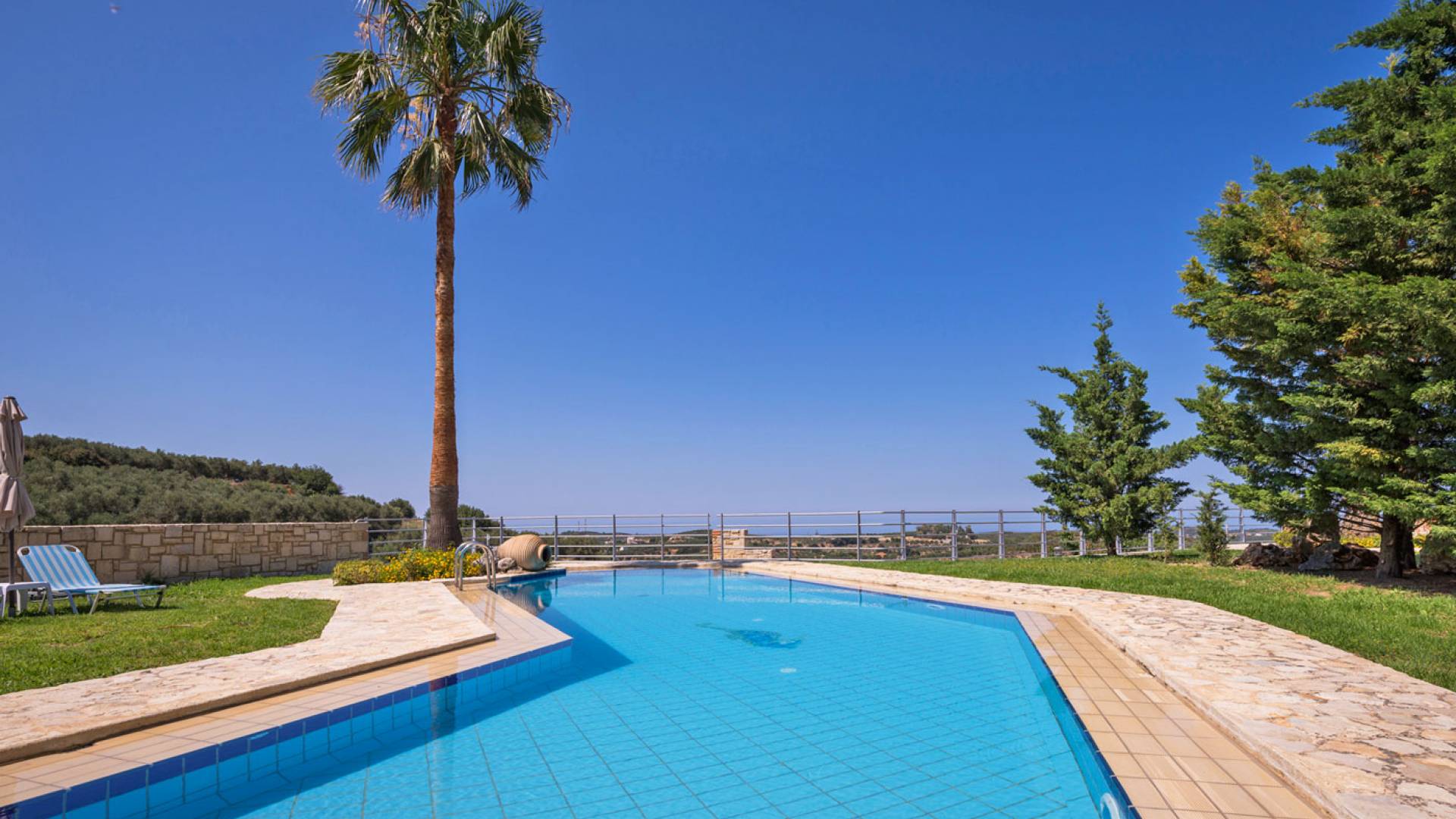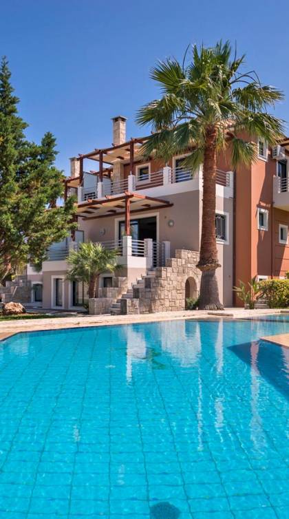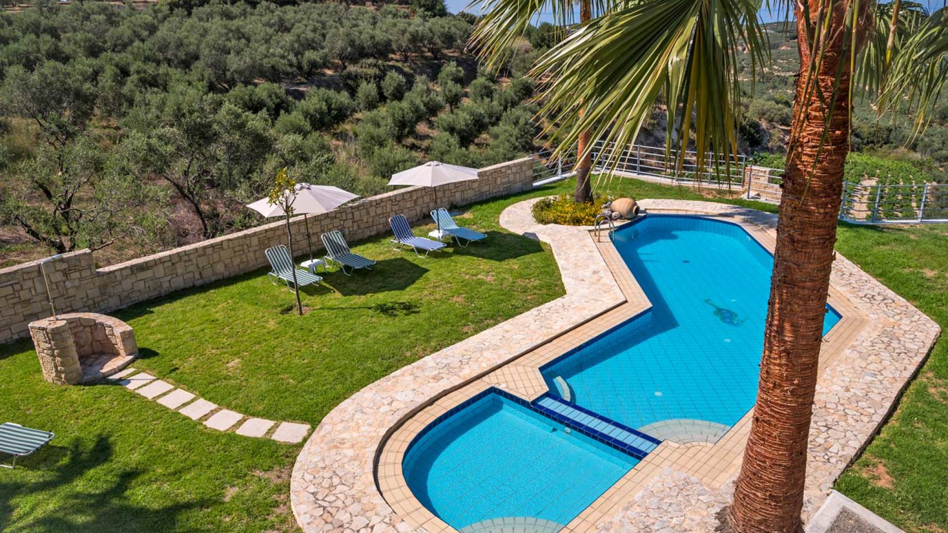 Secluded villa with garden, pool, 3 bedrooms, 2 bathrooms, sleeps up to 7. Myrtia Villa Chania, is a luxurious maisonette of 110 m² built amongst huge lavish gardens offering great sea view and services in absolute privacy.