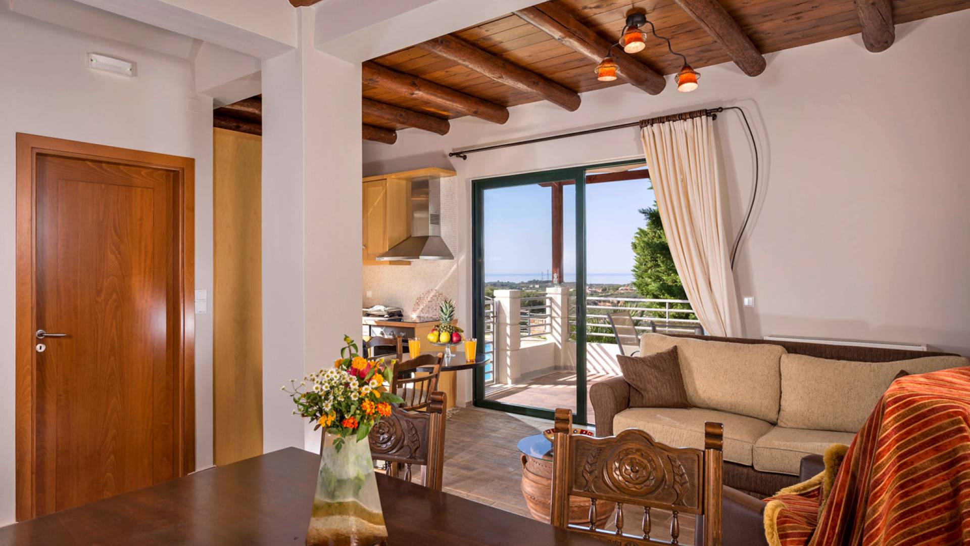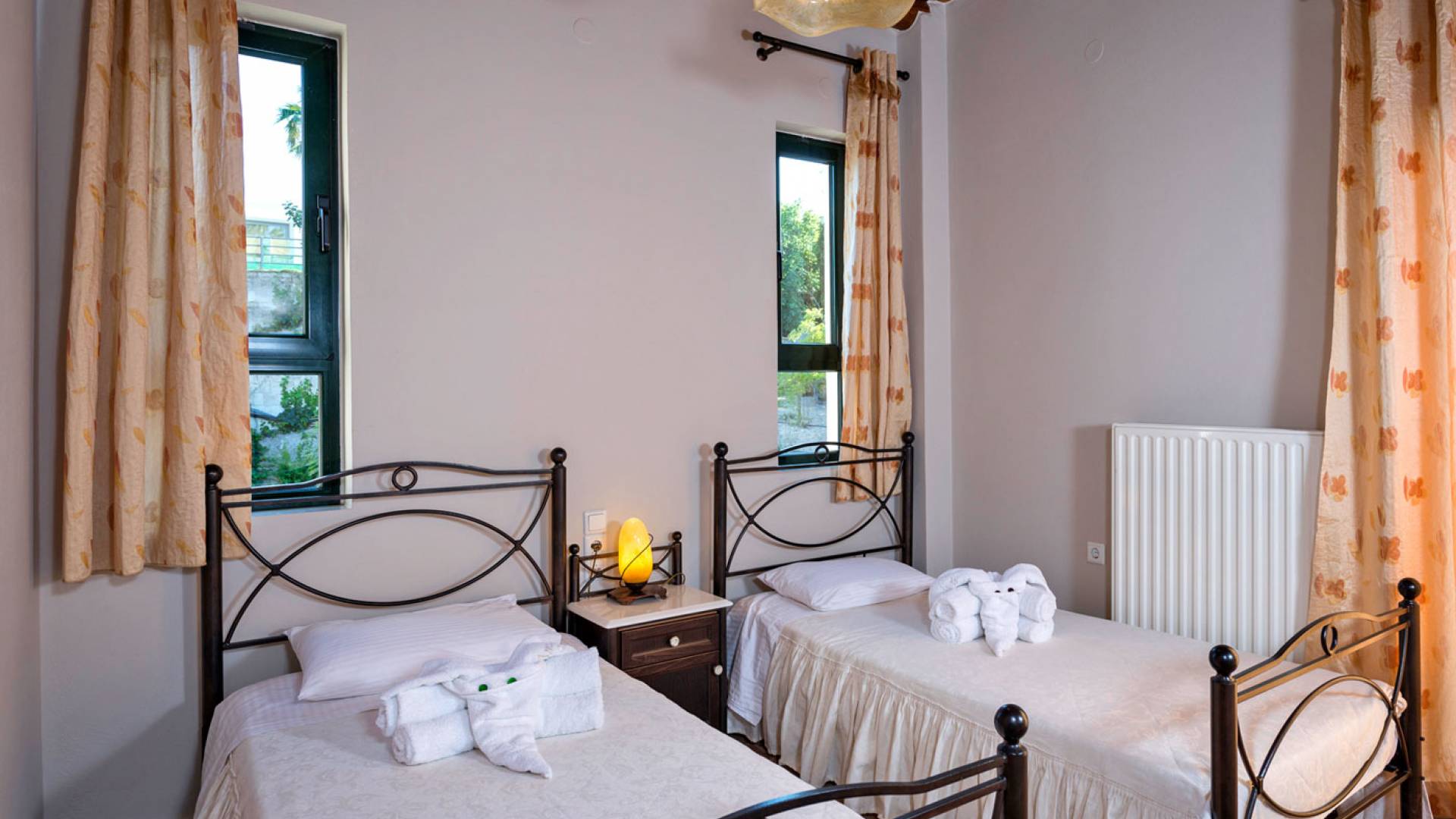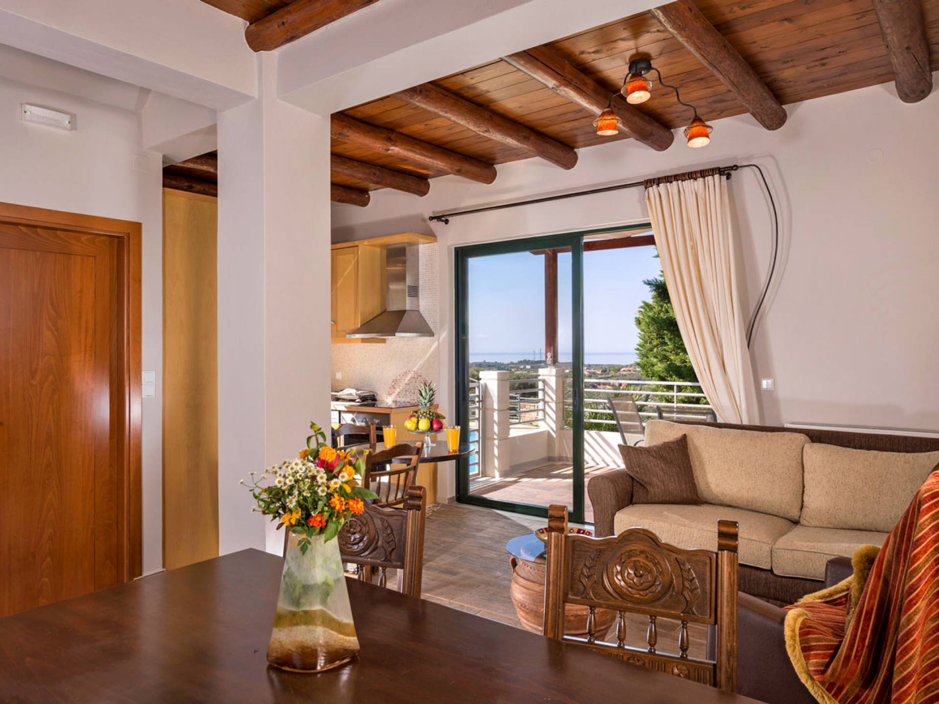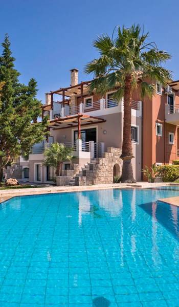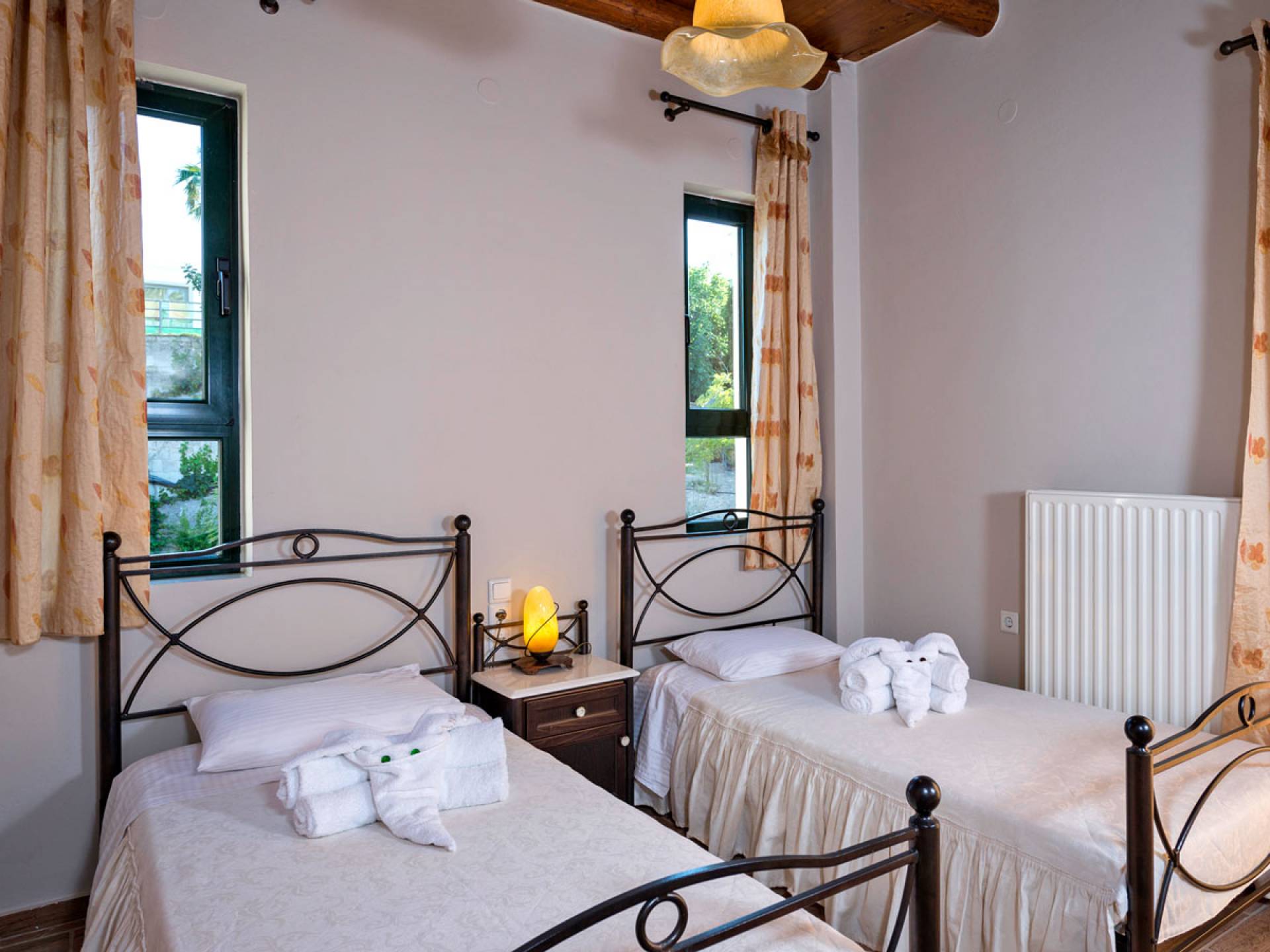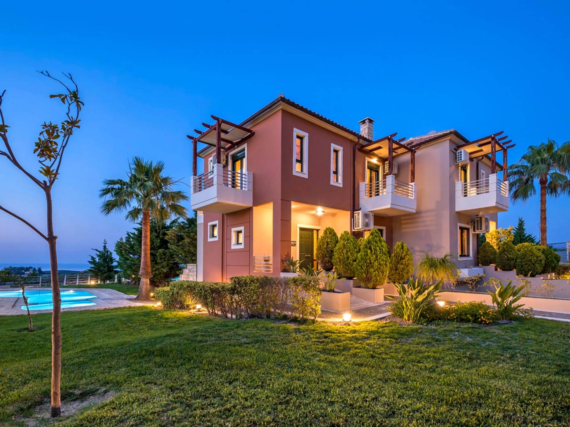Secluded villa with garden, pool, 3 bedrooms, 2 bathrooms, sleeps up to 7. Myrtia Villa Chania, is a luxurious maisonette of 110 m² built amongst huge lavish gardens offering great sea view and services in absolute privacy.