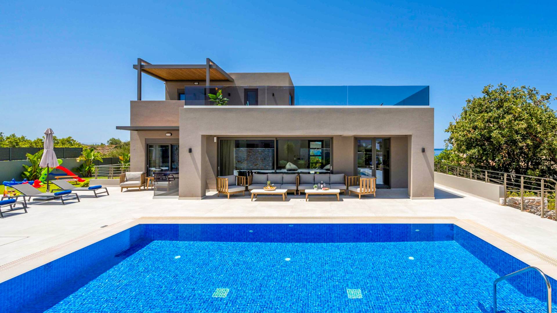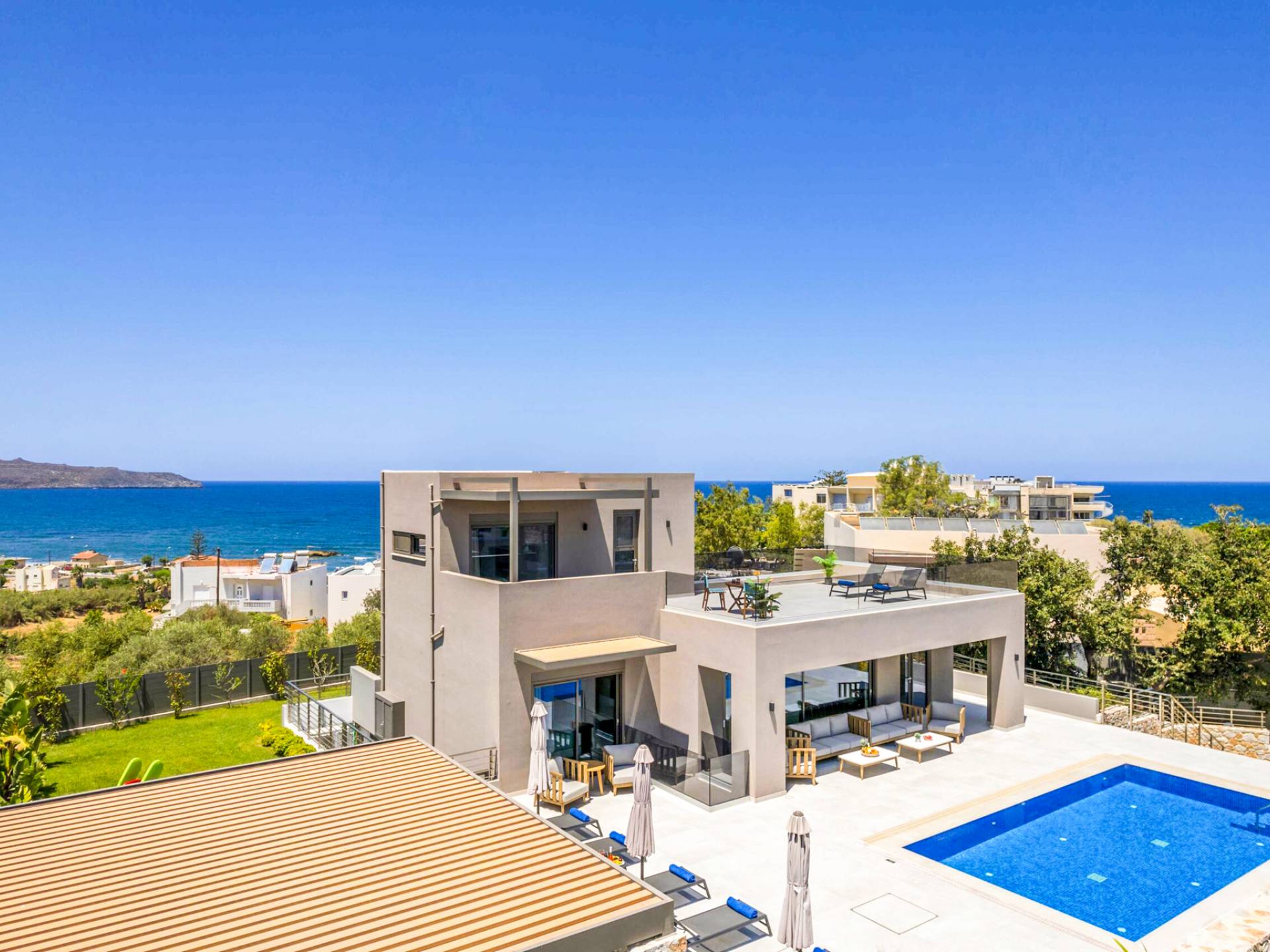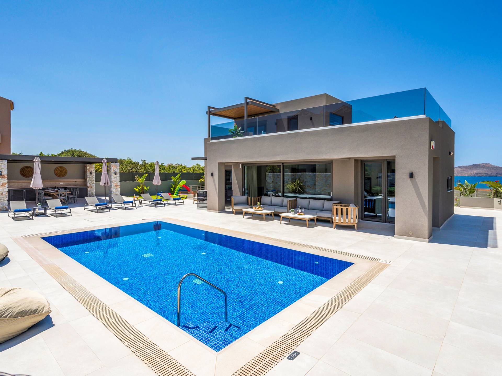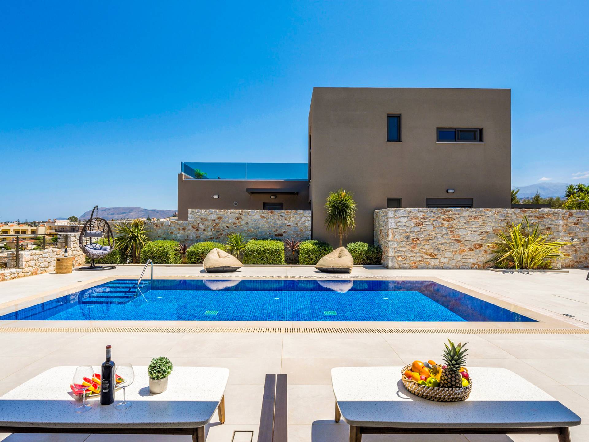 Neos Retreat 2 Chania Crete - Luxury villa with heated pool, jacuzzi, sauna, gym & 5 bedrooms. Just 300m from the beach and minutes from Chania Old Town. Perfect for families & groups.