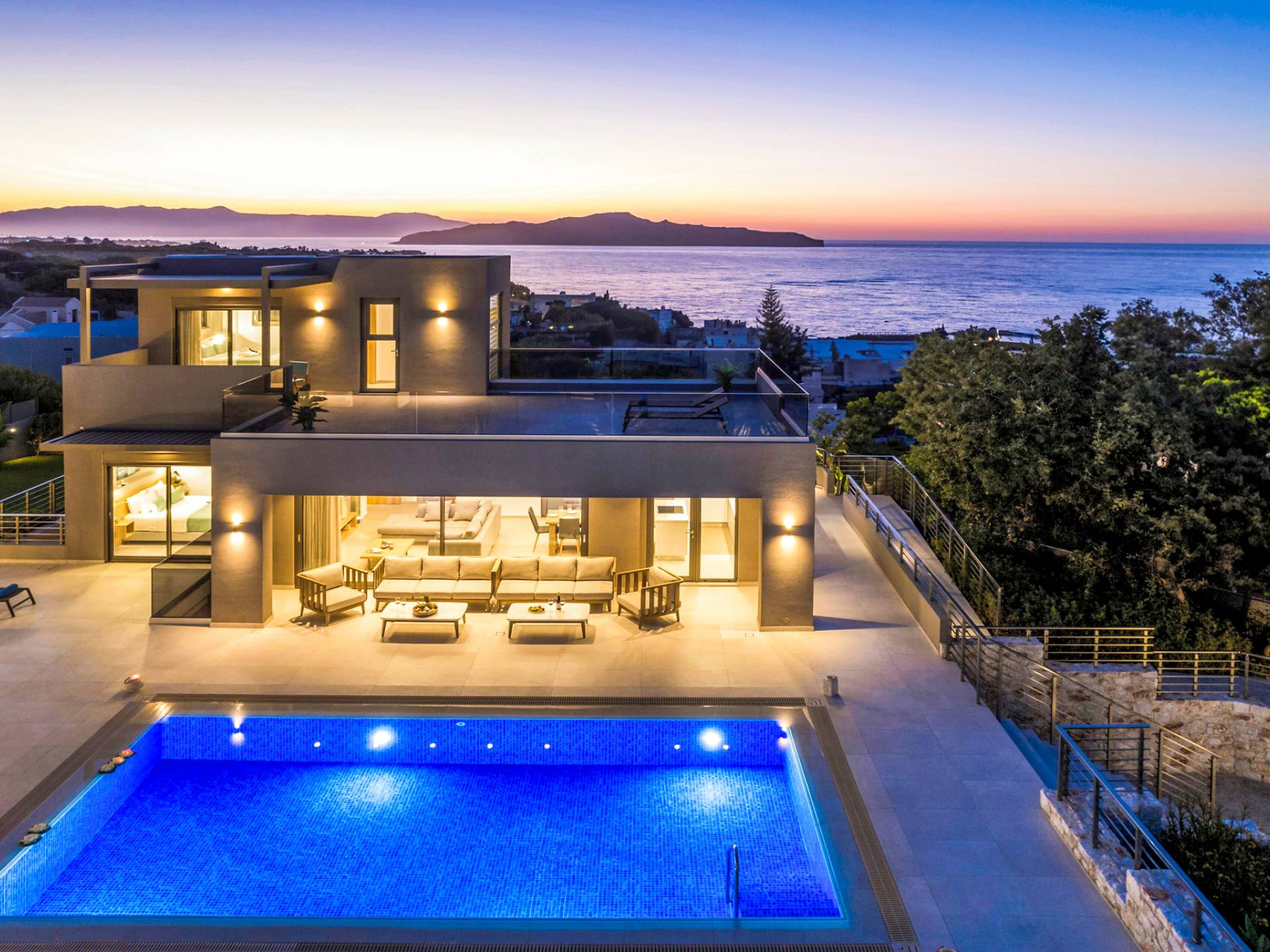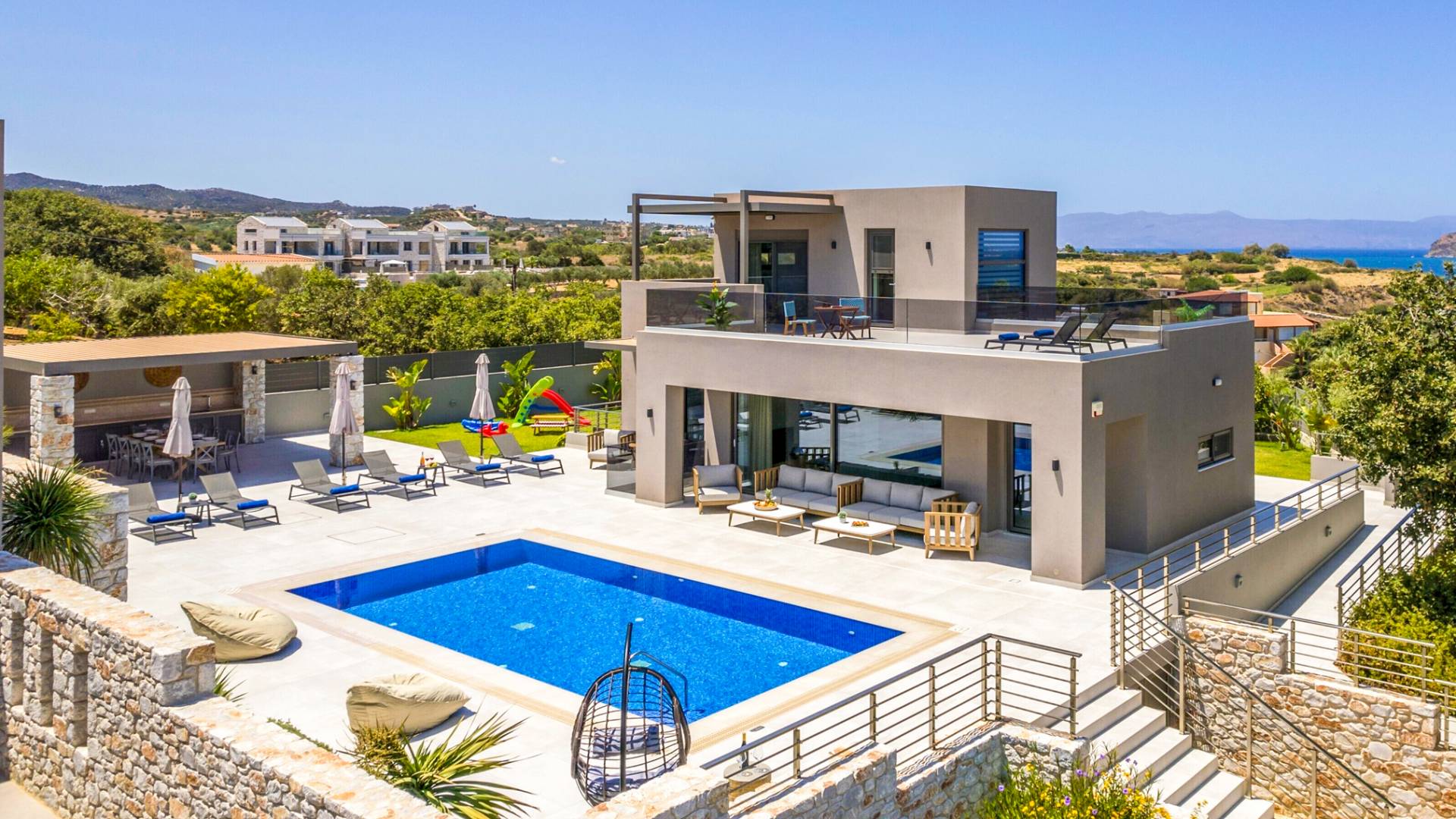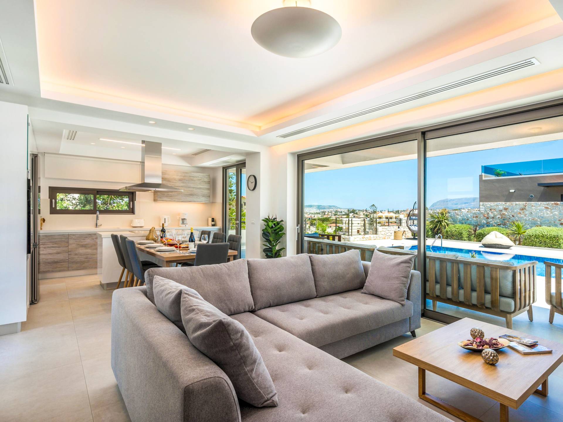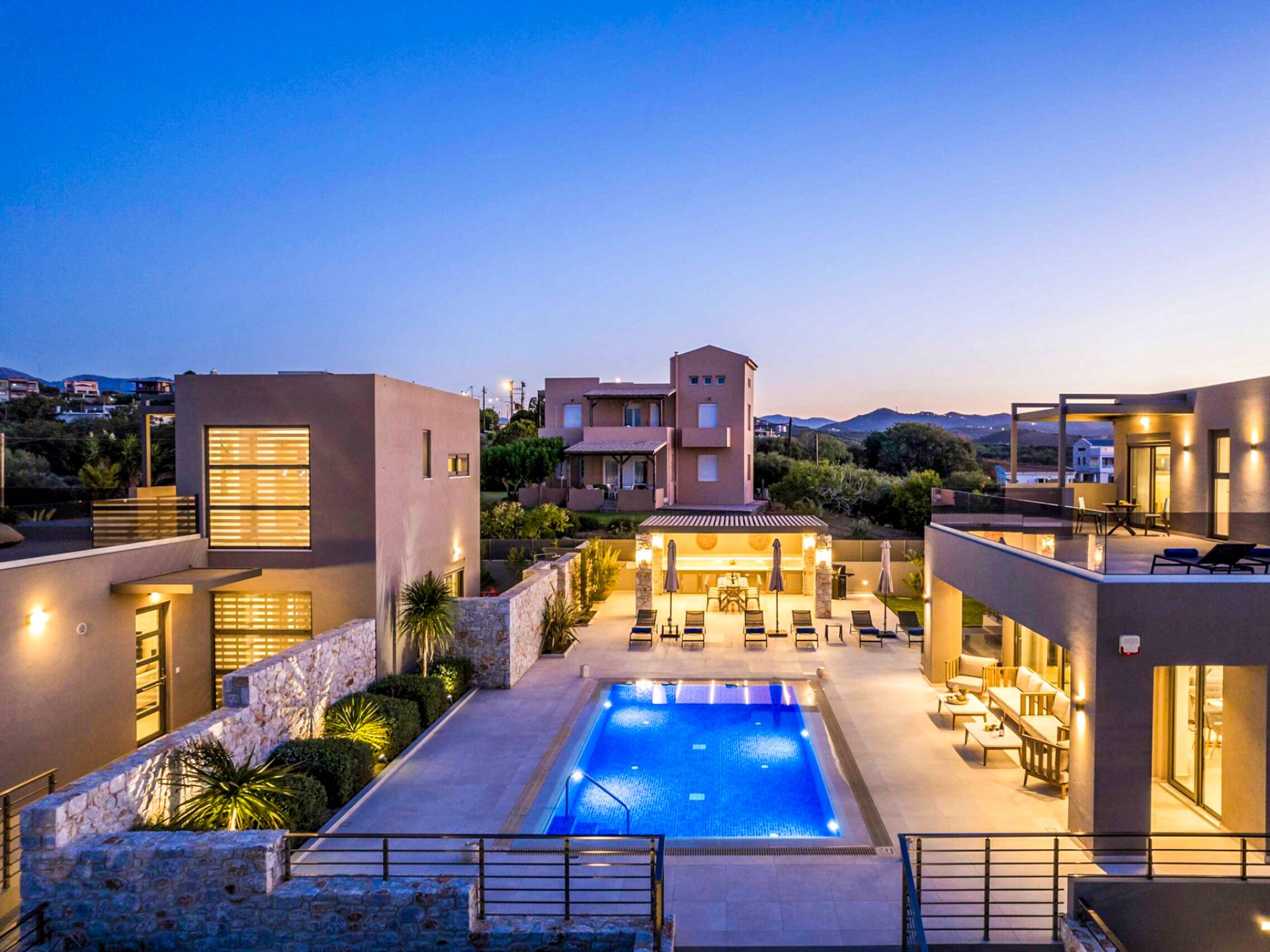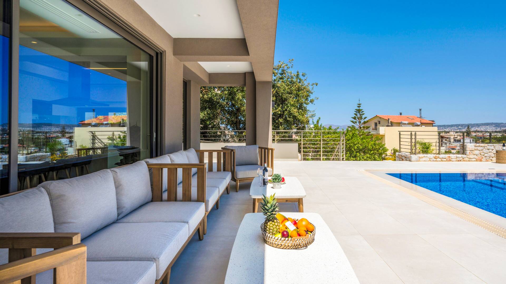 Neos Retreat 2 Chania Crete - Luxury villa with heated pool, jacuzzi, sauna, gym & 5 bedrooms. Just 300m from the beach and minutes from Chania Old Town. Perfect for families & groups.
