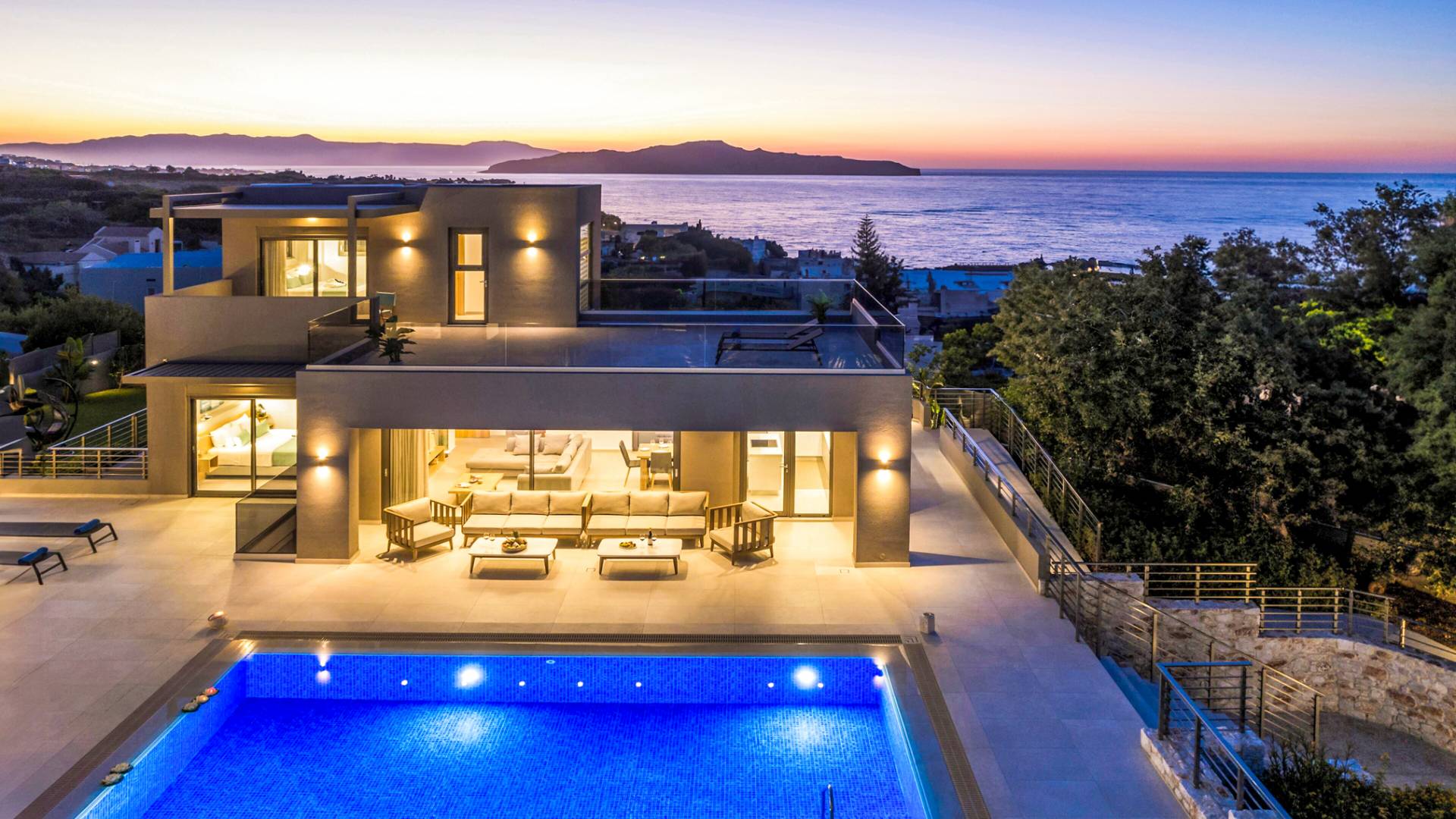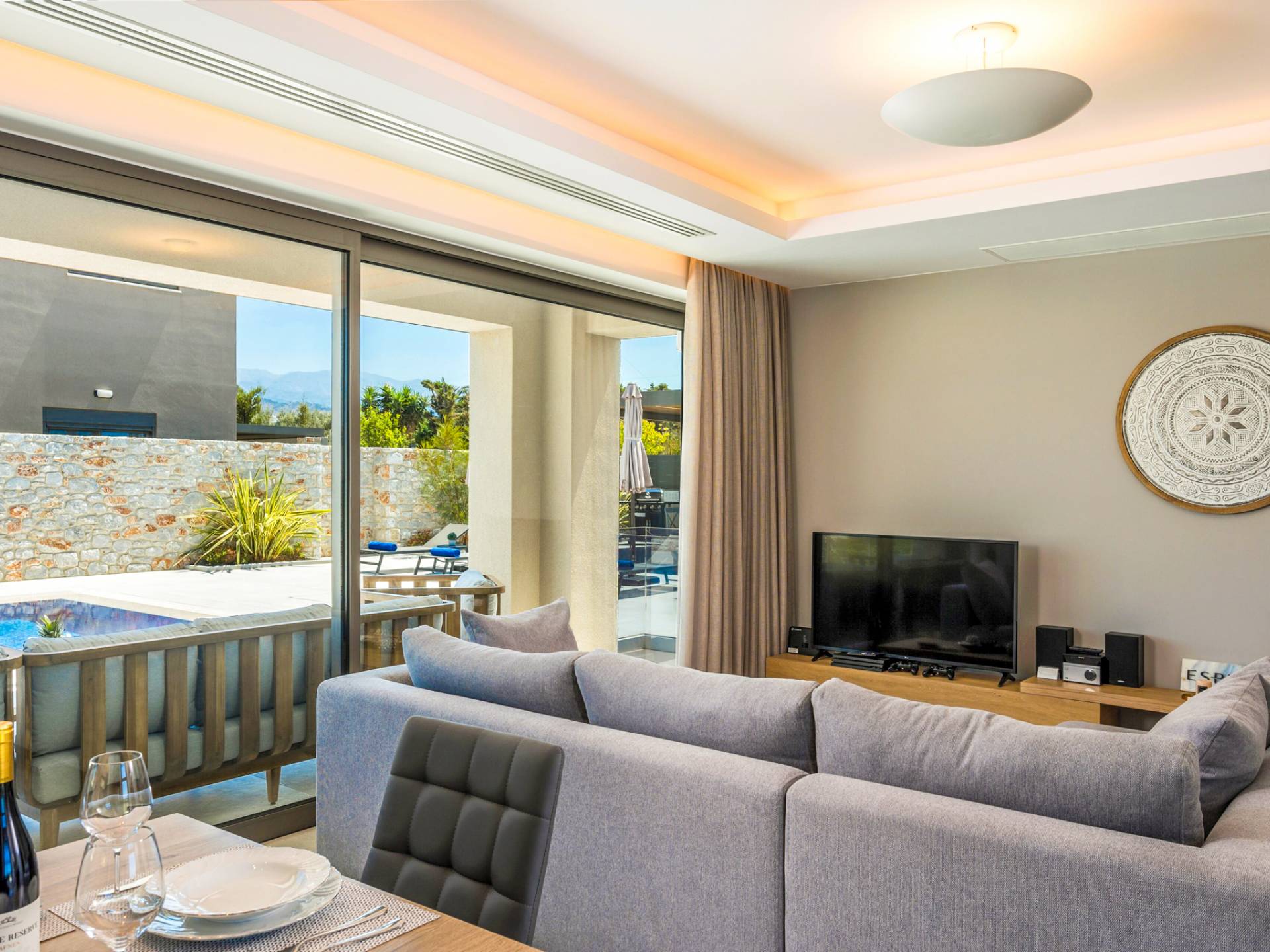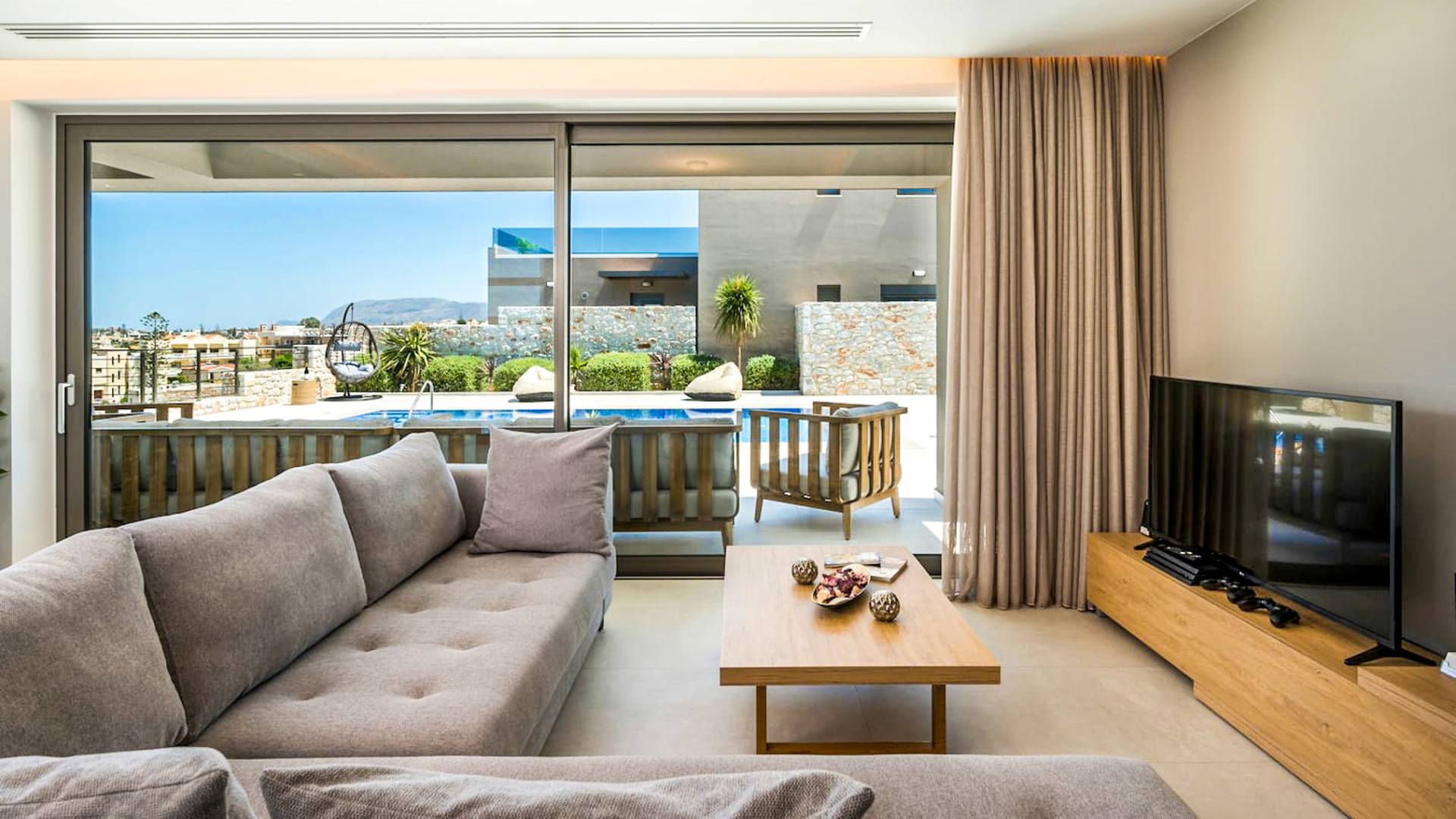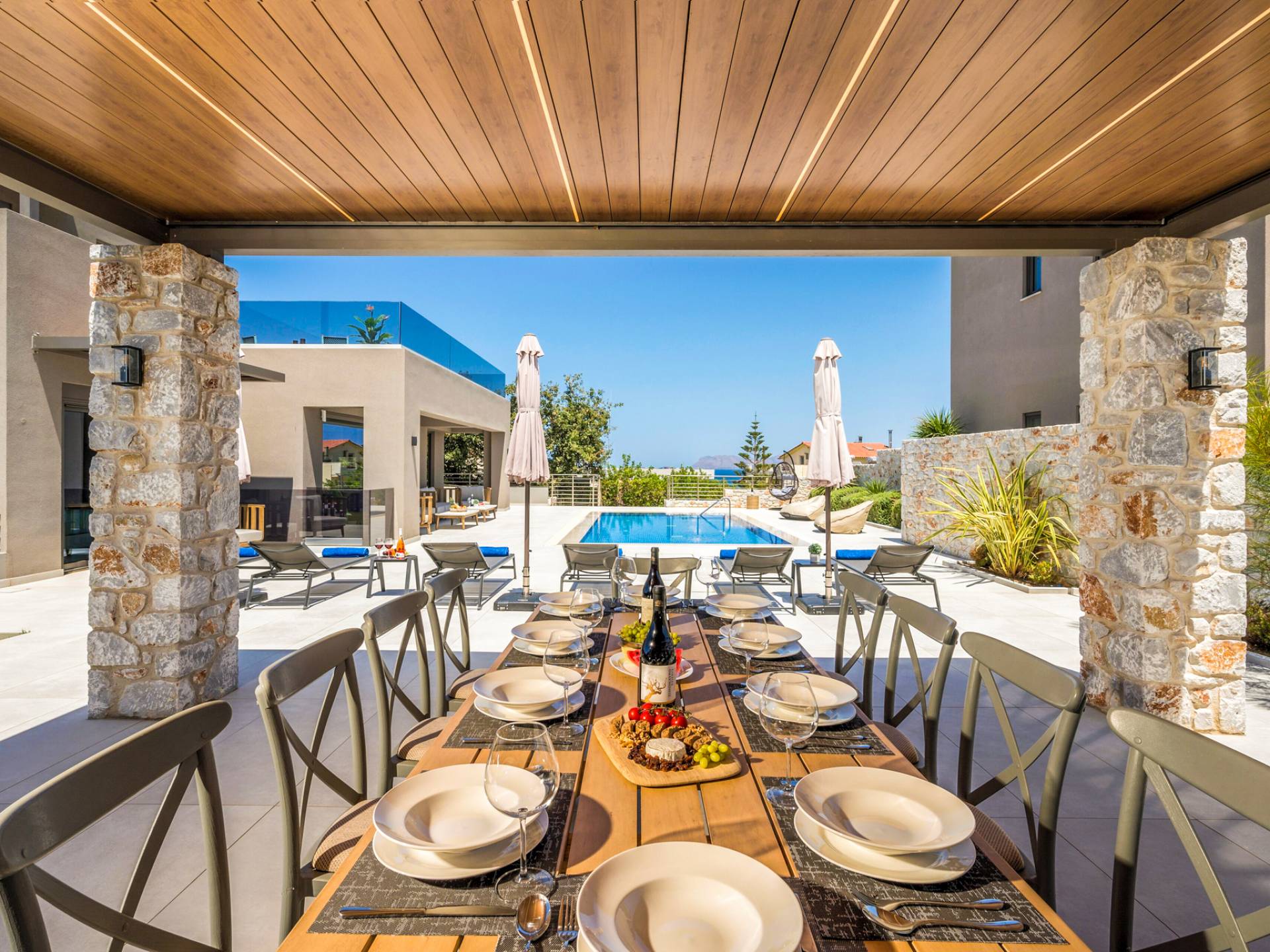 Neos Retreat 2 Chania Crete - Luxury villa with heated pool, jacuzzi, sauna, gym & 5 bedrooms. Just 300m from the beach and minutes from Chania Old Town. Perfect for families & groups.