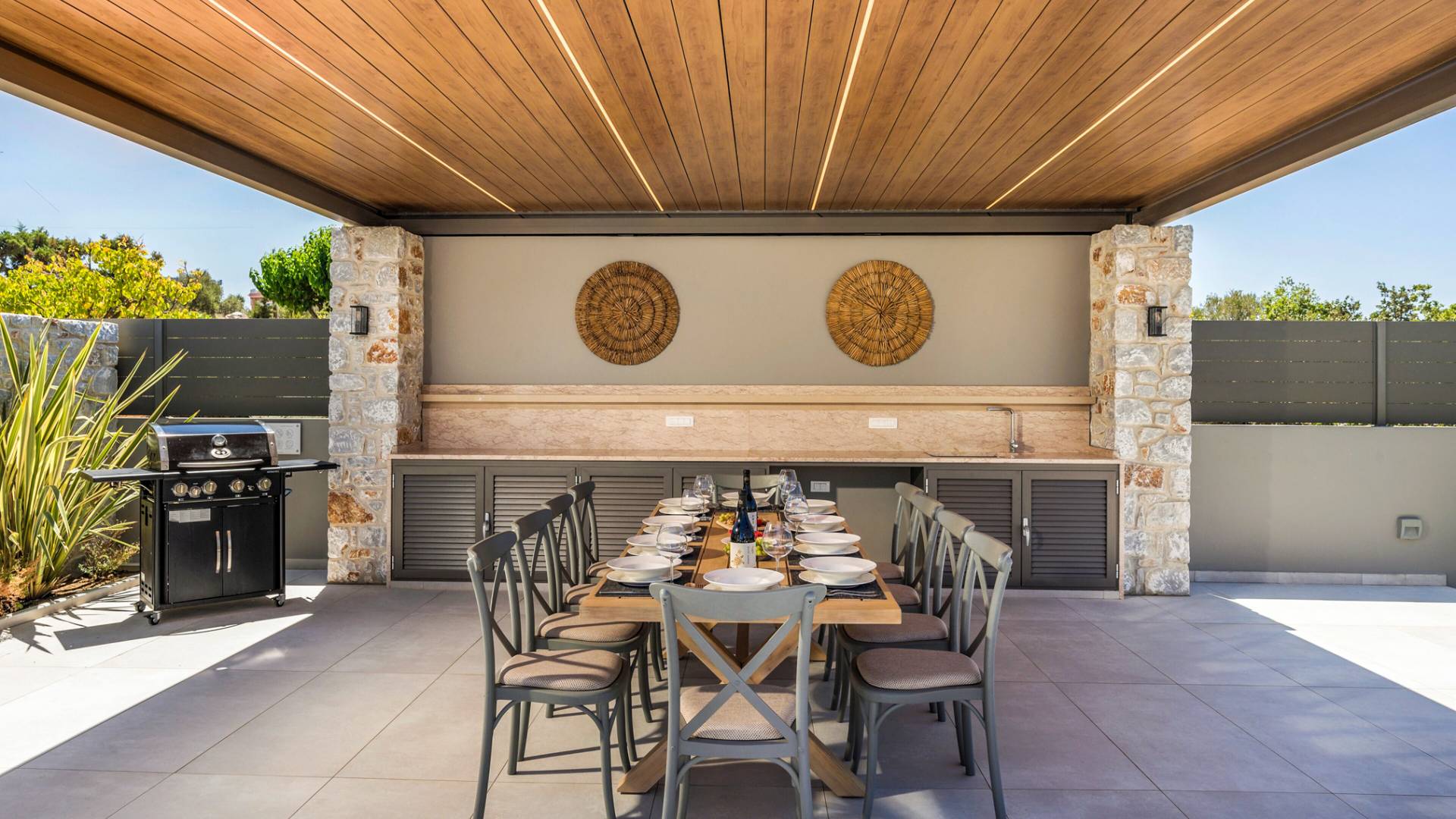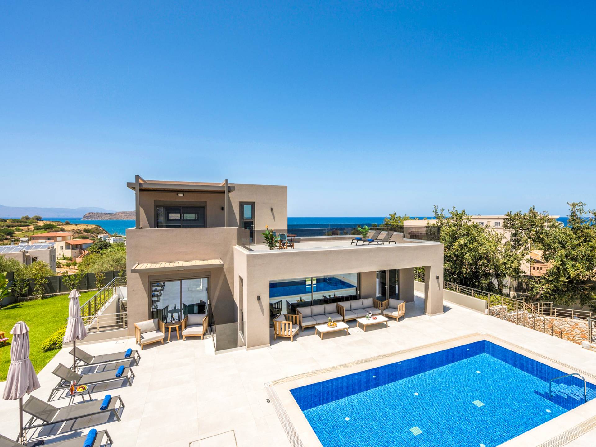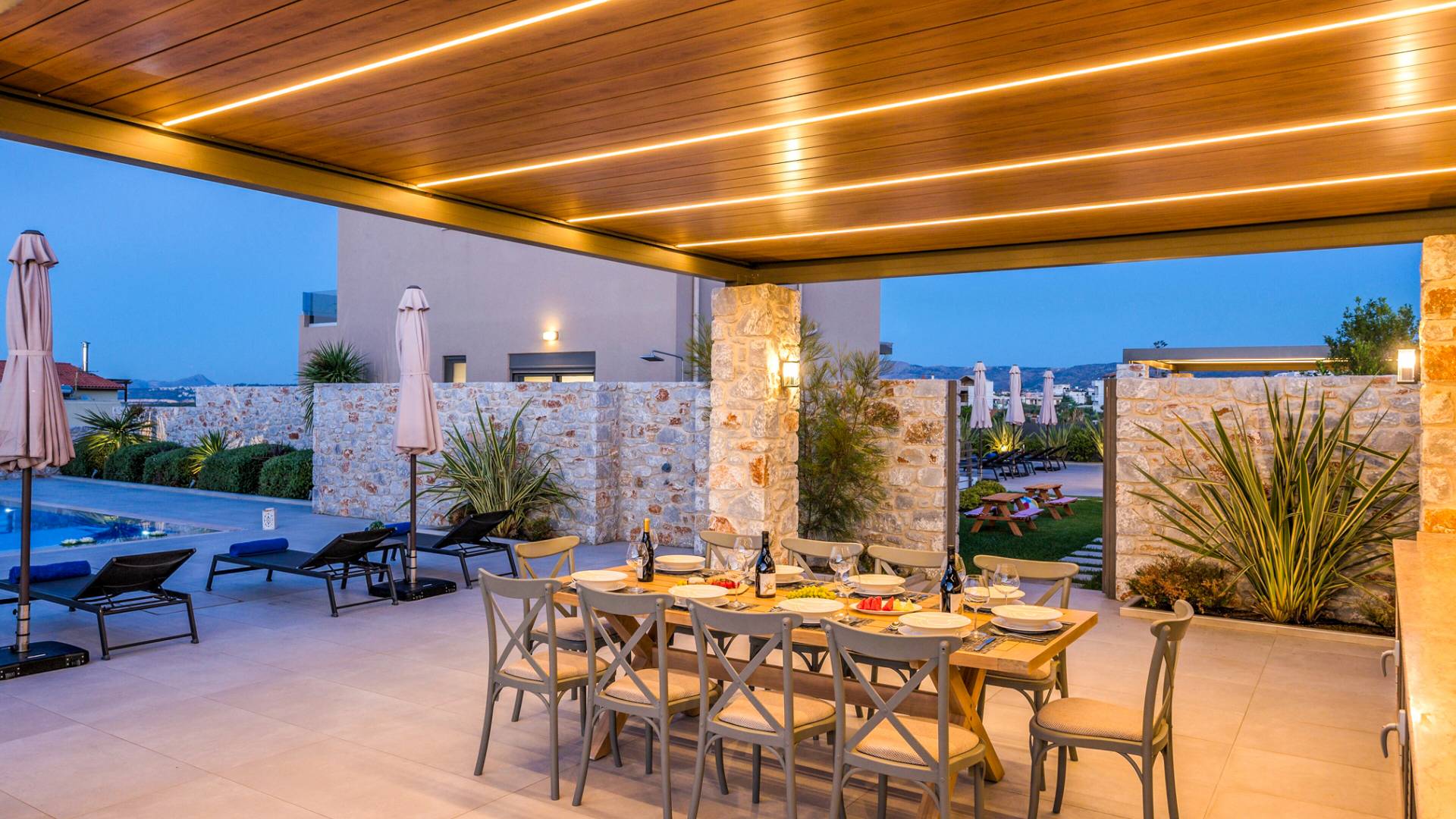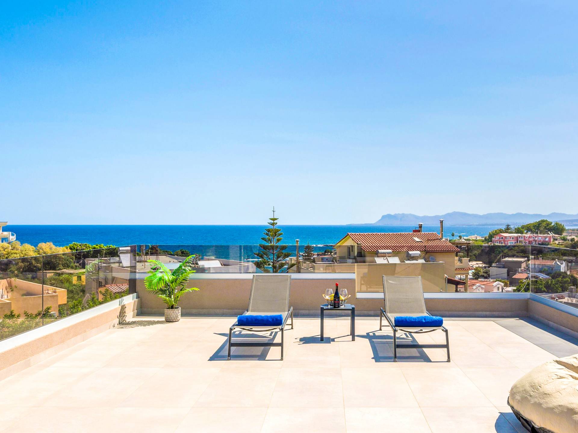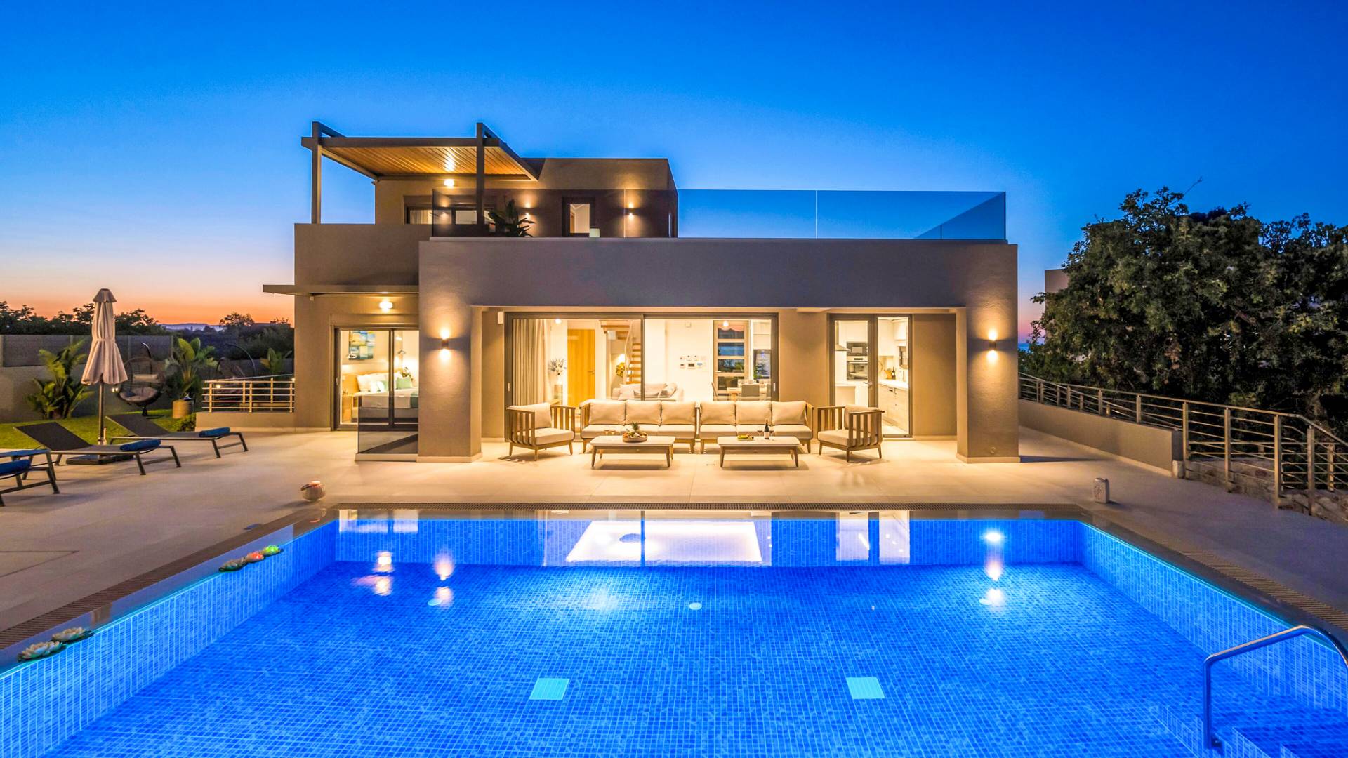 Neos Retreat 2 Chania Crete - Luxury villa with heated pool, jacuzzi, sauna, gym & 5 bedrooms. Just 300m from the beach and minutes from Chania Old Town. Perfect for families & groups.
