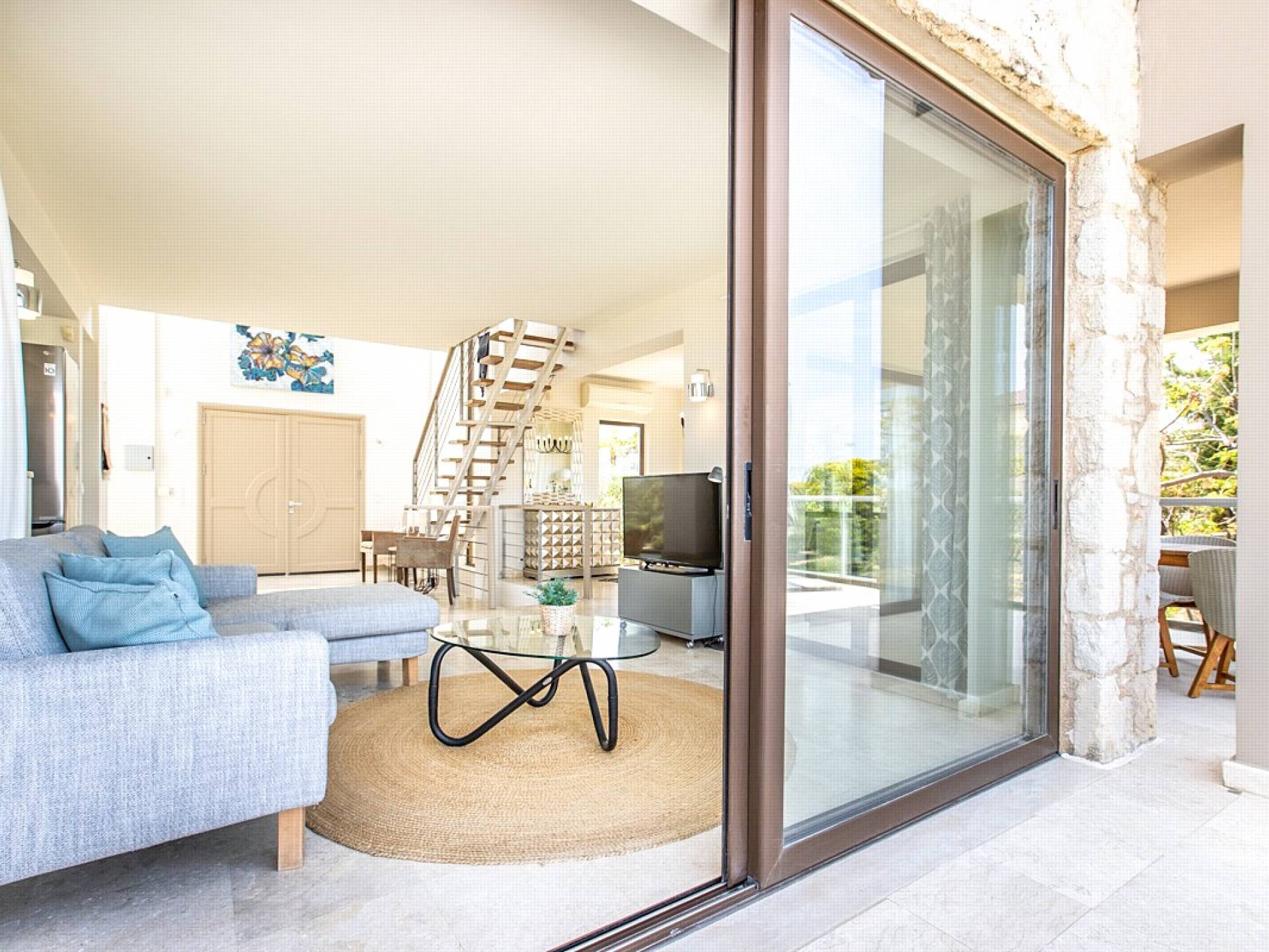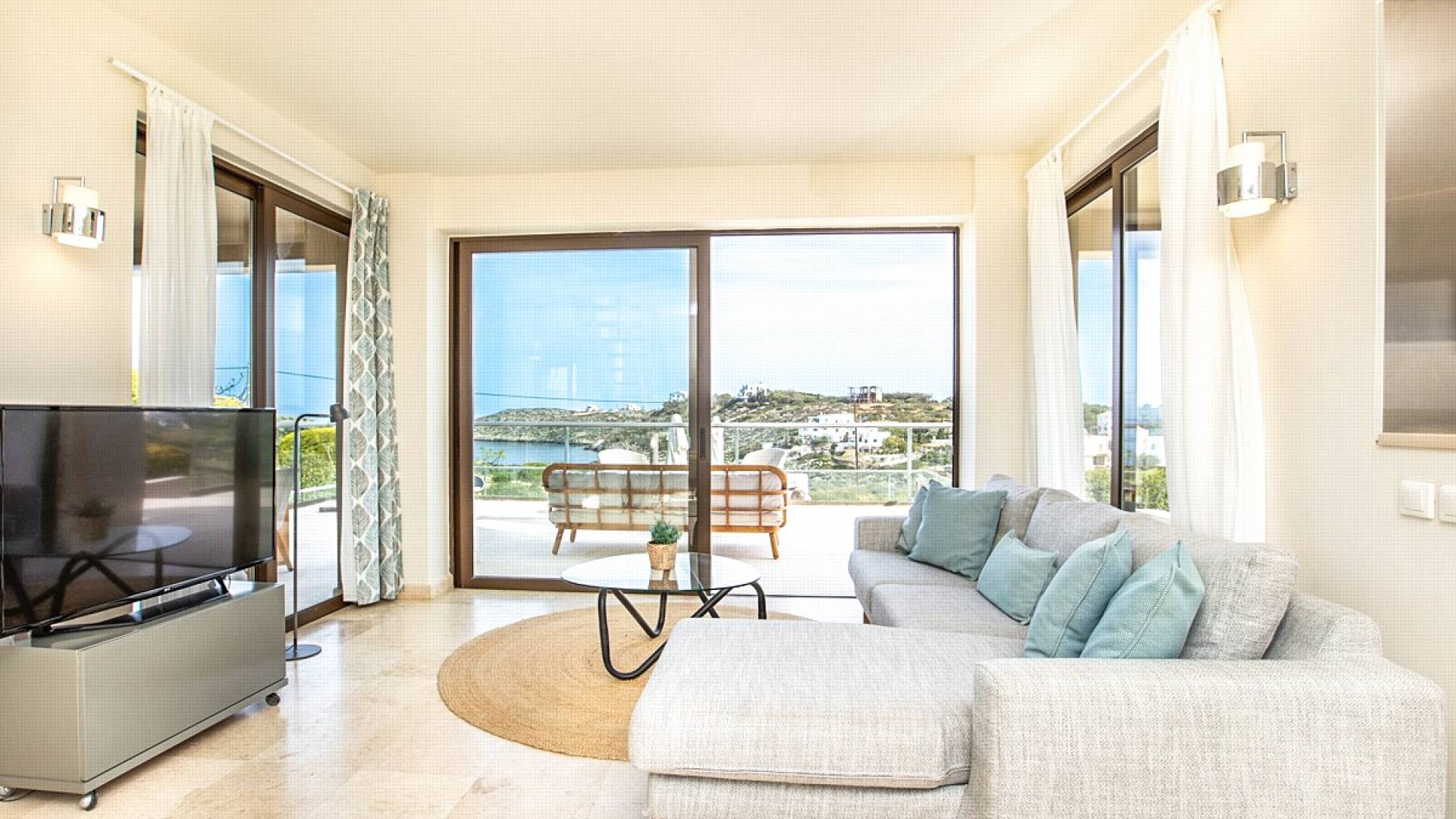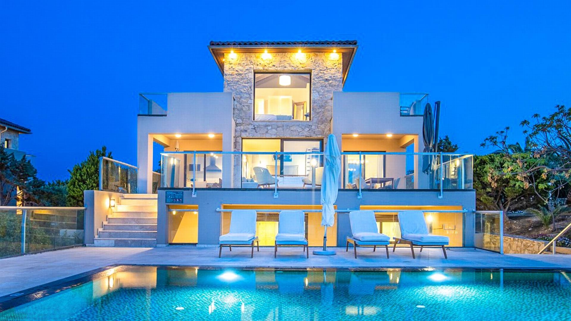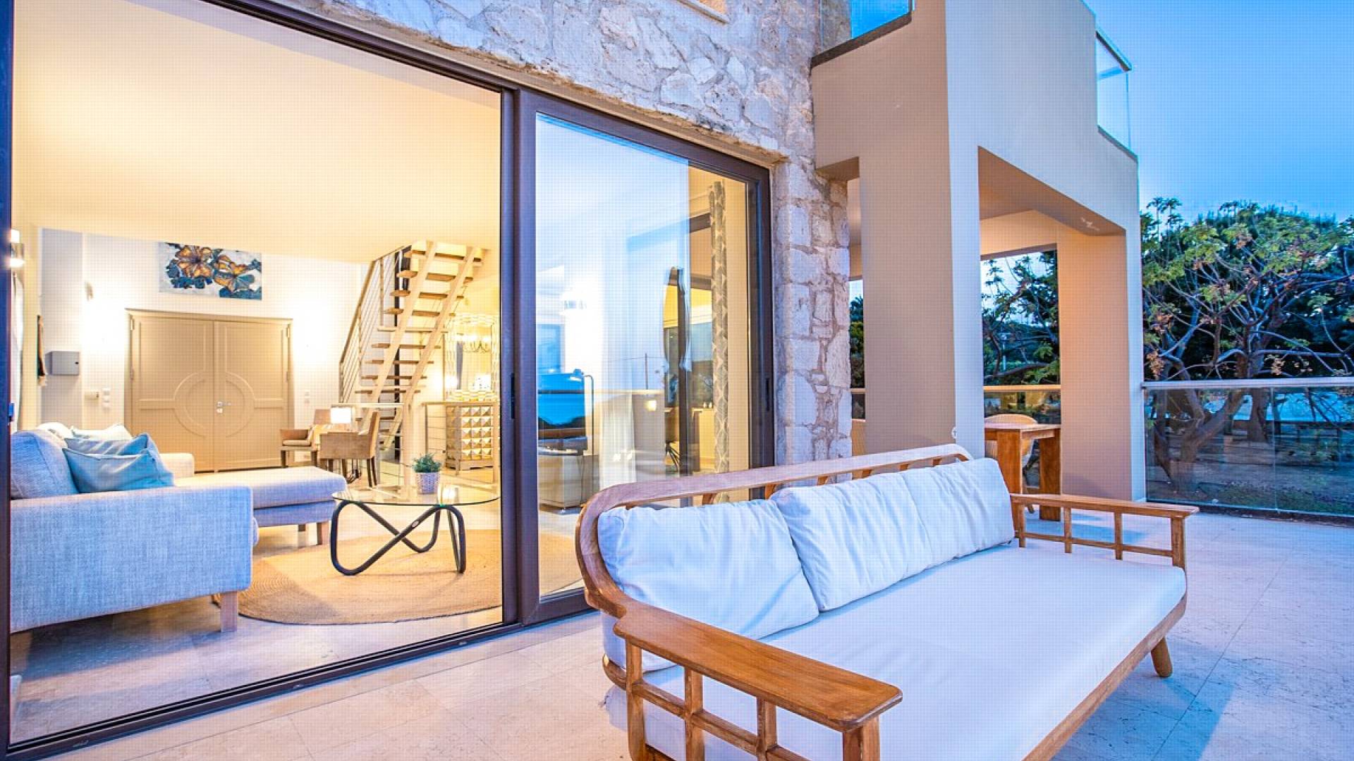 Neptune Villa was built in 2009, and since then provides a significant, well-established holiday, having gained an excellent reputation for its luxury and amenities. The total living space is 200sqms set on three levels and includes four bedrooms and four bathrooms, spacious and bright living and dining areas, and a fully equipped kitchen, with high-quality electrical appliances.