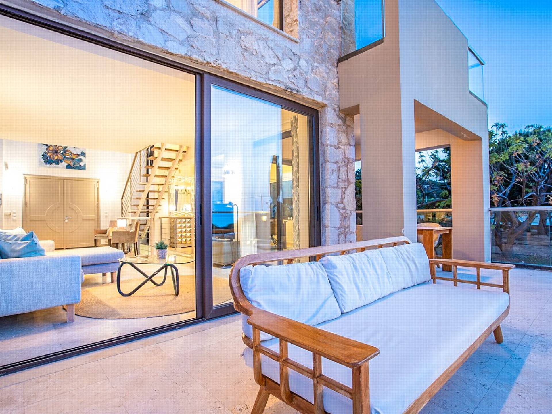 Neptune Villa in Chania, Akrotiri is located just minutes away from many sandy beaches and coves in the area including Tersanas and Stavros. Set on a hill, Neptune Villa overlooks the crystal blue waters of the bay of Chania and boasts stunning and unforgettable sunsets. The 3-floor villa, surrounded by olive trees and a beautiful garden, offers you a great deal of privacy, allowing you to relax and unwind undisturbed.