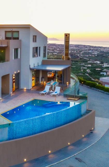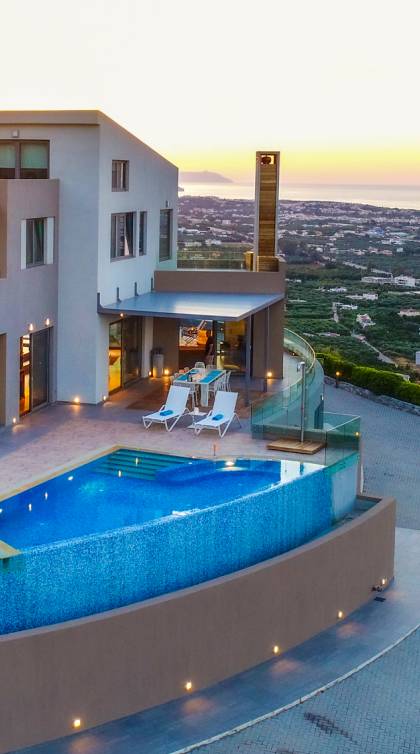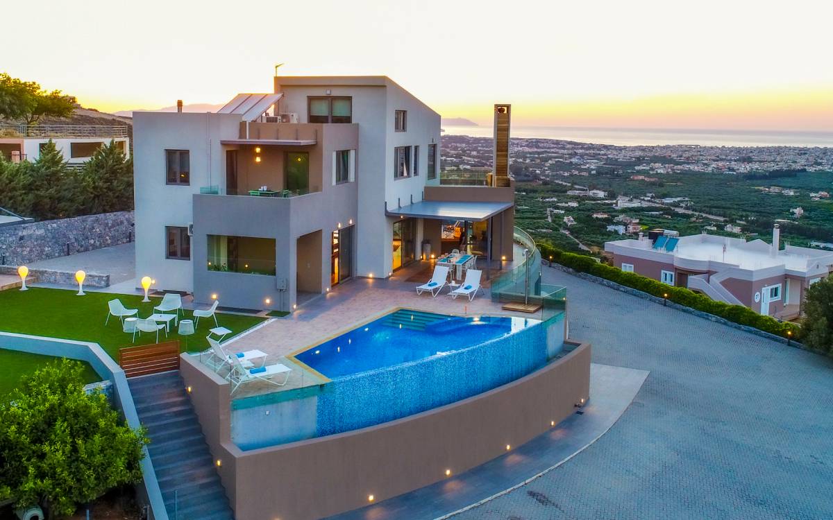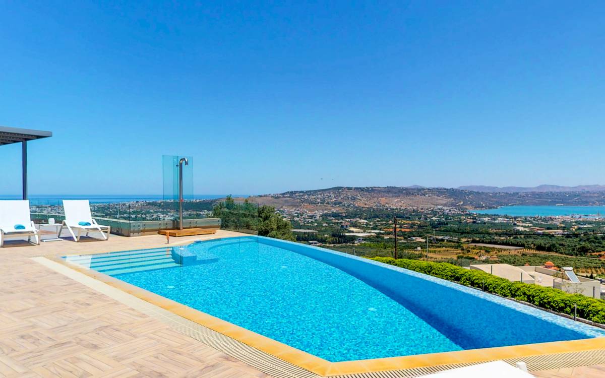 Panthea Villa Chania - Luxury 4BR villa with heated infinity pool, playground & panoramic sea-sunset views. Just 10’ to Chania & Crete's top beaches