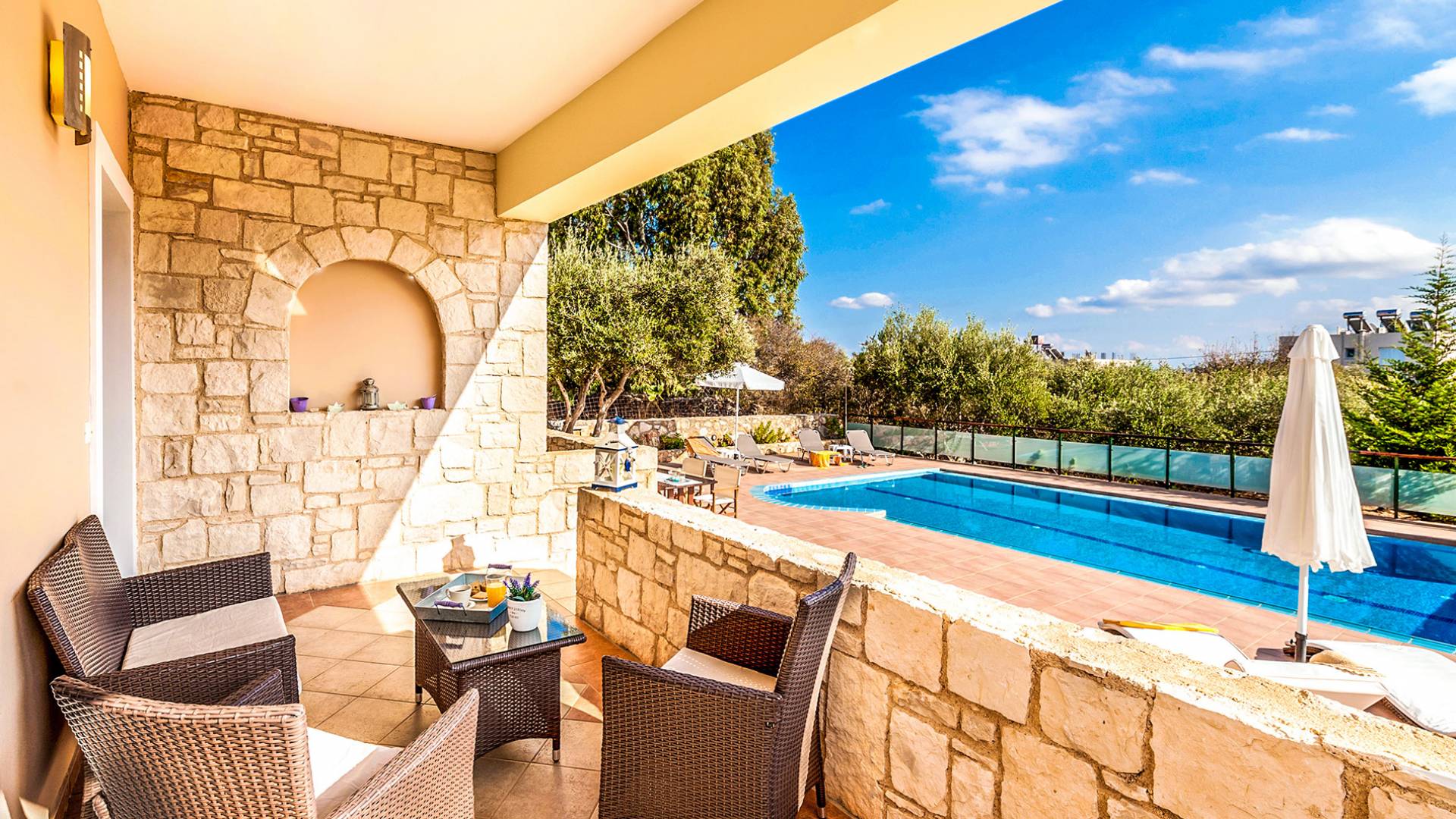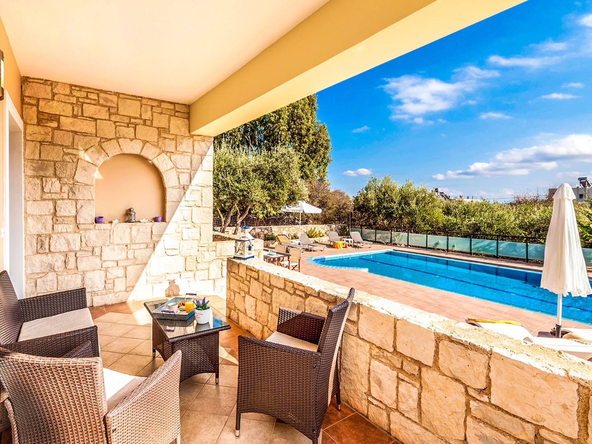 In Rena Villa, Chania quests can have a relaxing holiday break, in an outstanding and quiet location. The villa provides an individual swimming pool and verandas with a breathtaking view of the Apokoronas area, as well as an individual parking area.