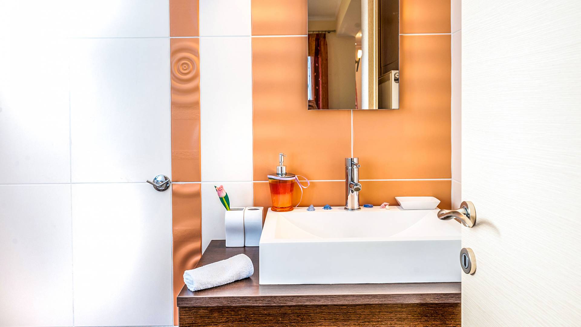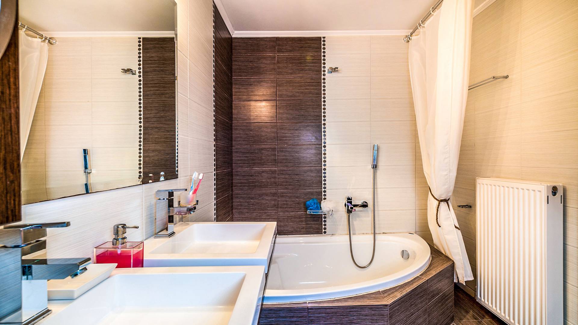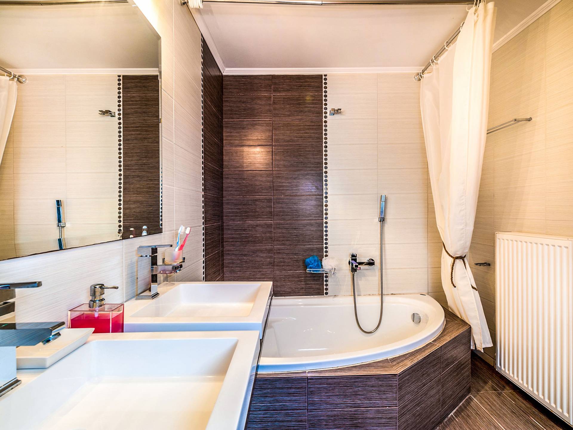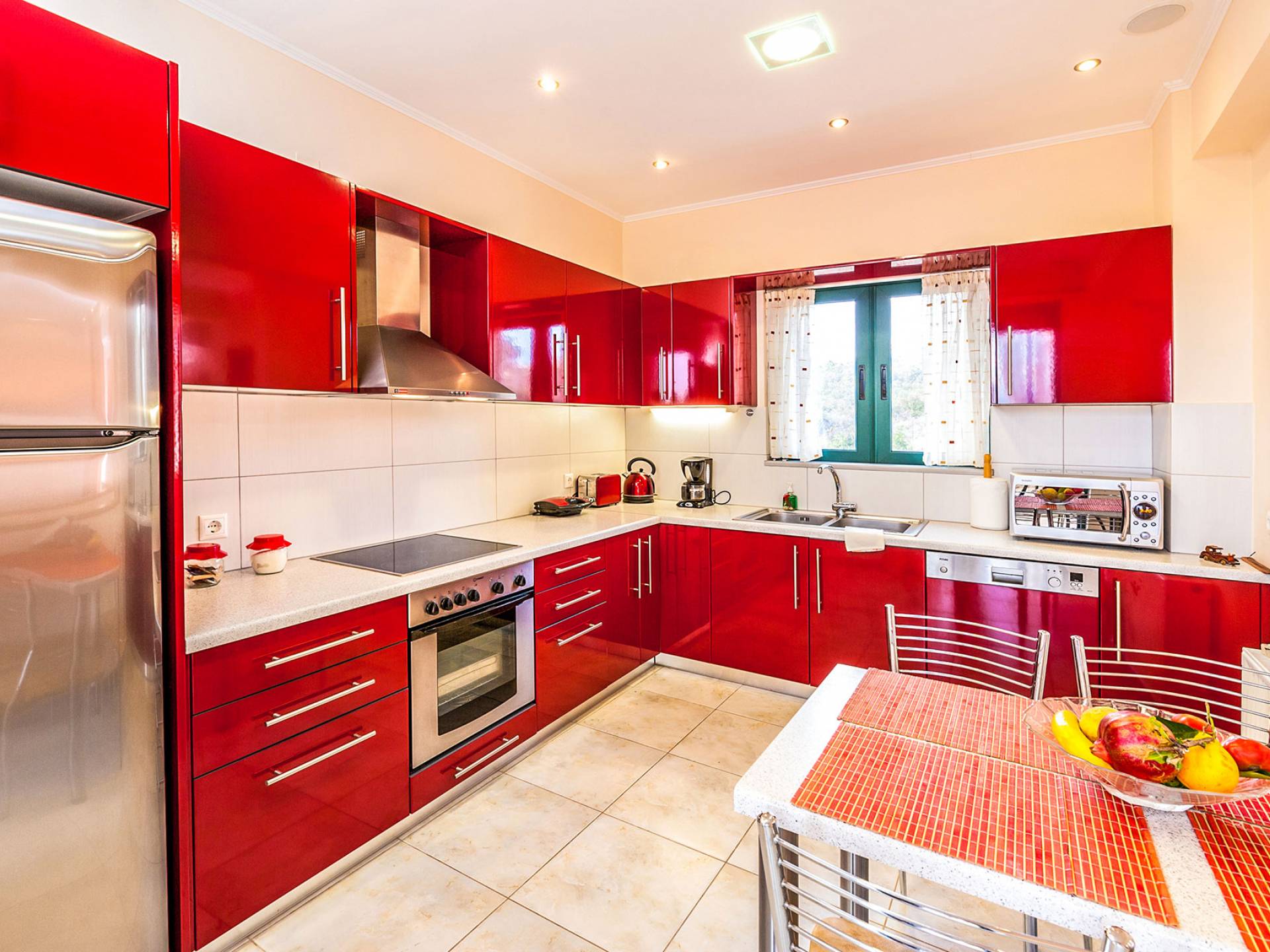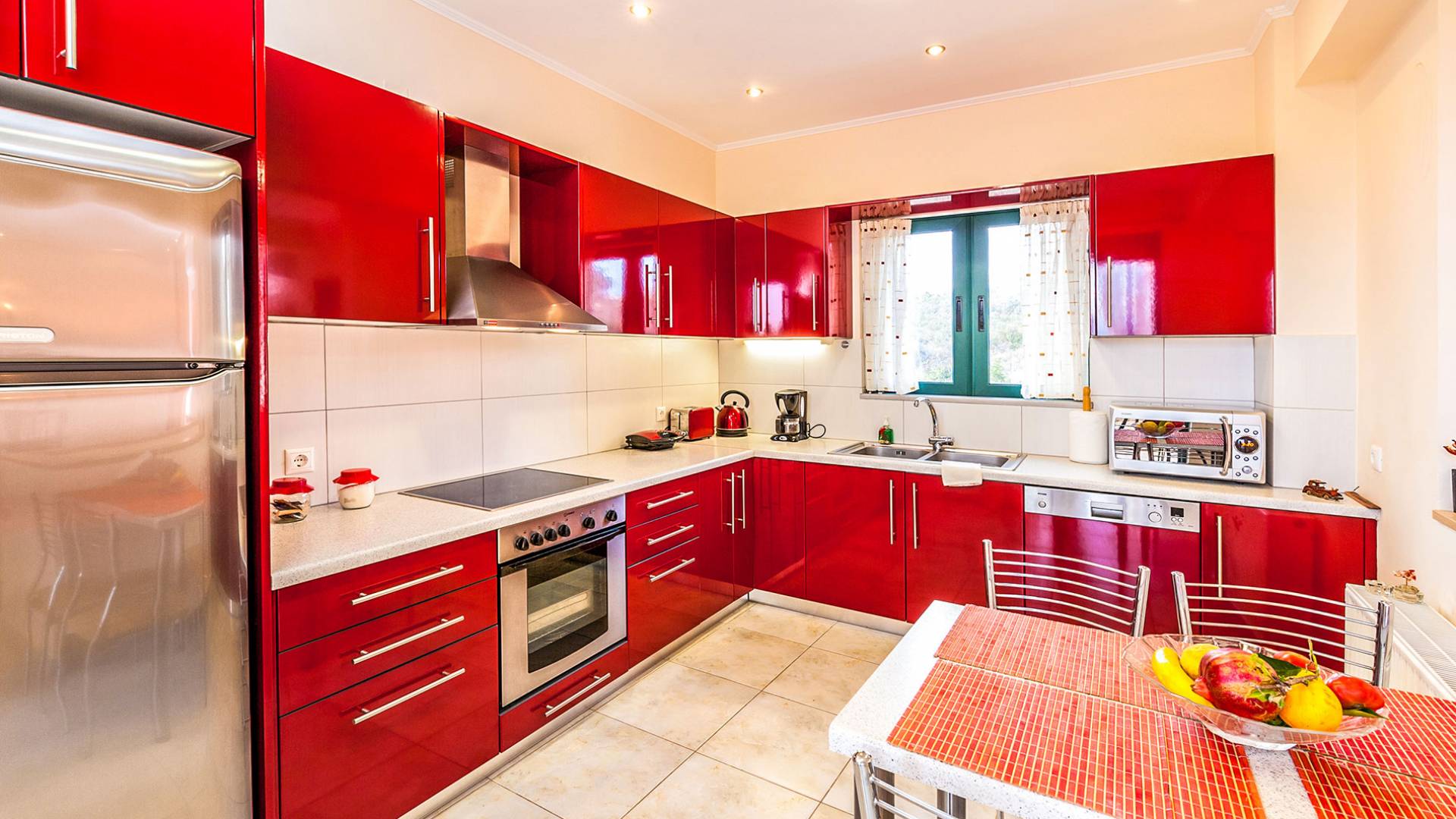 The upper floor: With an open plan space, consists out of a roomy sitting room with fireplace, a dining area, one WC and a modern kitchen fully-equipped with a big refrigerator, an electric kitchen, a dish-washing machine, and a dining table. Furthermore, it has a large veranda with an amazing mountain view. Rena Villa Chania is located just 4 km away from the sandy beach of Kalives. Also a small beach, Kalami beach is just 2km from the villa. Traditional tavernas and mini-markets are less than a five-minute walk away. Additionally, the ancient town of Aptera has located a 15-minute walk away.