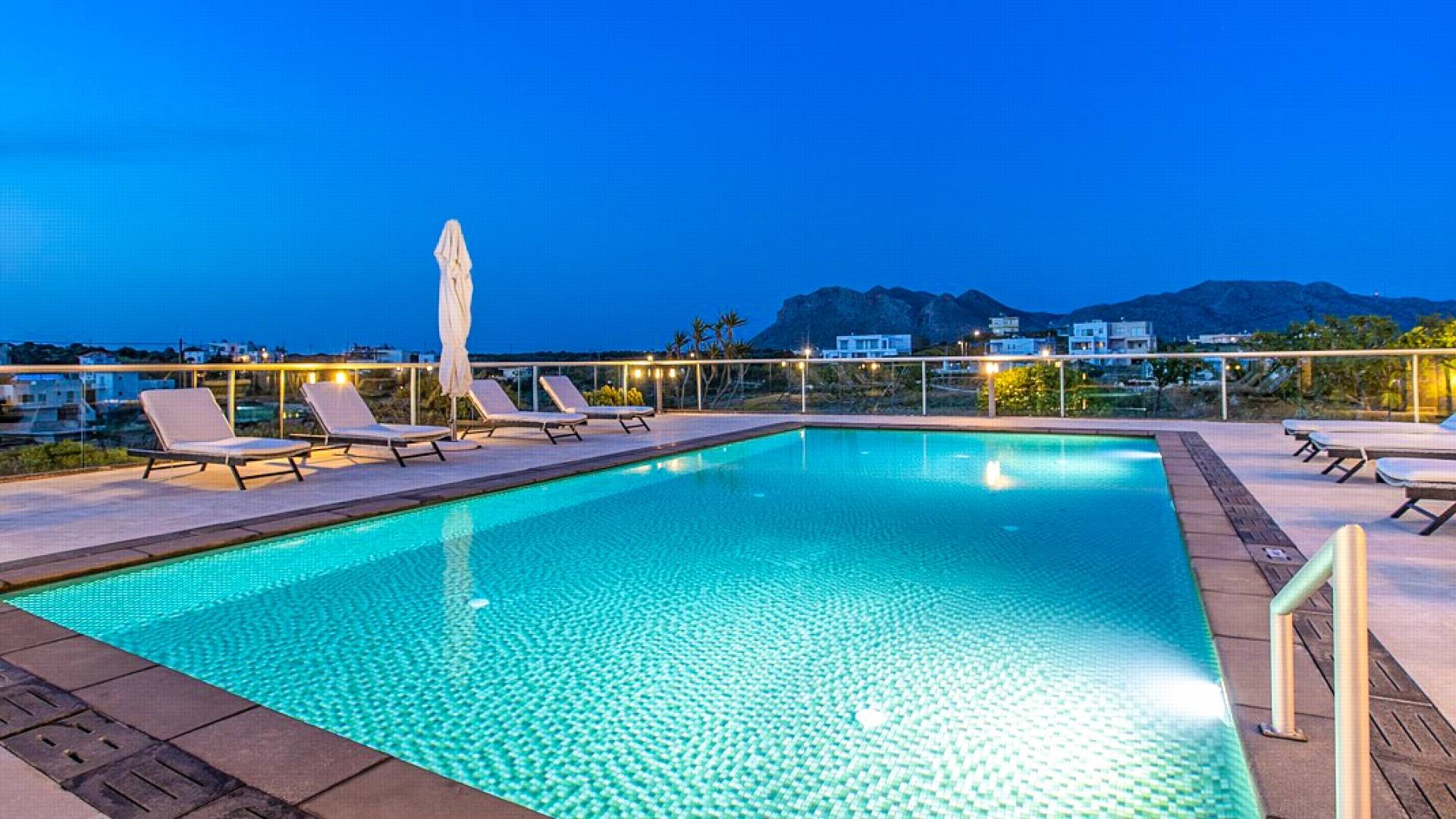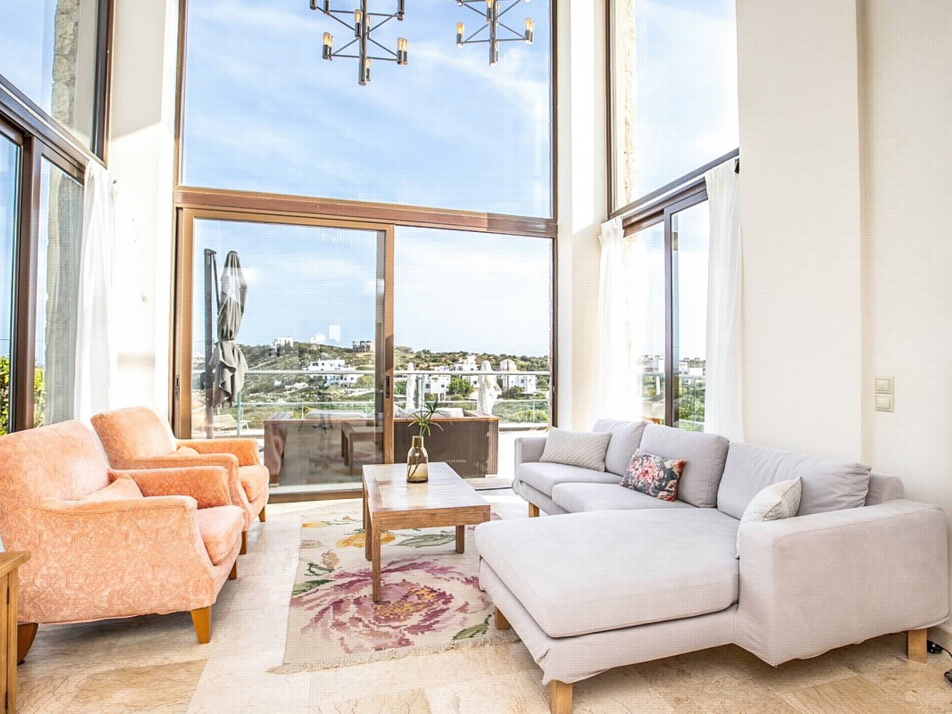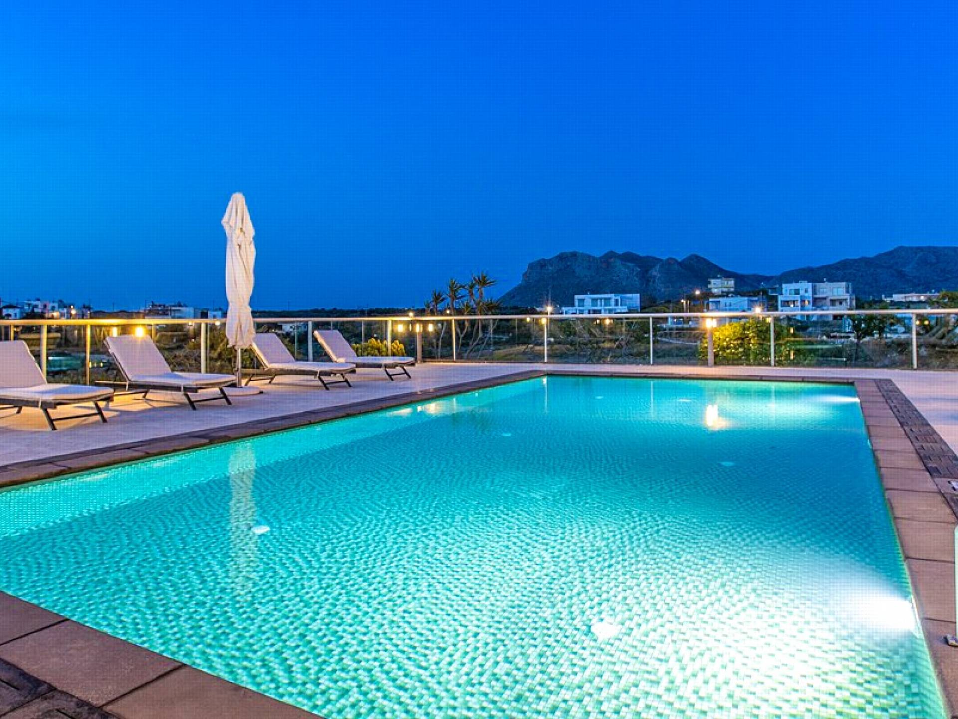 The total living space is 200sqms set on three levels and includes four bedrooms and four bathrooms, spacious and bright living and dining areas, and a fully equipped kitchen, with high-quality electrical appliances. Saturn Villa is of a unique and modern design built and furnished to a very high quality. Just minutes away from the beaches, cafes, and restaurants, Saturn Villa is also a convenient 15-minute drive from the airport and the beautiful city of Chania.