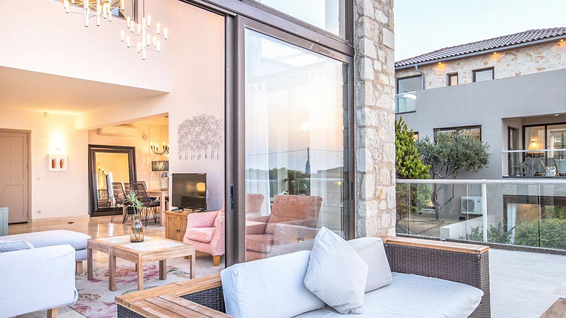 This luxury designer luxury villa is positioned next to the sea, located near the popular and wonderful city of Chania on the island of Crete. Saturn Villa in Chania, Akrotiri is located just minutes away from many sandy beaches and coves in the area including Tersanas and Stavros. Set on a hill, Saturn Villa overlooks the crystal blue waters of the bay of Chania and boasts stunning and unforgettable sunsets. The 3-floor villa, surrounded by olive trees and a beautiful garden, offers you a great deal of privacy, allowing you to relax and unwind undisturbed.