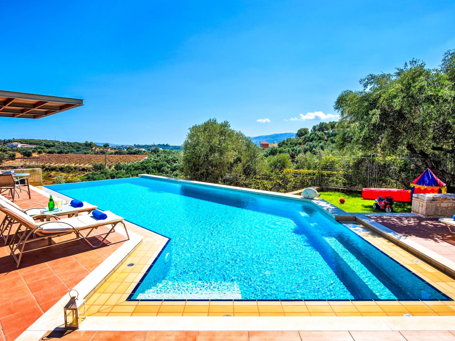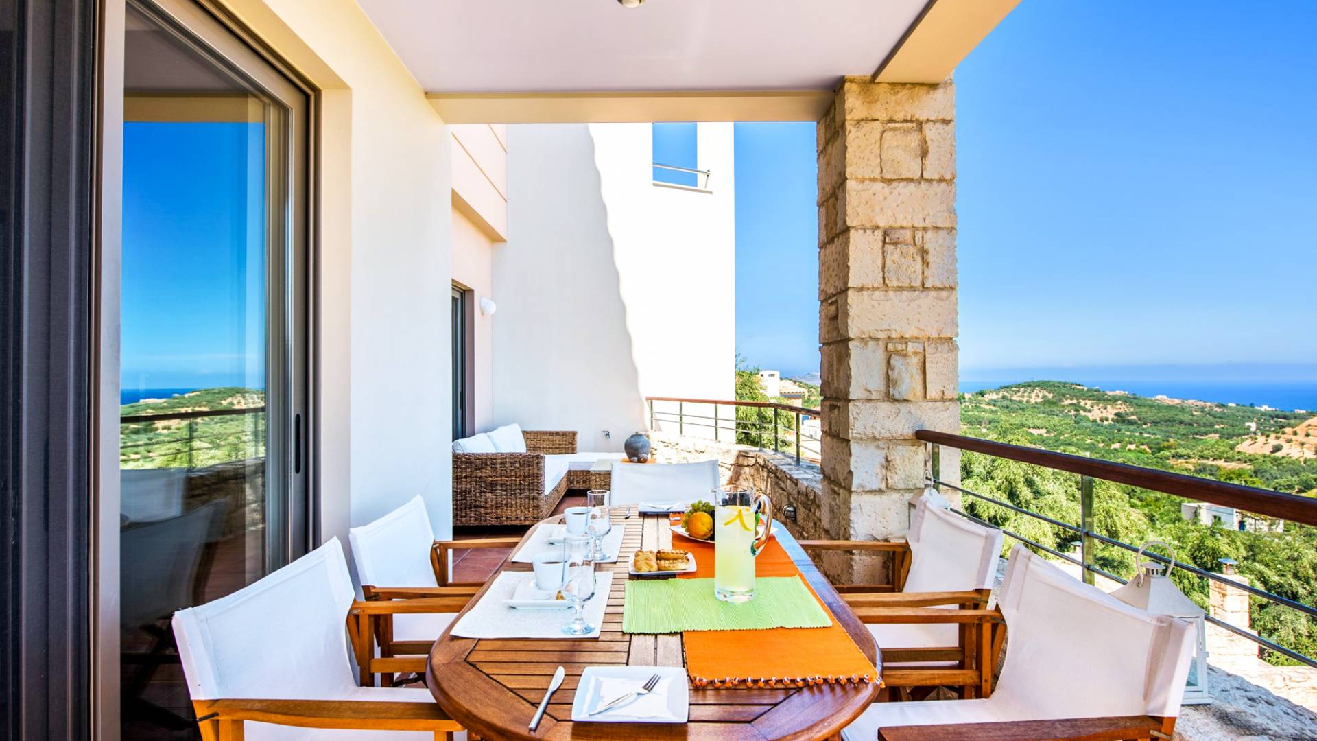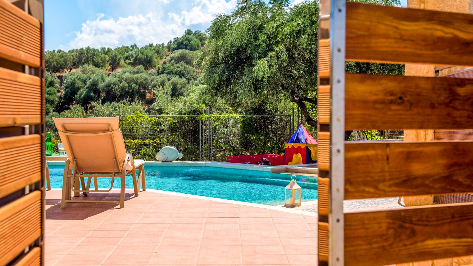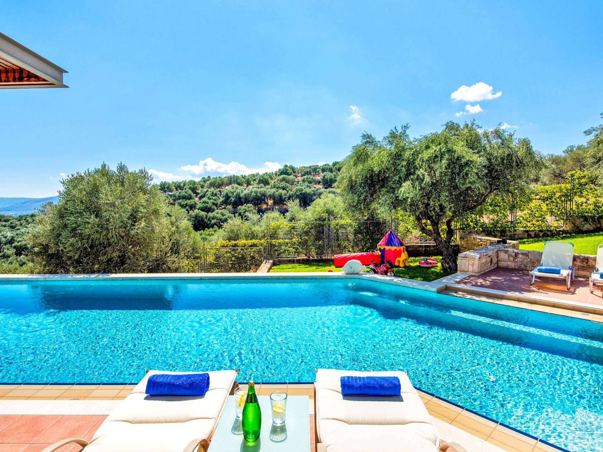 Scenery Villa 1 Chania Crete - 5BR hilltop villa w/ private pool, BBQ, sea views & organic garden. Peaceful setting, 5' to Agia Marina beach & near Chania.