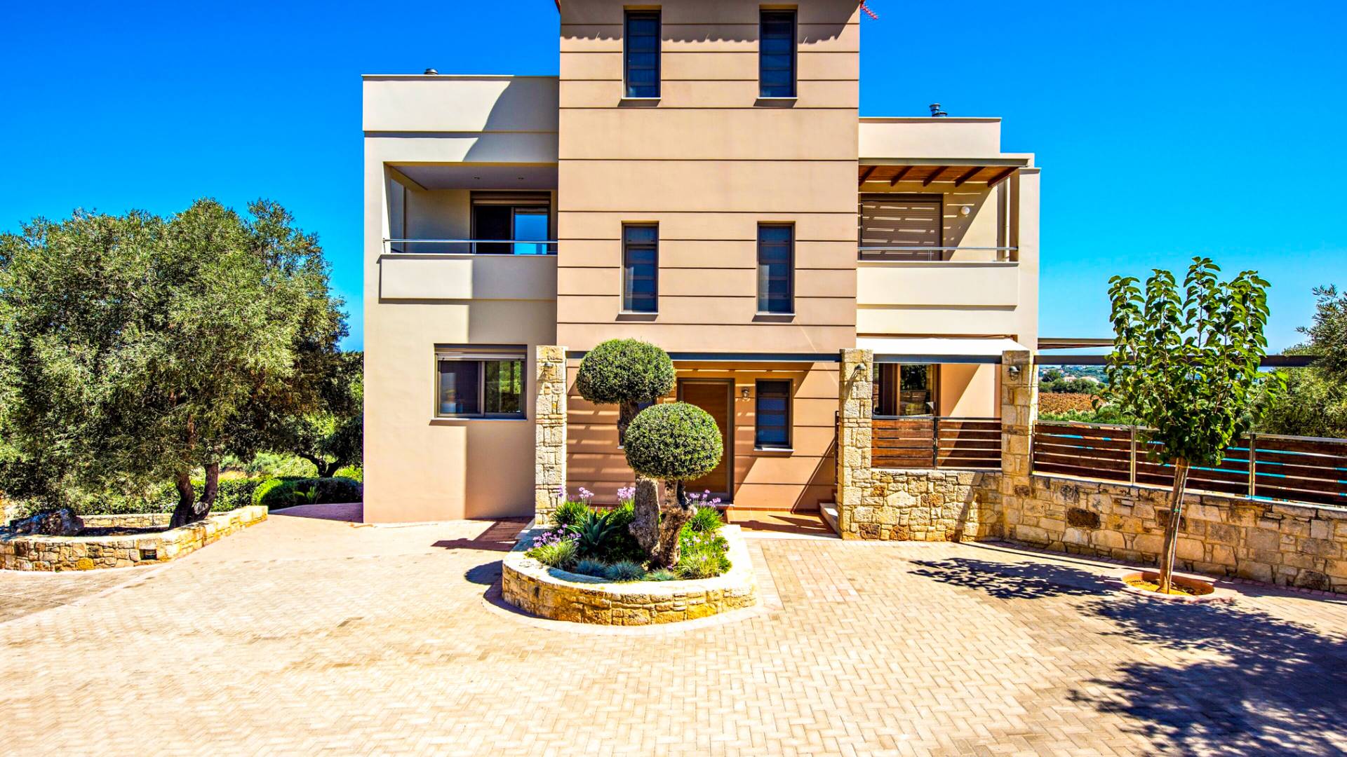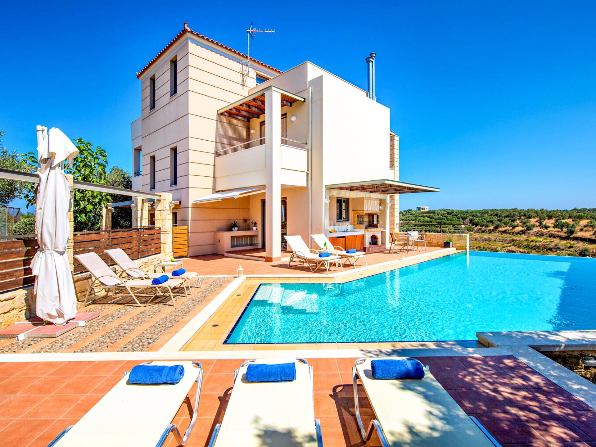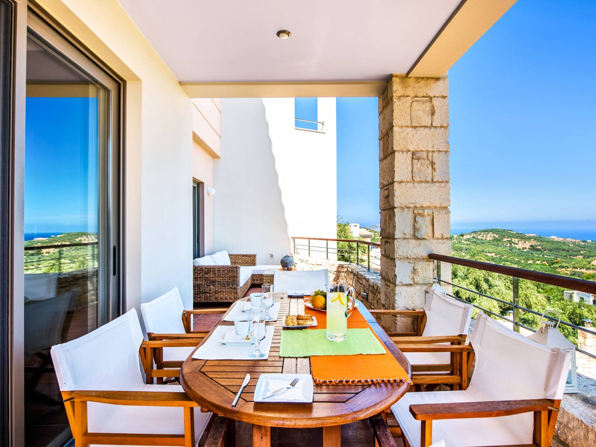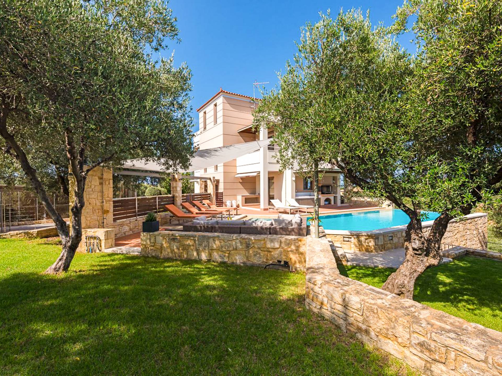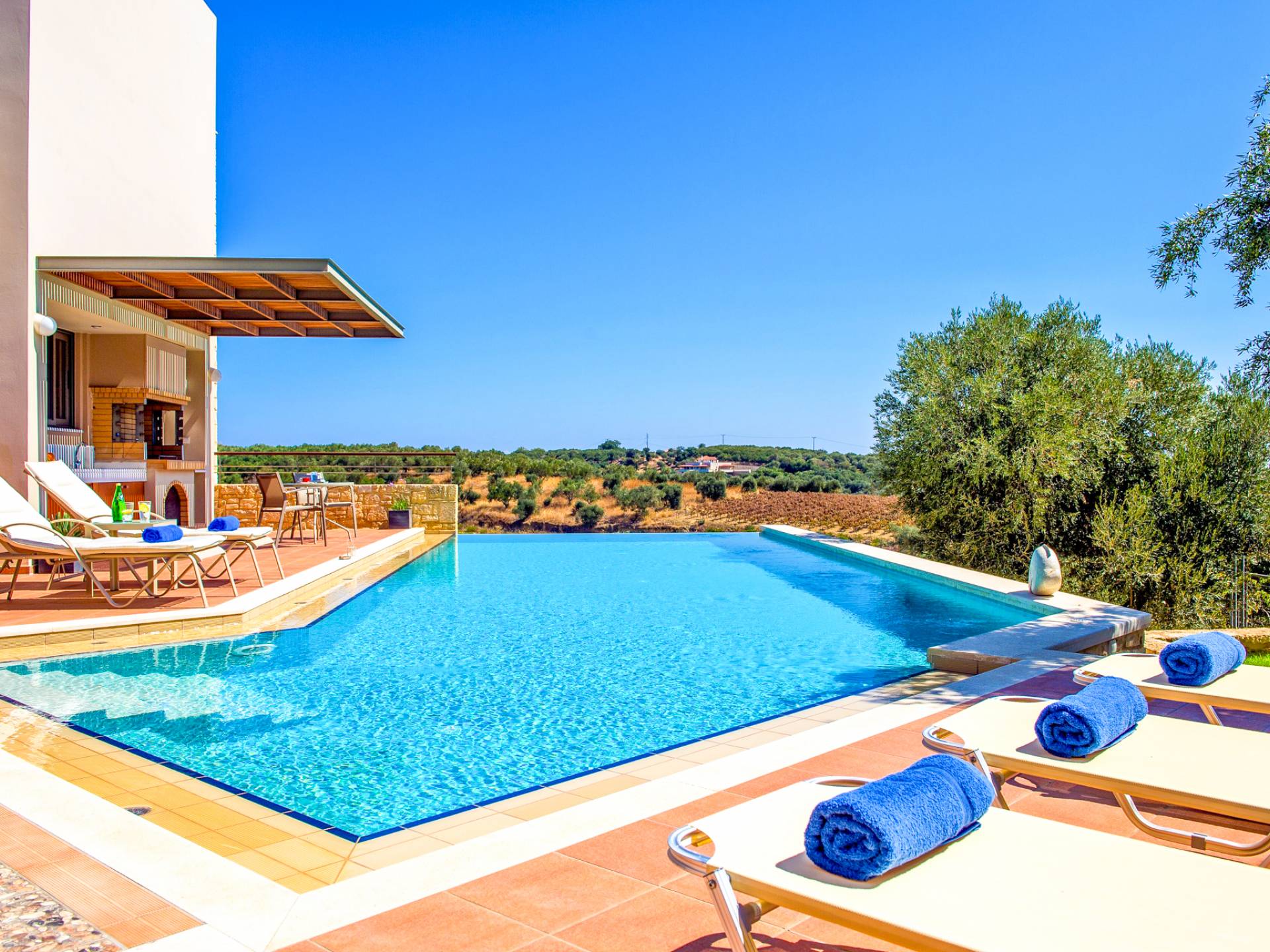Scenery Villa 1 Chania Crete - 5BR hilltop villa w/ private pool, BBQ, sea views & organic garden. Peaceful setting, 5' to Agia Marina beach & near Chania.