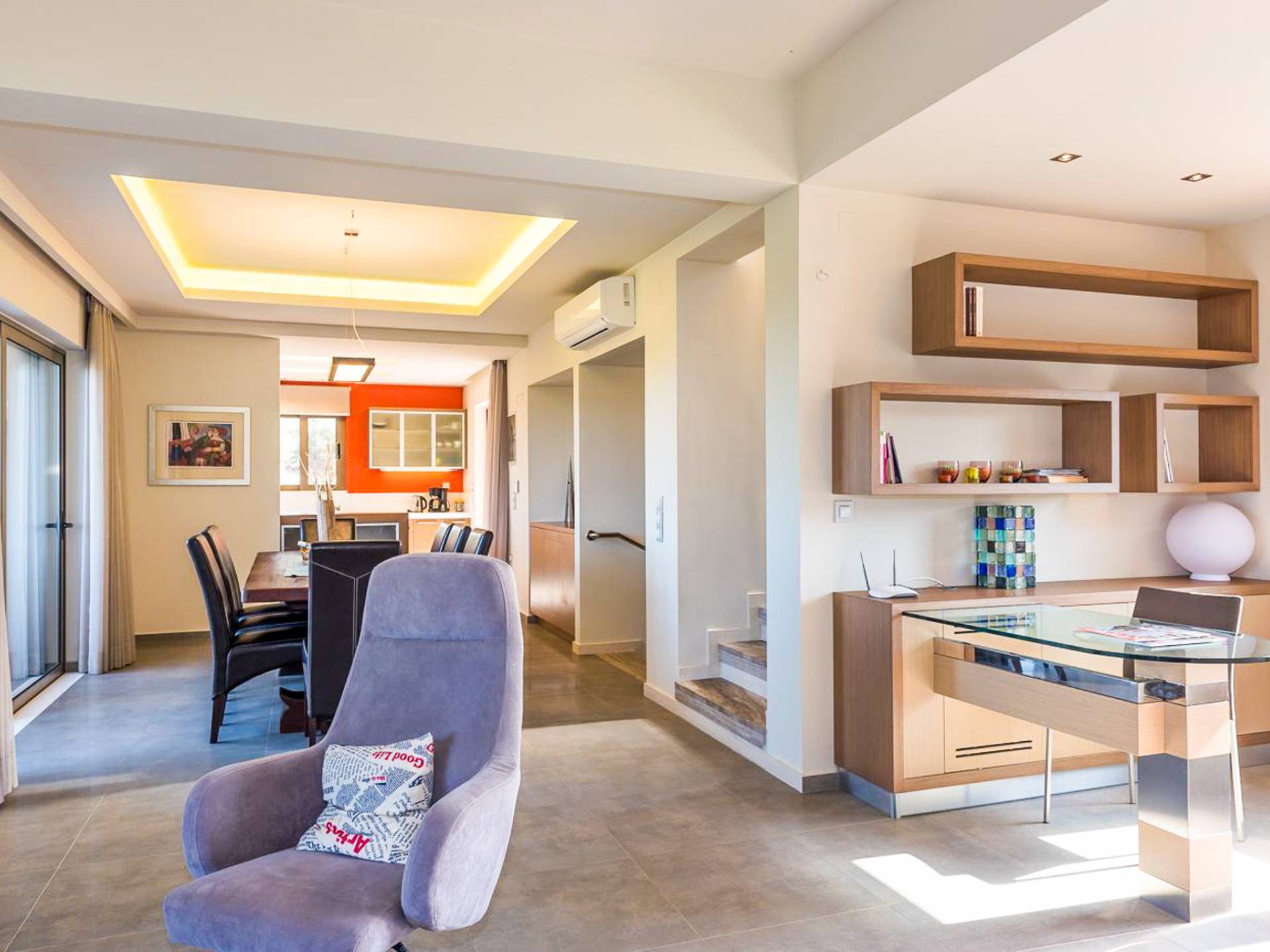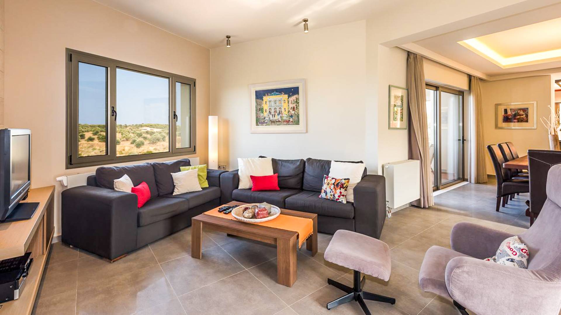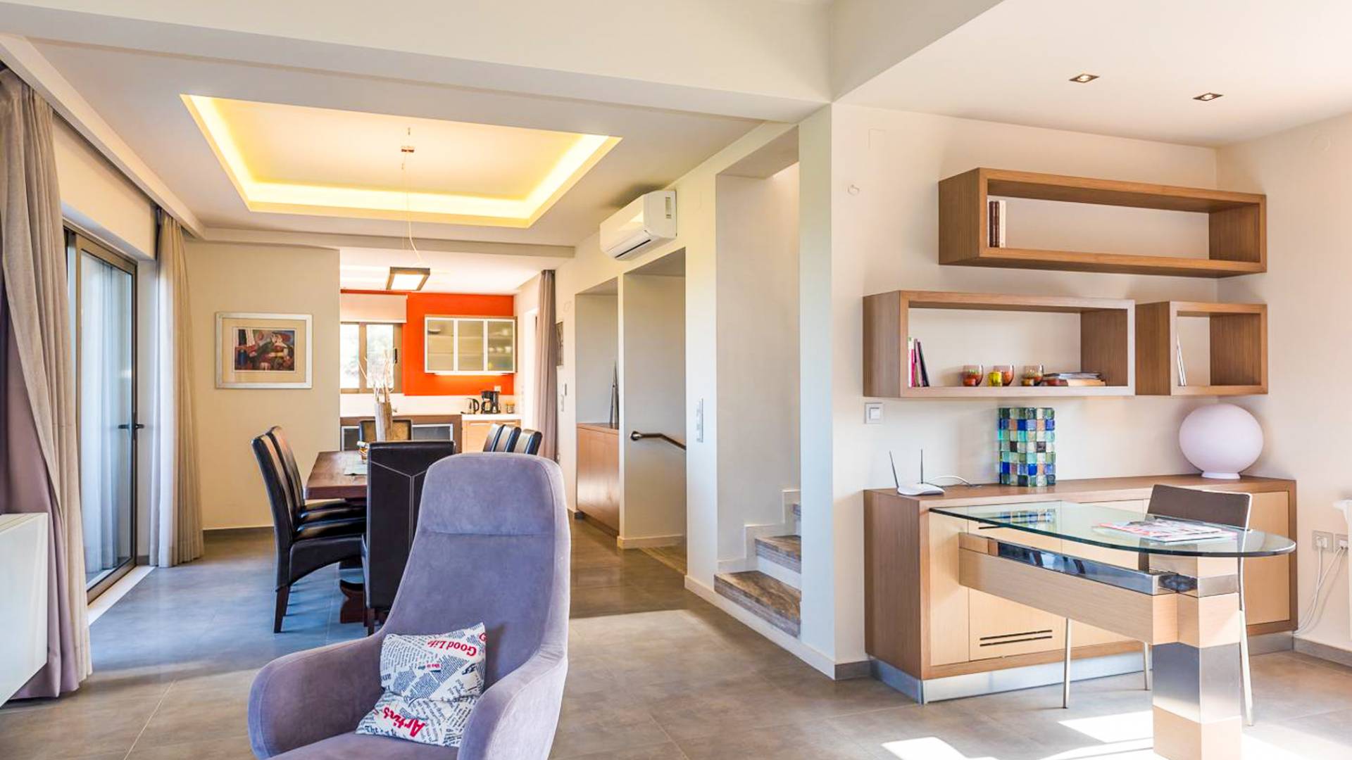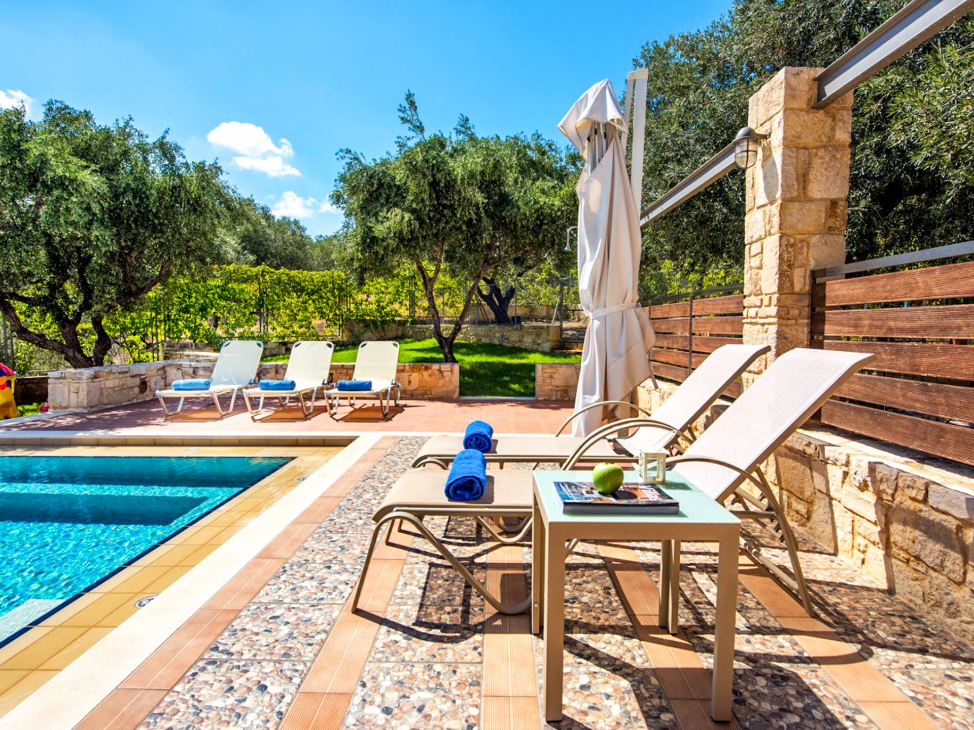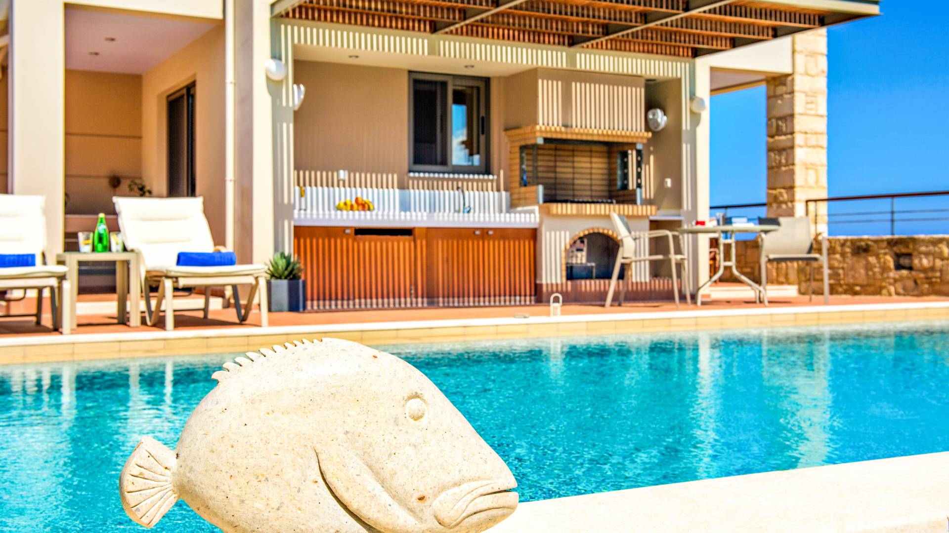 Scenery Villa 1 Chania Crete - 5BR hilltop villa w/ private pool, BBQ, sea views & organic garden. Peaceful setting, 5' to Agia Marina beach & near Chania.