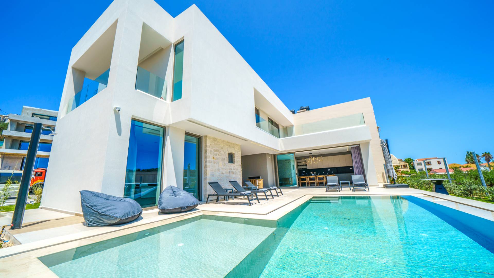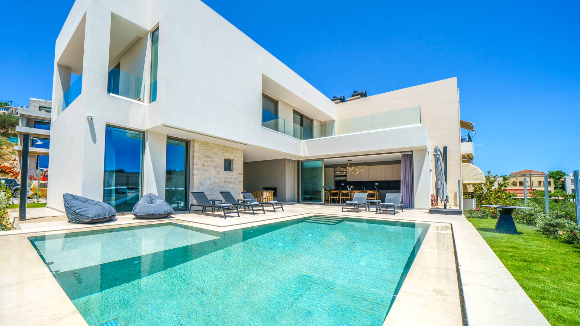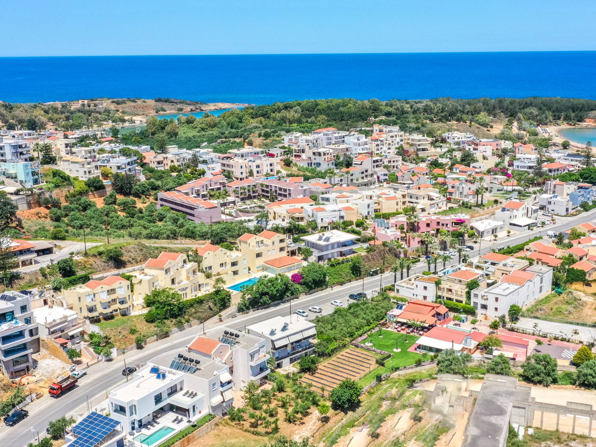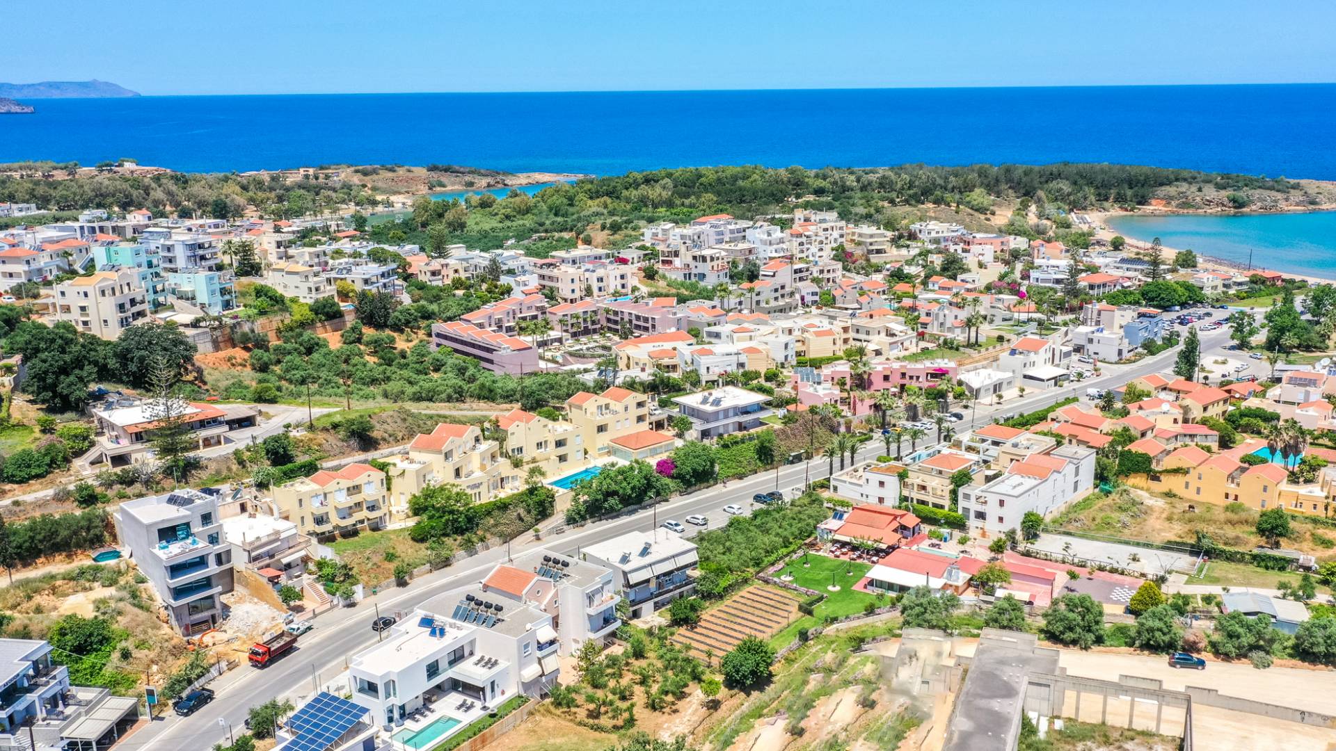 Unlike more crowded resorts, Agioi Apostoloi offers a more laid-back, village-like feel, making it perfect for villa holidays. Whether you're looking for a romantic hideaway or a spacious villa for the whole family, the area offers a range of elegant, fully equipped properties just steps from the beach.