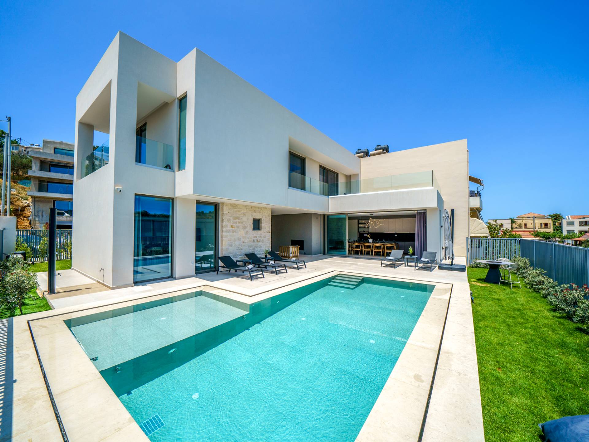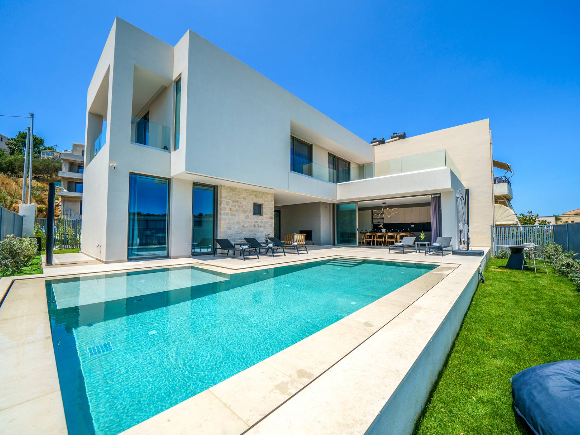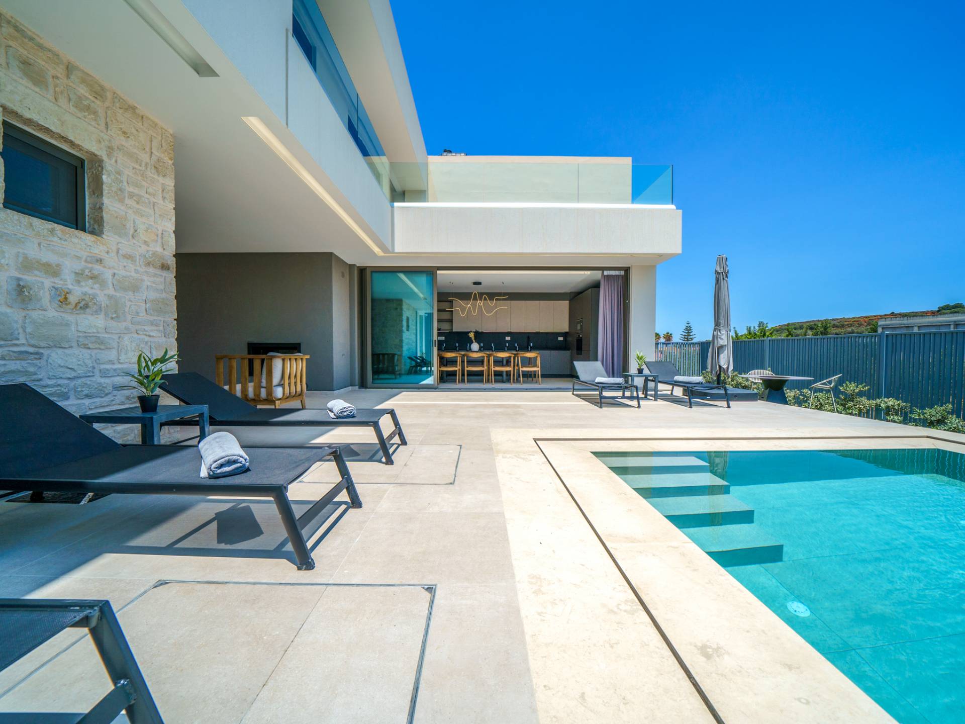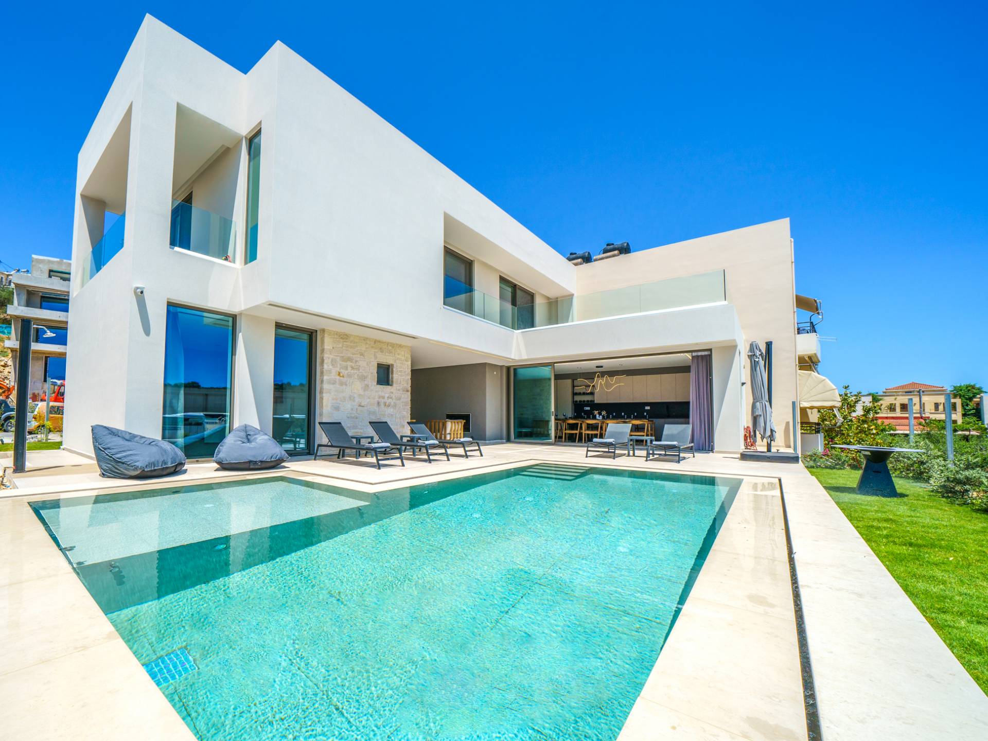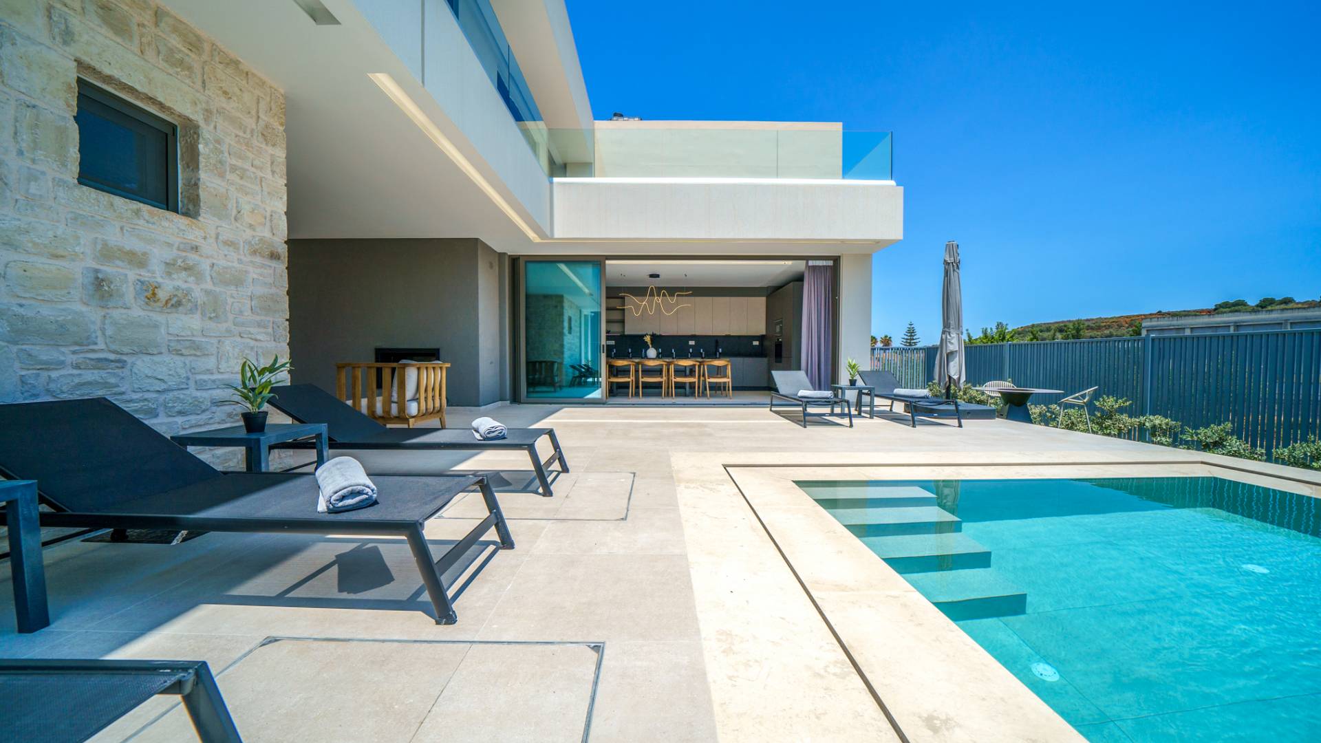 Unlike more crowded resorts, Agioi Apostoloi offers a more laid-back, village-like feel, making it perfect for villa holidays. Whether you're looking for a romantic hideaway or a spacious villa for the whole family, the area offers a range of elegant, fully equipped properties just steps from the beach.