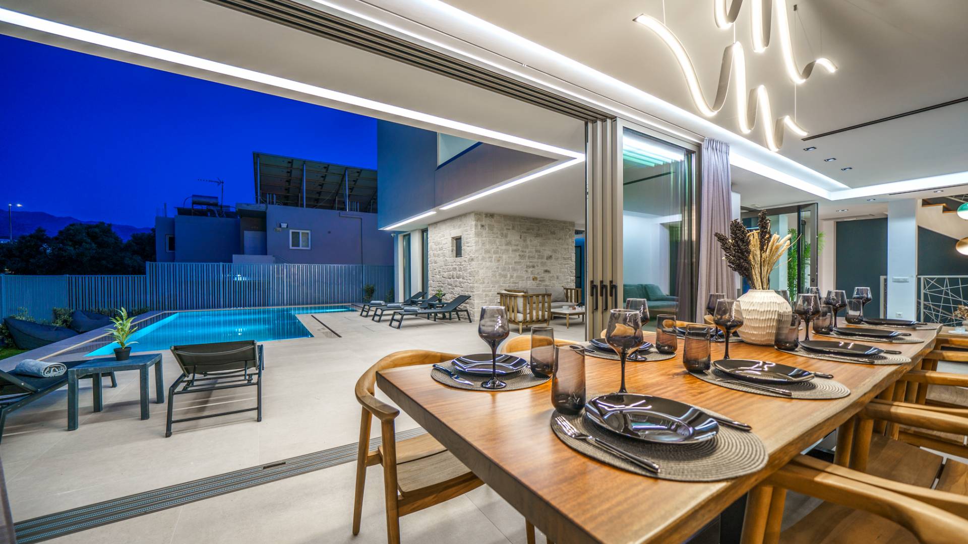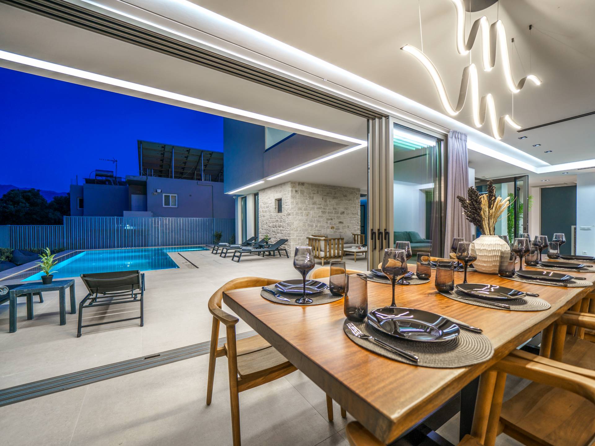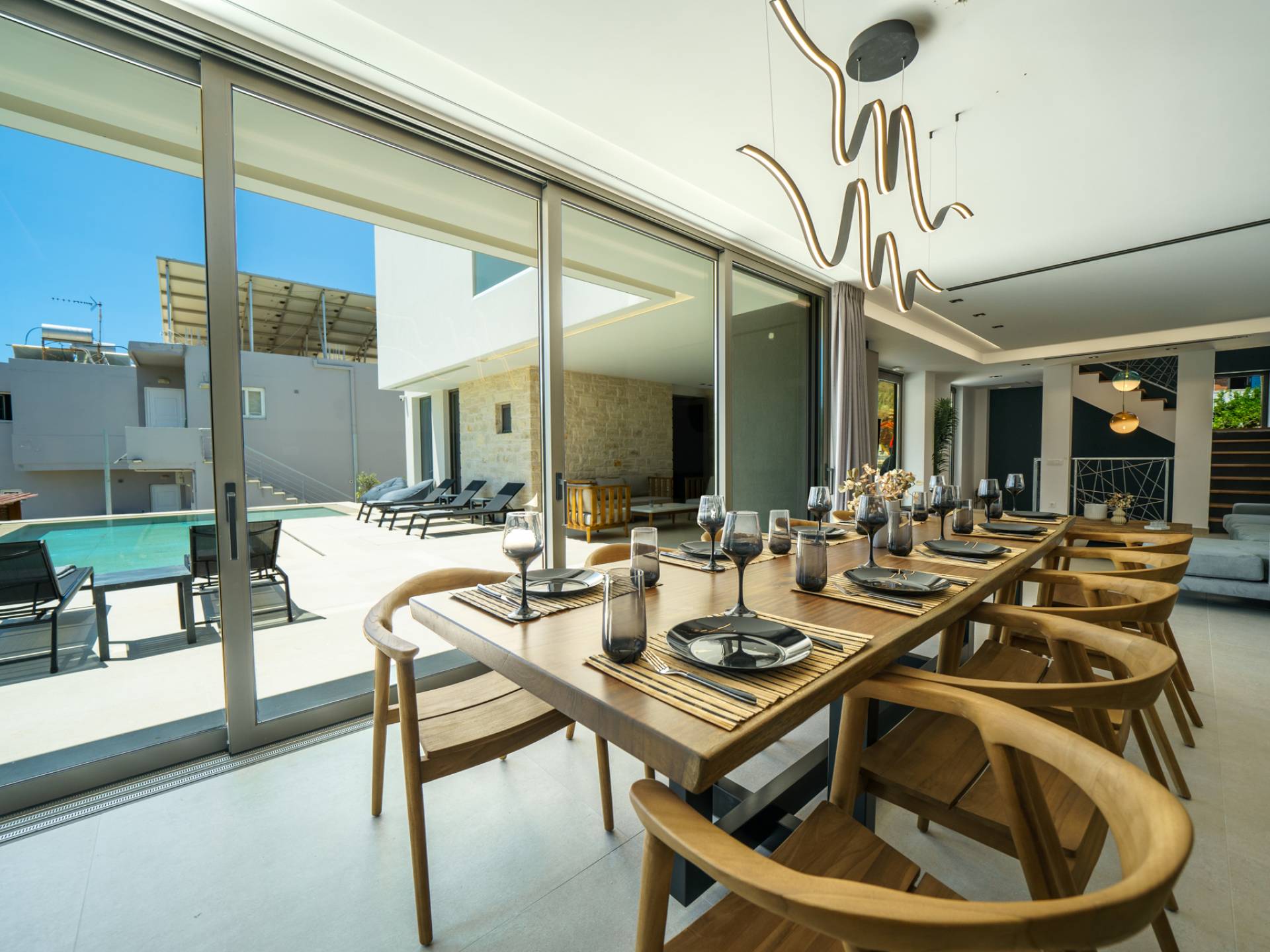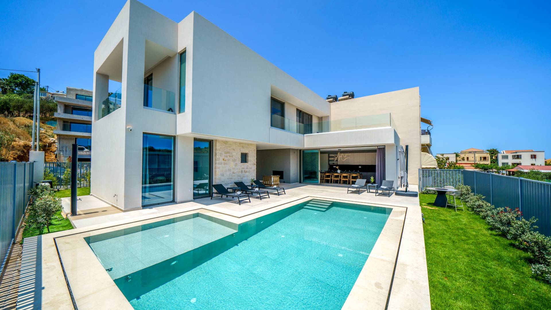 Unlike more crowded resorts, Agioi Apostoloi offers a more laid-back, village-like feel, making it perfect for villa holidays. Whether you're looking for a romantic hideaway or a spacious villa for the whole family, the area offers a range of elegant, fully equipped properties just steps from the beach.