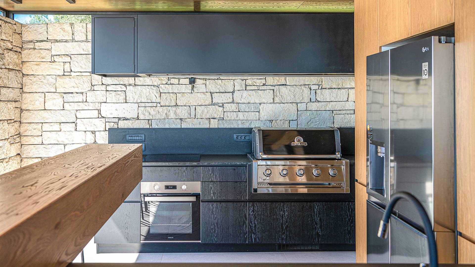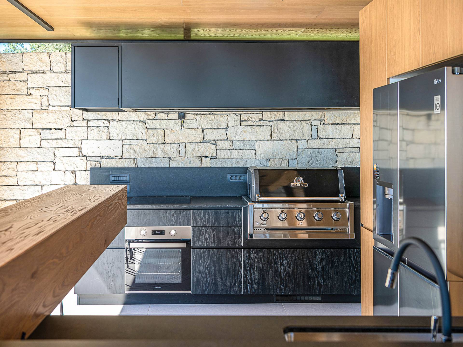 - A chef’s dream: Fully equipped indoor and outdoor kitchens, including gas grill, double fridge, and al fresco dining under a shaded pergola.
