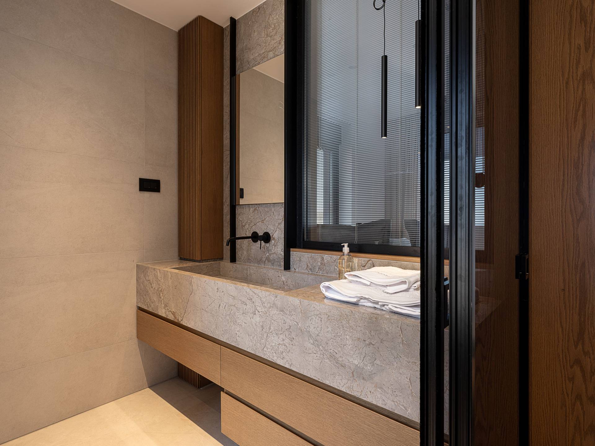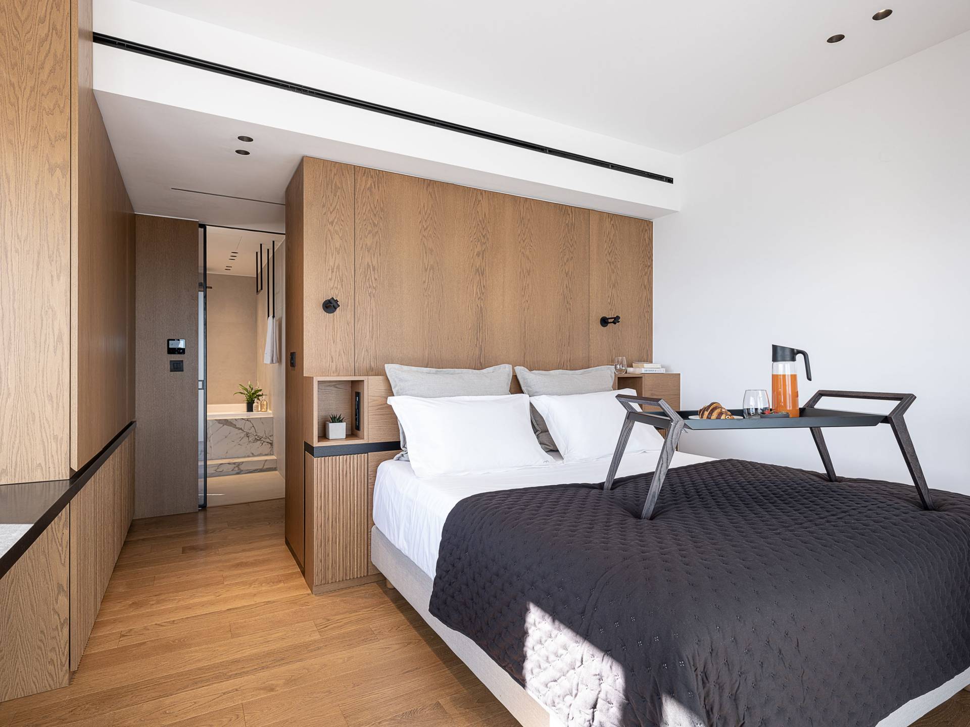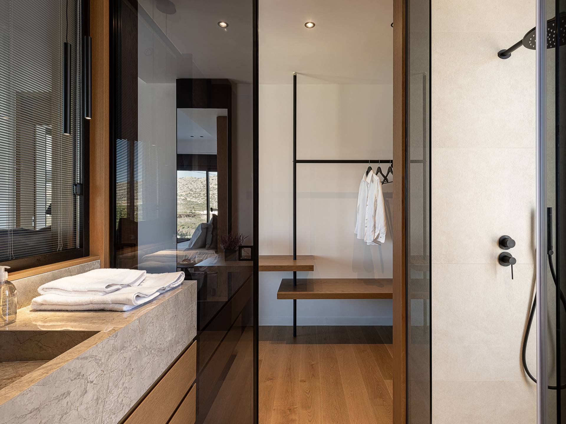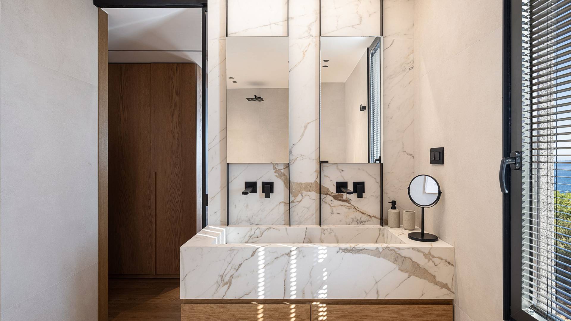 - Master Bedroom 2: Ethanol fireplace, sea view balcony, hydromassage bath, double vanity