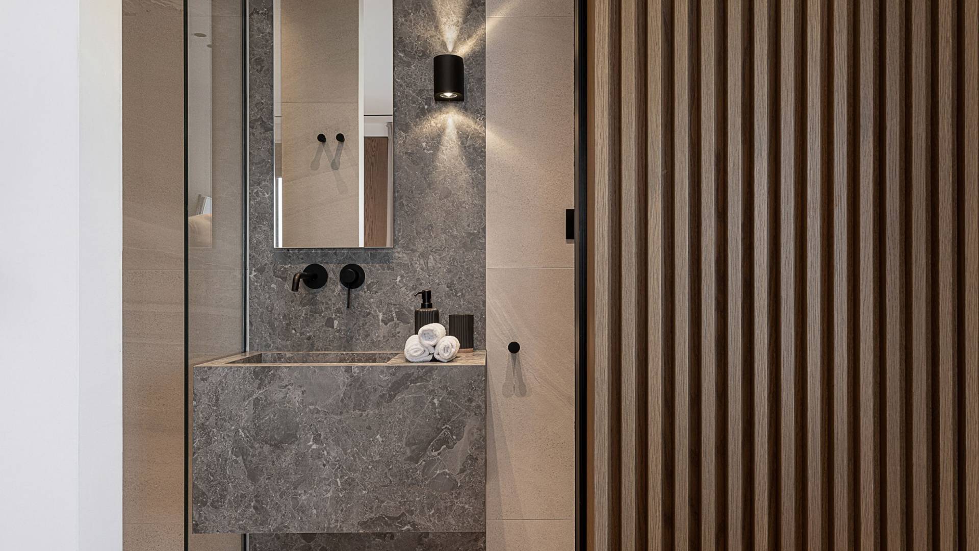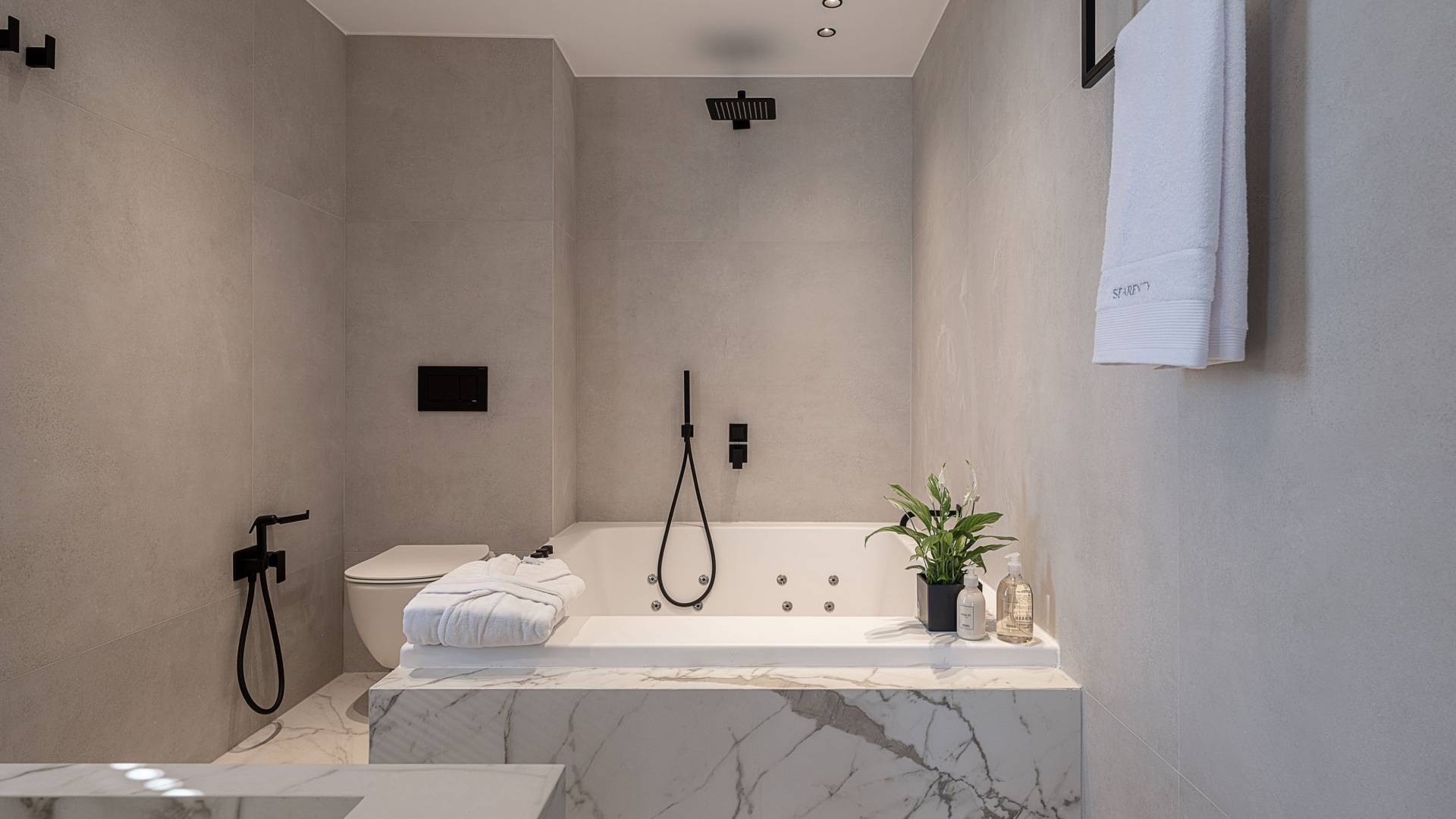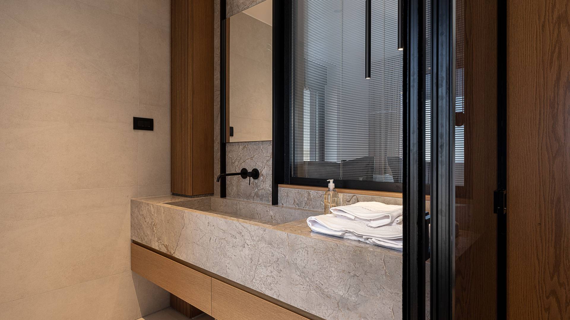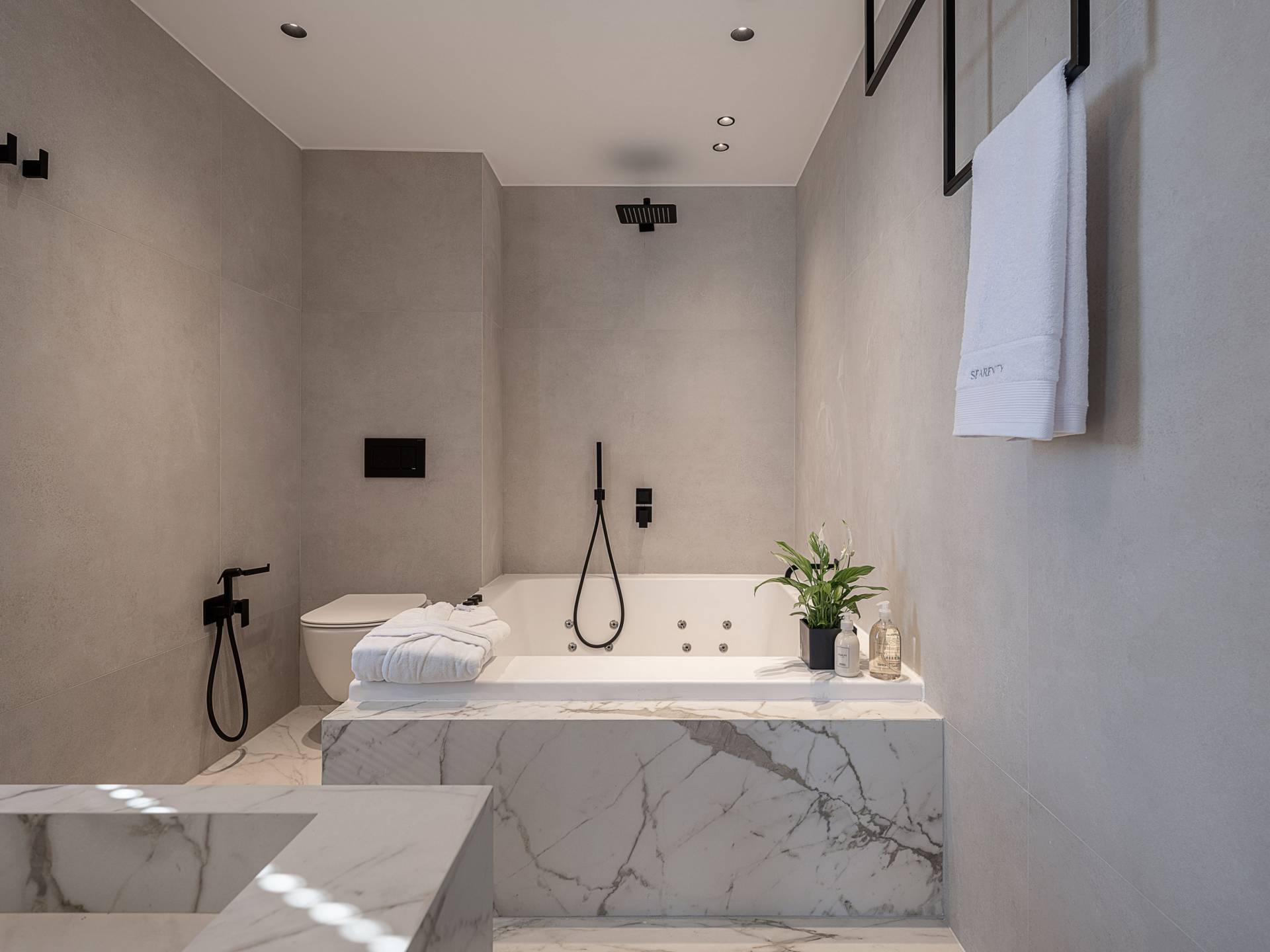 - Master Bedroom 2: Ethanol fireplace, sea view balcony, hydromassage bath, double vanity