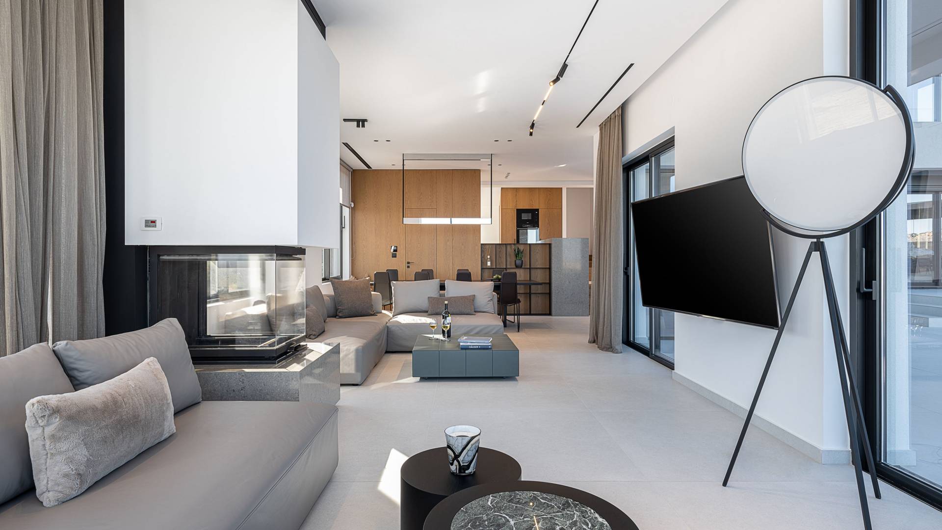 Each corner of Searenity Villa Chania has been thoughtfully designed for elegance and comfort. Natural light floods in through expansive windows, while carefully curated furnishings blend minimal luxury with authentic warmth.