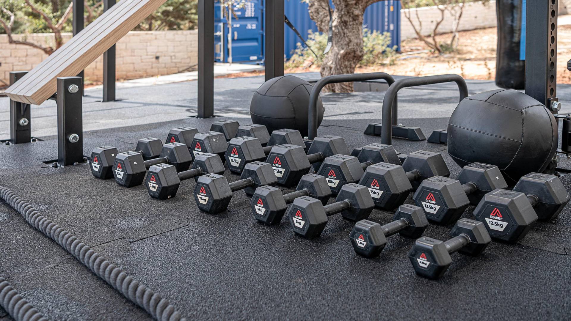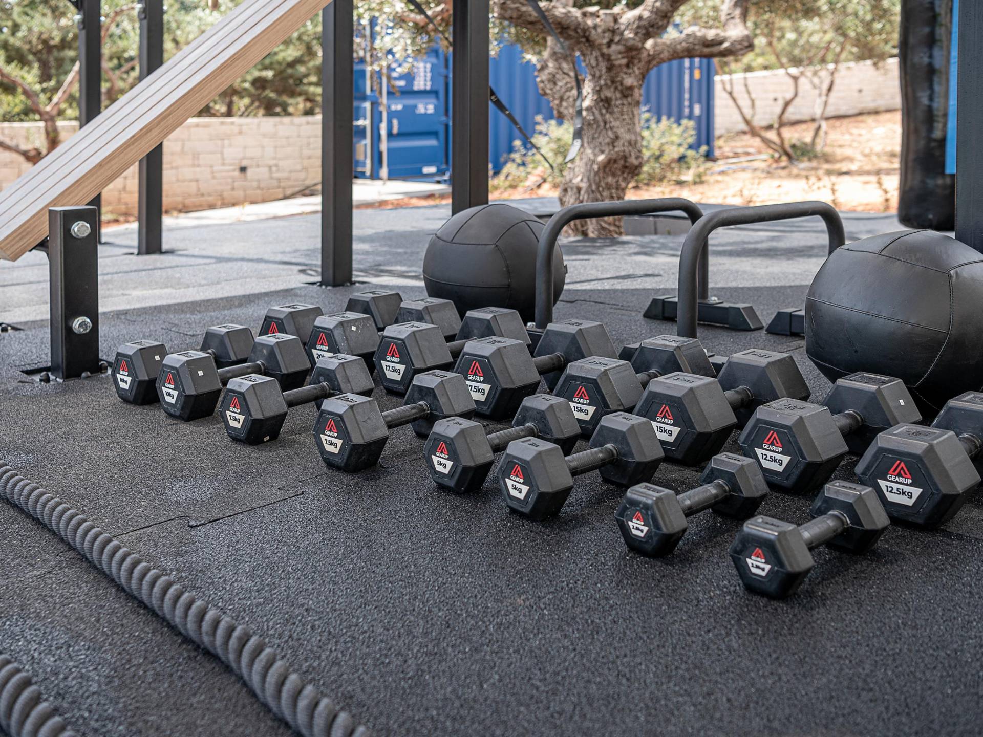 - Outdoor gym: With free weights, boxing bag, resistance bands, and more