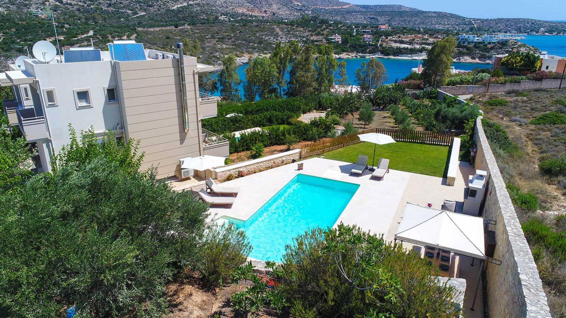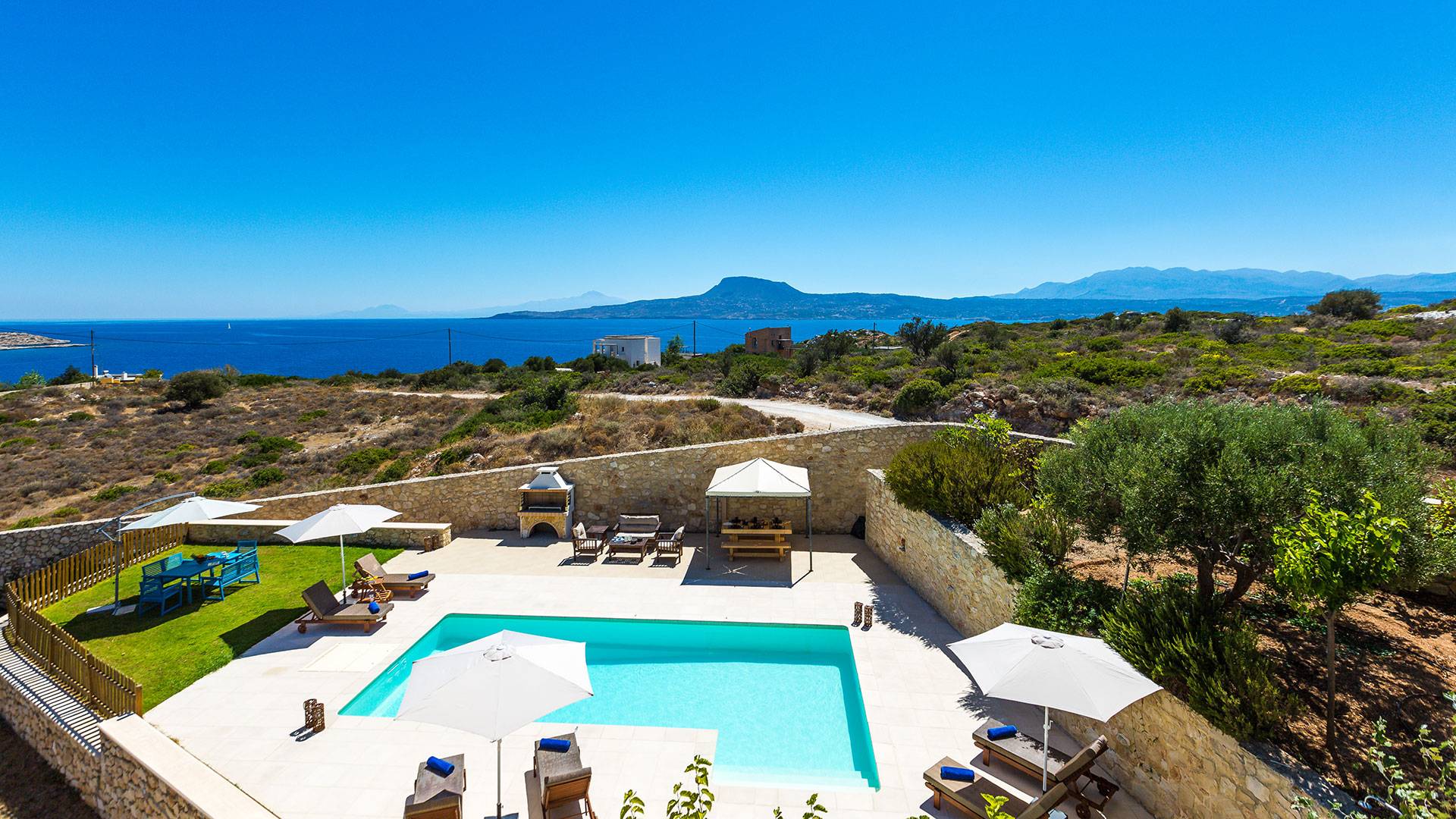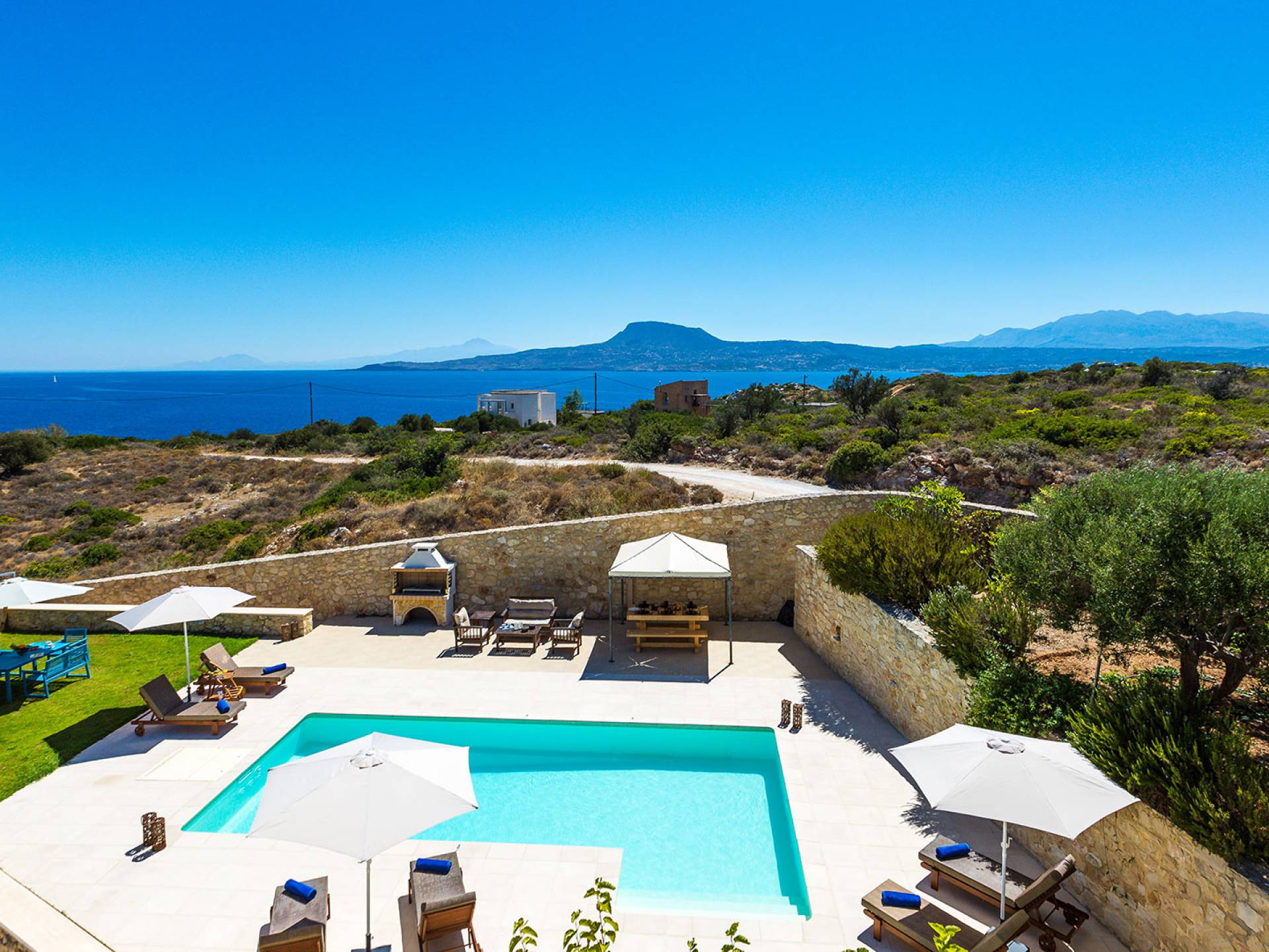 The villa is located in the stunning Loutraki–Marathi area of the Akrotiri Peninsula, Chania.