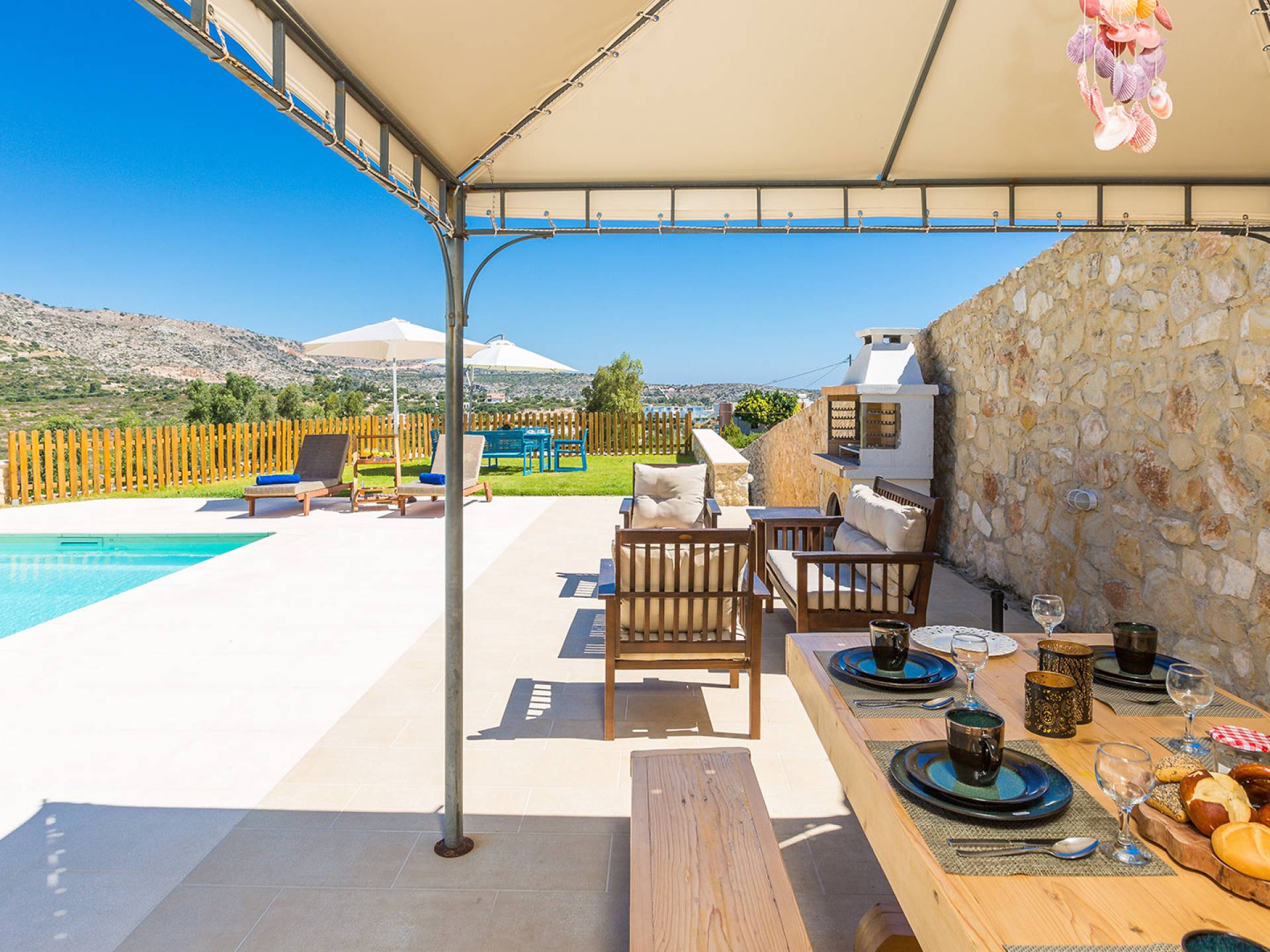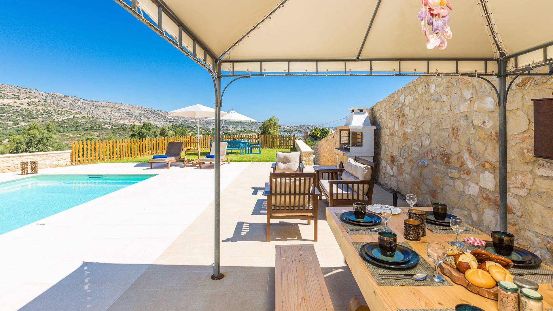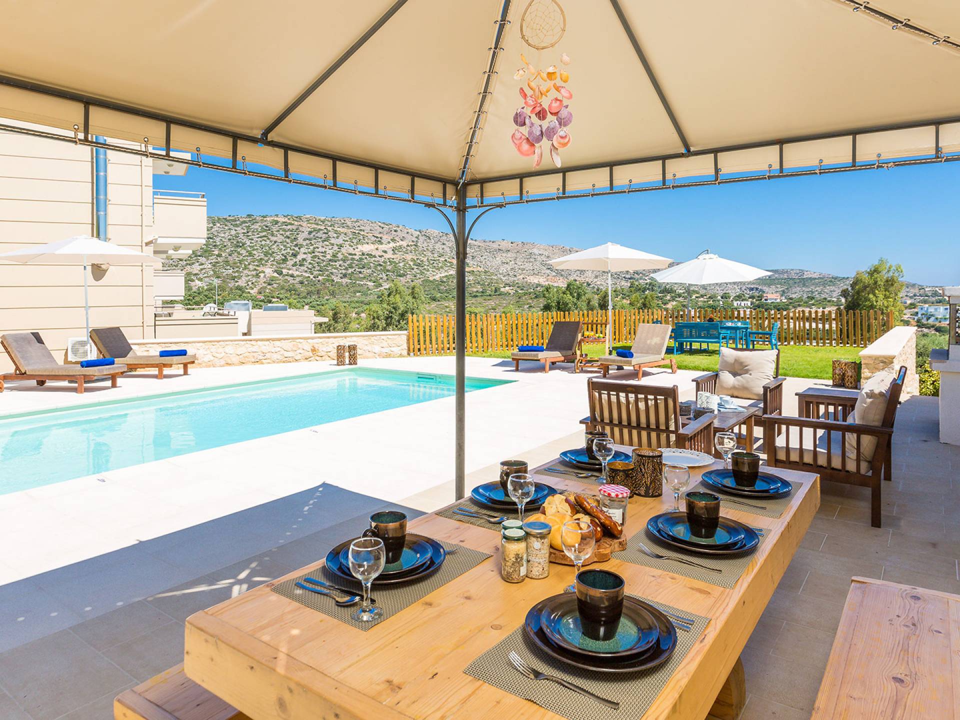 The villa is located in the stunning Loutraki–Marathi area of the Akrotiri Peninsula, Chania.