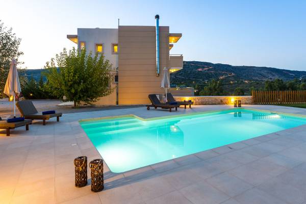Outdoors you can find a private, chlorine-free heated pool. Star Villas Chania offer also sunbeds and a large parasol, outdoor furniture, table tennis, gardens, and private parking. You can relax by the pool and enjoy the magical views of the sea and the mountains.