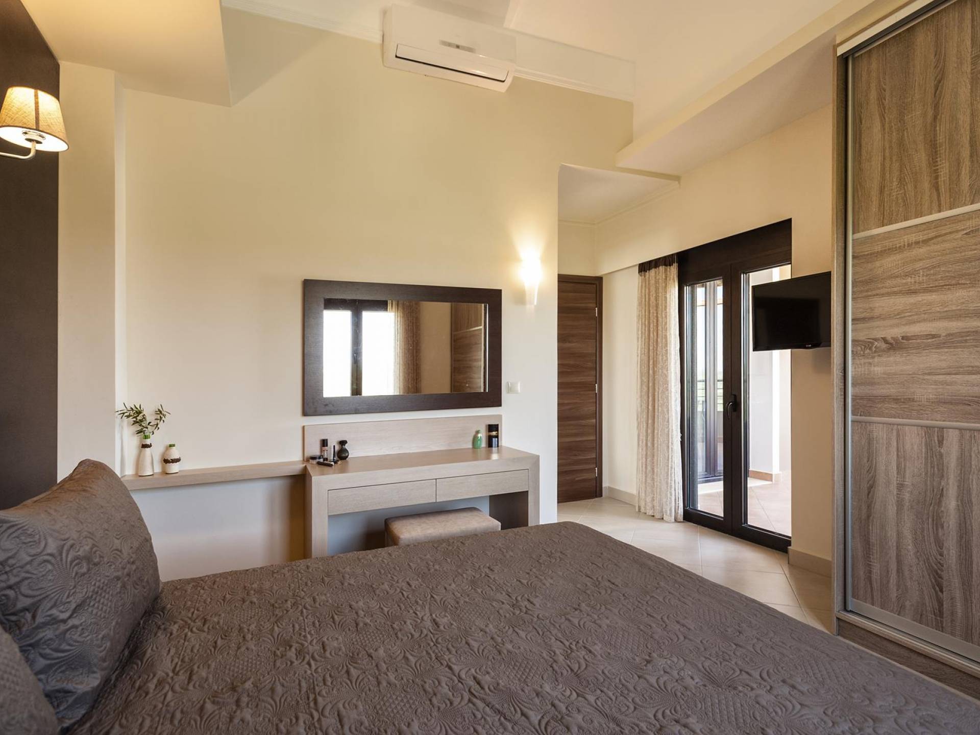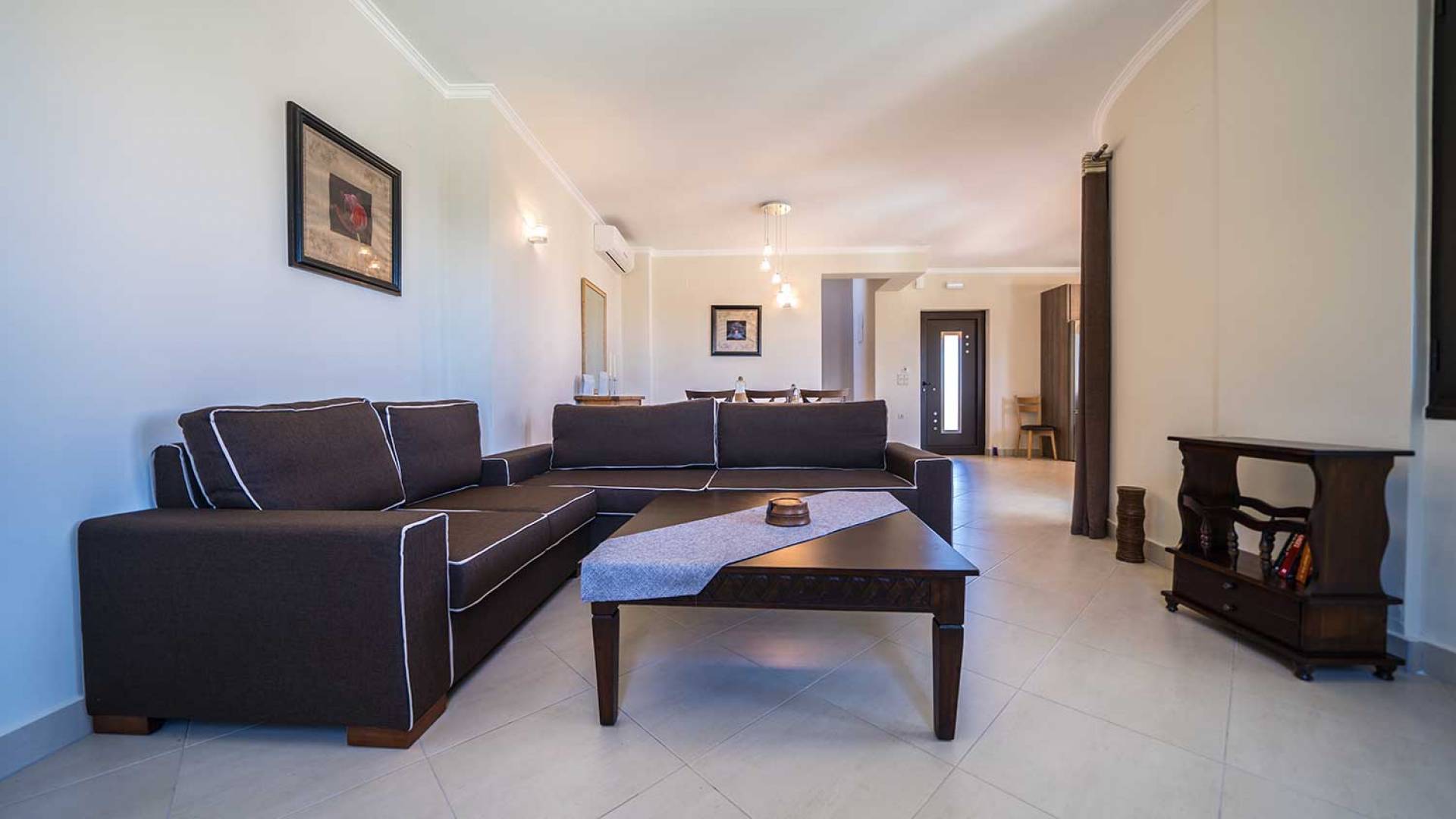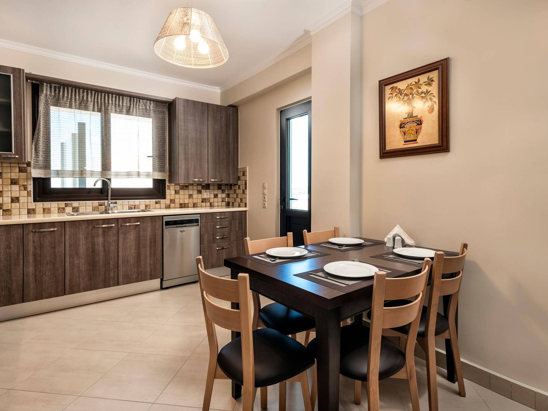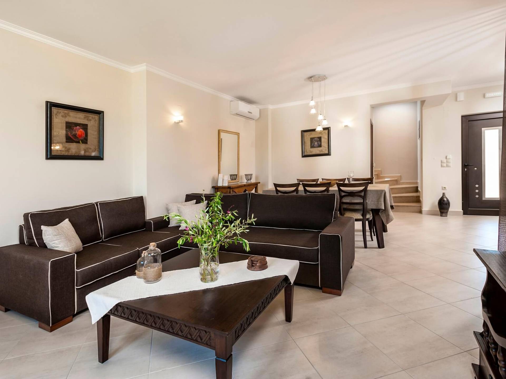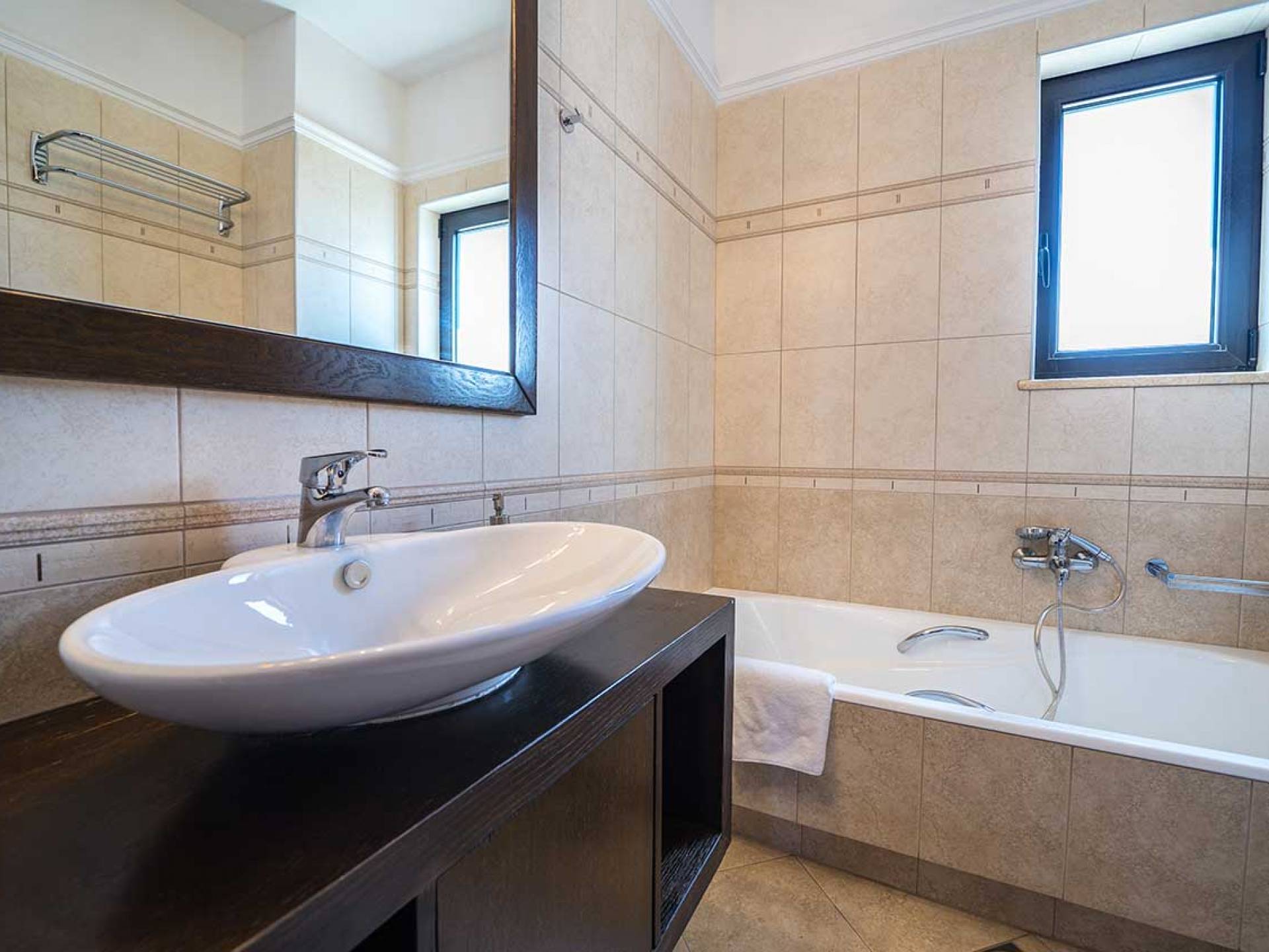 There is a large private swimming pool with optional heating, a large private garden with a barbeque area, and parking space. All the pool area is full furnished with sunbeds, chairs, and tables for dining and parasols. In the evening you can either enjoy the magnificent romantic sunset that paints with the nicest colors the clear blue Mediterranean sky or you can drive in a distance of approx 3-4 minutes to the nearest restaurants and taste the Cretan cuisine. Relax and enjoy the private and exclusive atmosphere of a deluxe home with 5-star facilities.