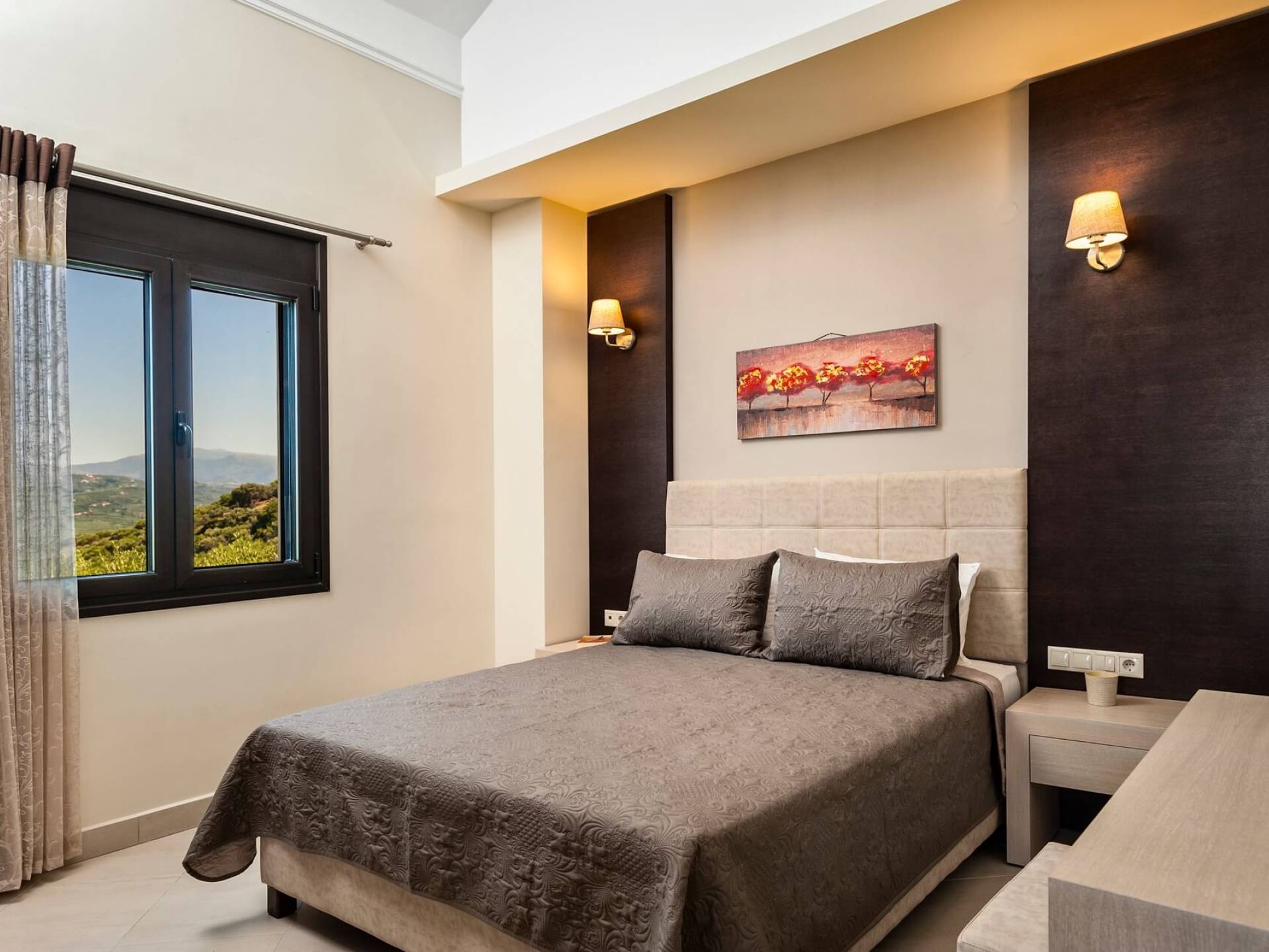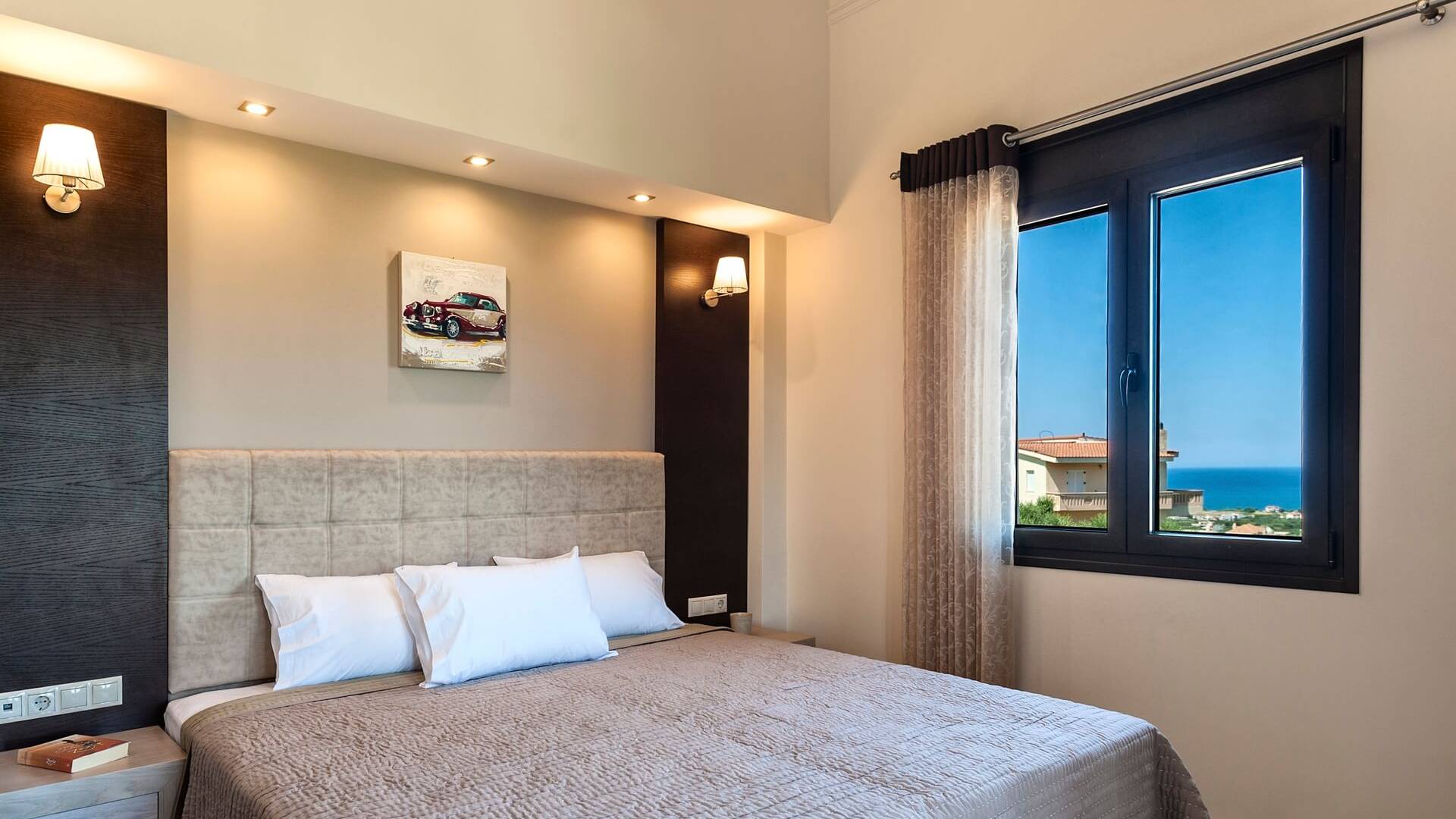 Stelina Villa Chania consists of 3 bedrooms, 2 bathrooms, a large living room, a dining area, and a fully equipped kitchen. The villa has 2 bedrooms with double beds and 1 bedroom with two single beds. You can also enjoy magnificent views from all of the windows of the villa.