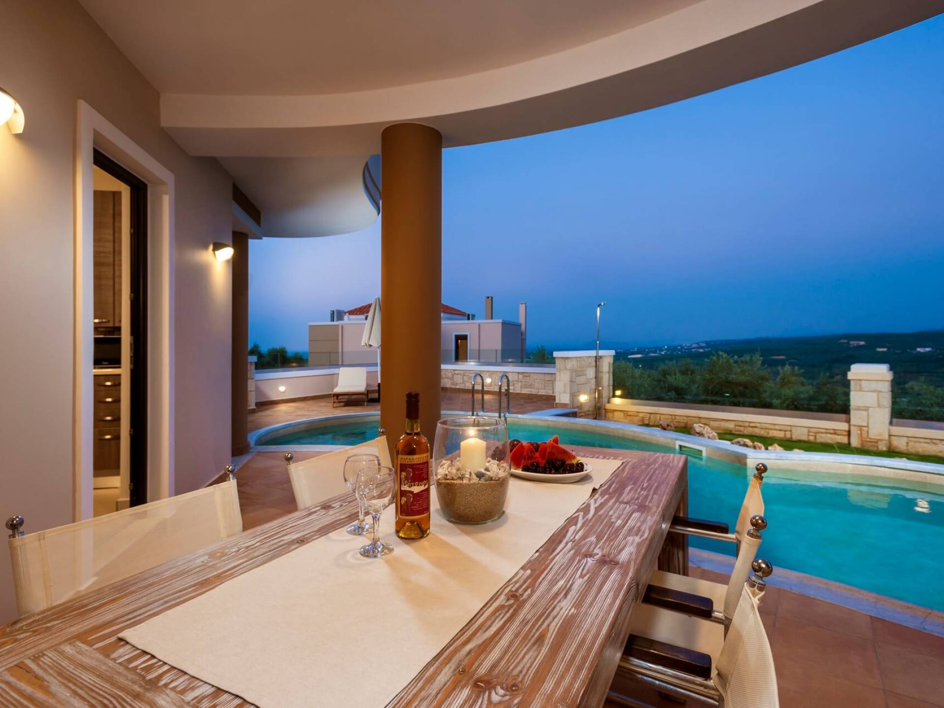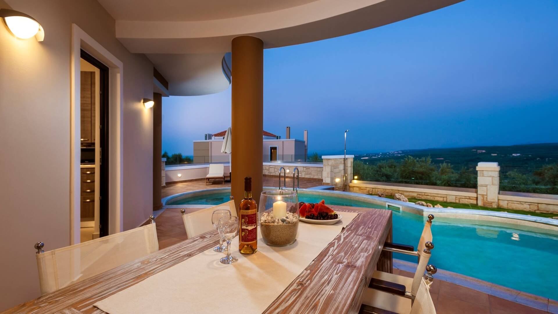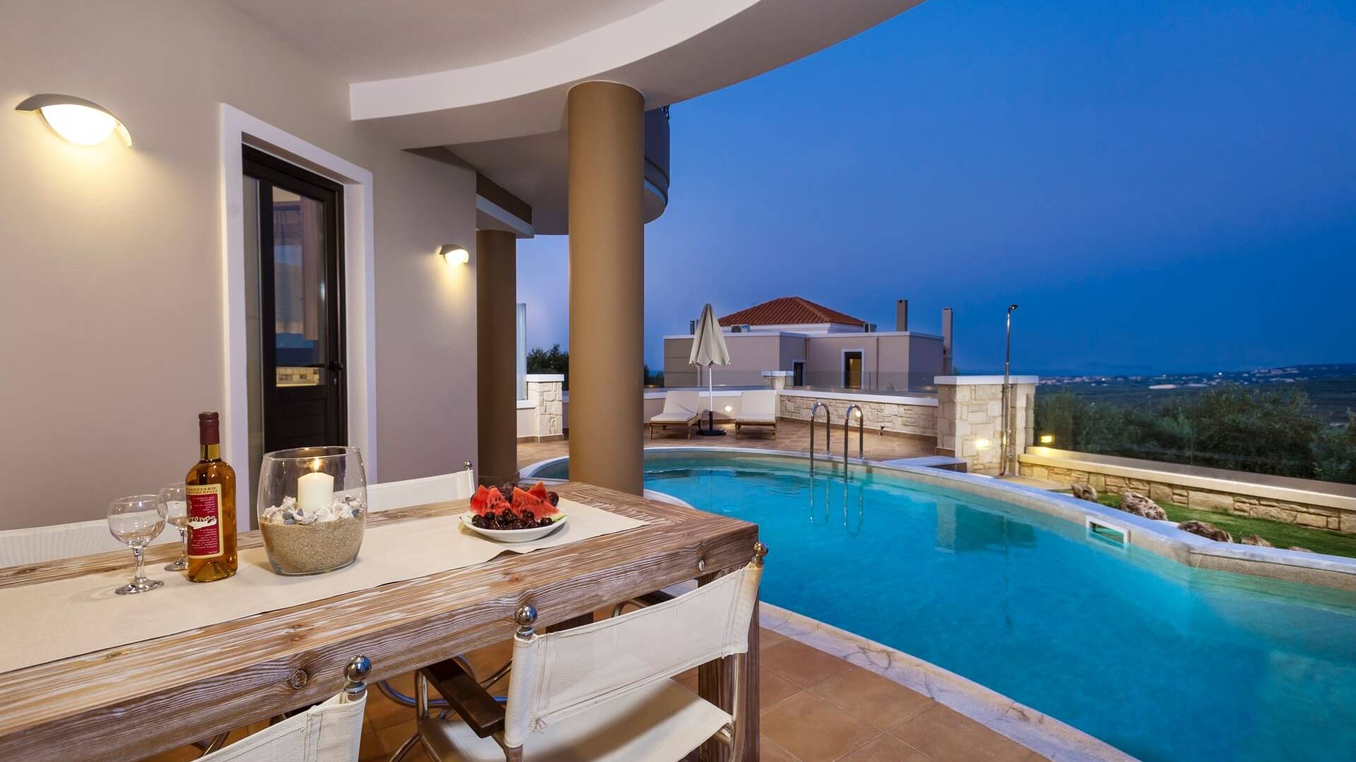 Stelina Villa Chania is a brand-new luxury villa with magnificent views over the Cretan land and sea that is near the beach and the most popular destinations of West Crete. The villa offers a full range of services in a private, tranquil setting. The decor delivers a rare blend of sophisticated elegance with a relaxed, modern flair. It is constructed under high standards and it is dominated by the strong presence of local elements and a wonderful view.