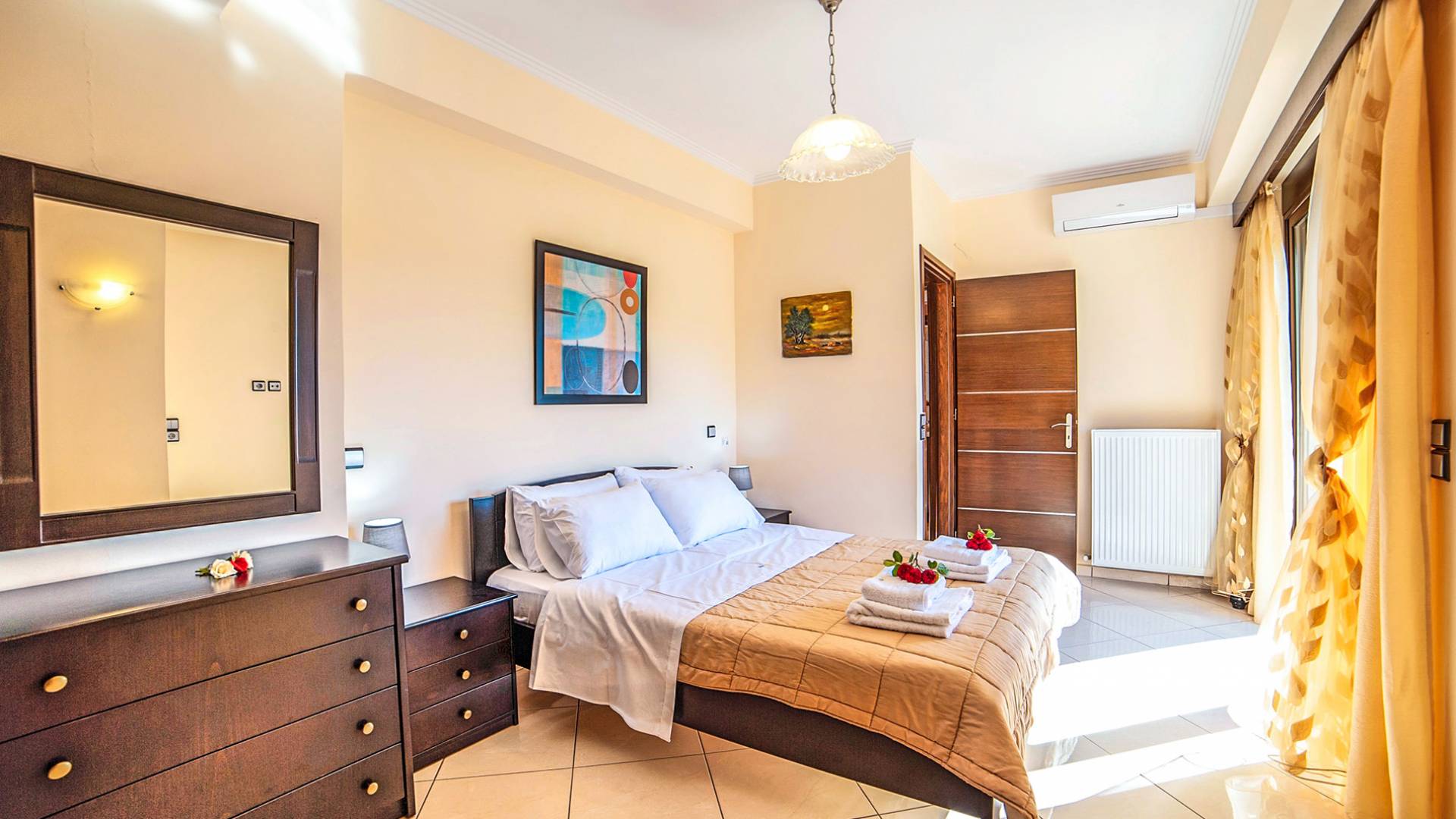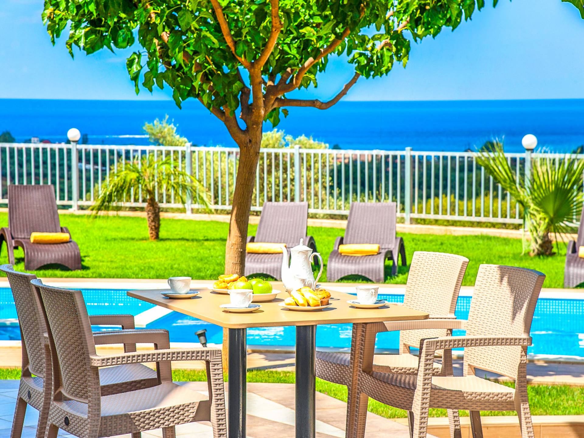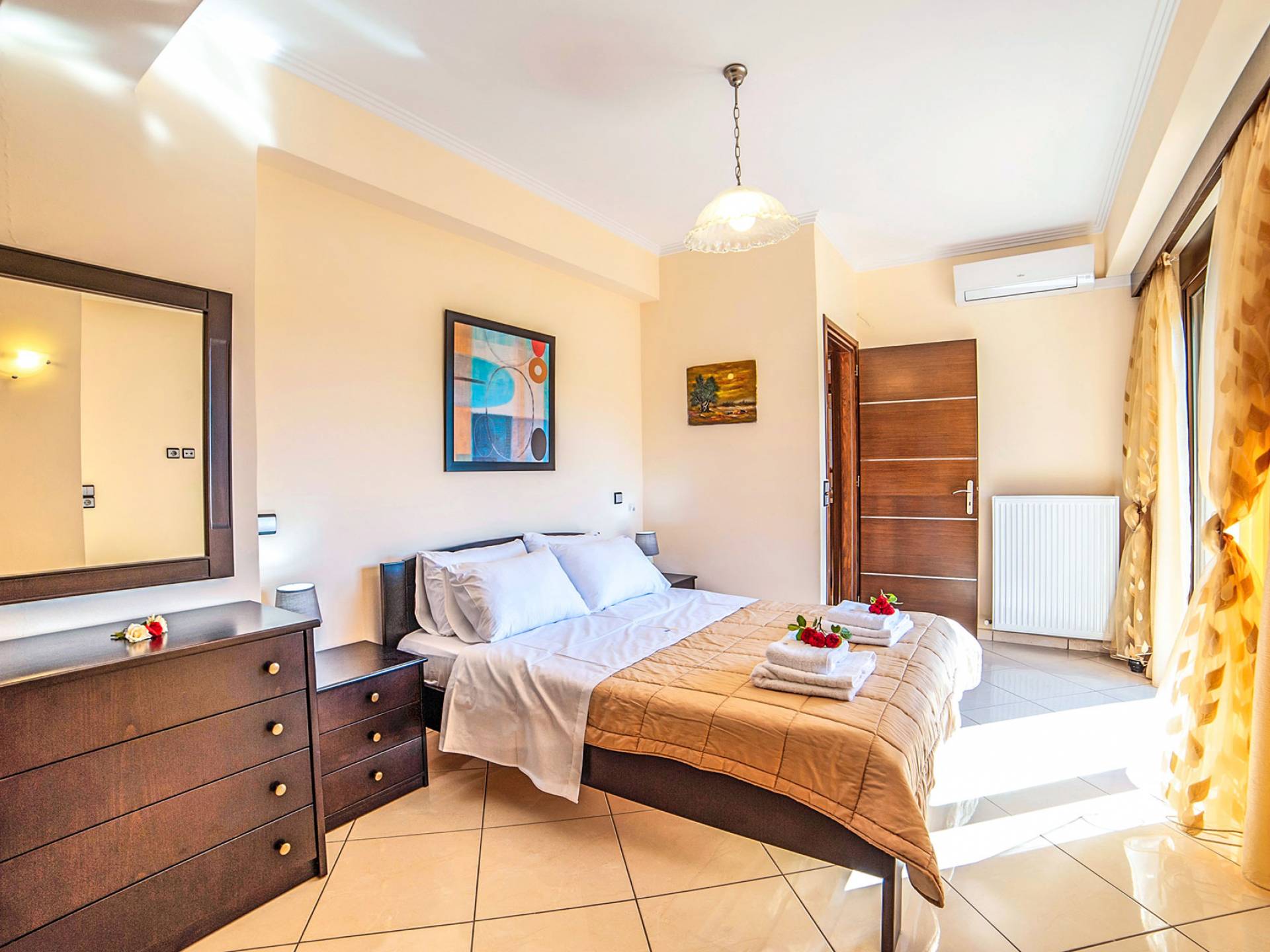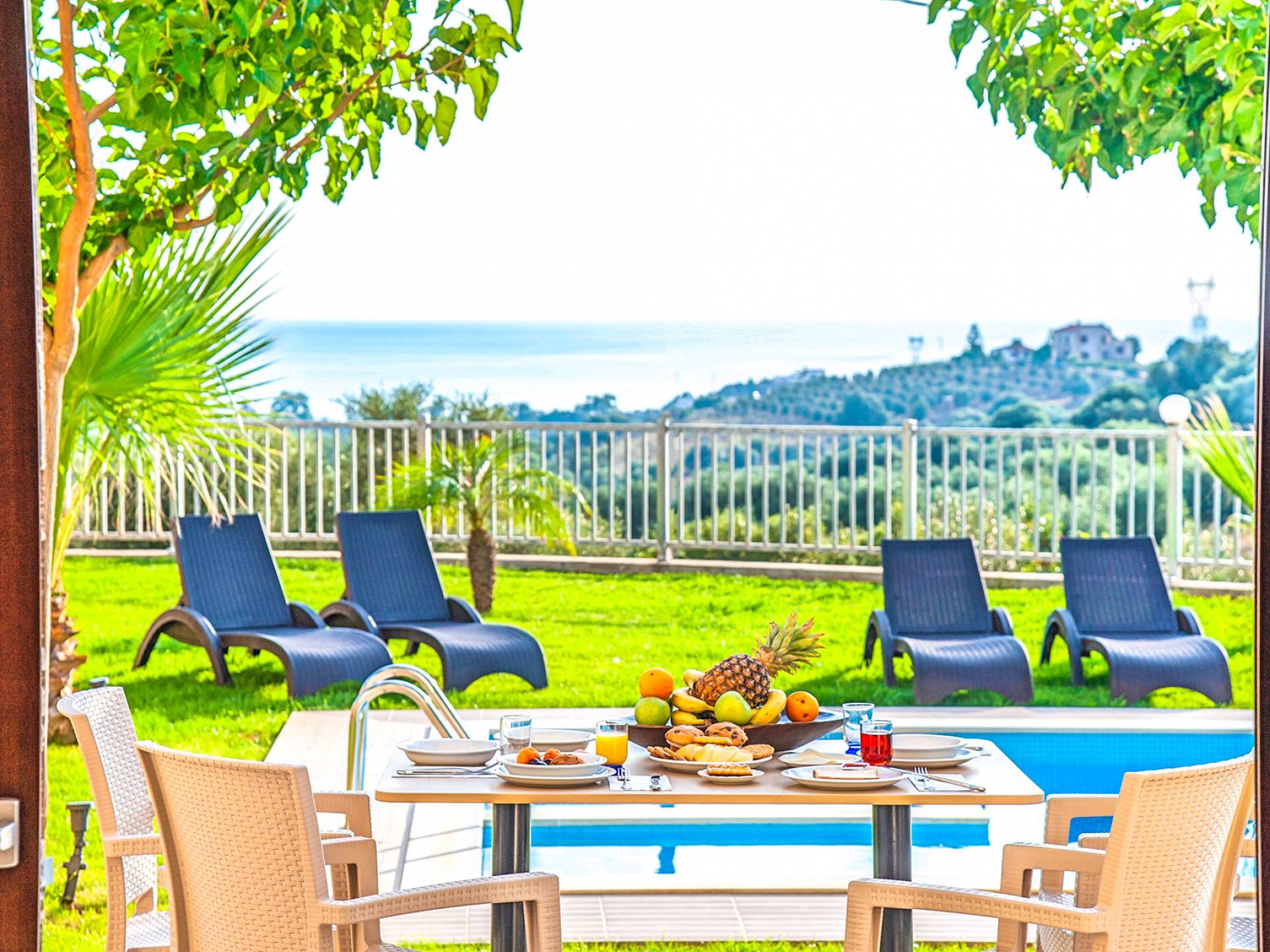 There is also a built-in BBQ and kitchen facilities (sink). It is a perfect spot to enjoy a round of cocktails lying on the sunbeds near the pool while viewing the surrounding area of mountains and sea. Free parking space is available. When you’re ready to socialize you’ll discover the beautiful long stretched beach within a few minutes and the resort Georgioupolis village, offering amenities of any kind and countless dining options. The property is fully equipped so you can enjoy your holiday time assured that you will find everything that you might need during your stay.