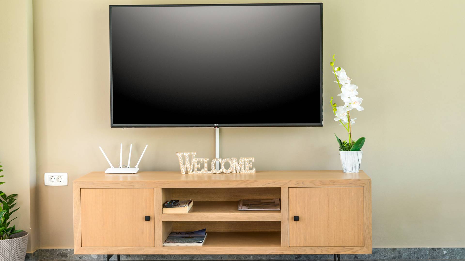 A stylish open-concept living space with a smart TV (satellite channels, Netflix), perfect for relaxing after a day of adventure.