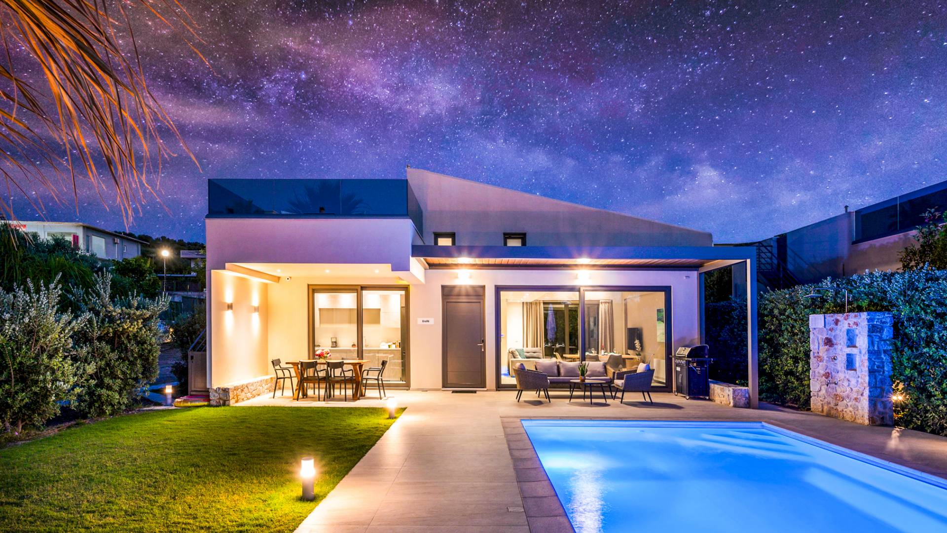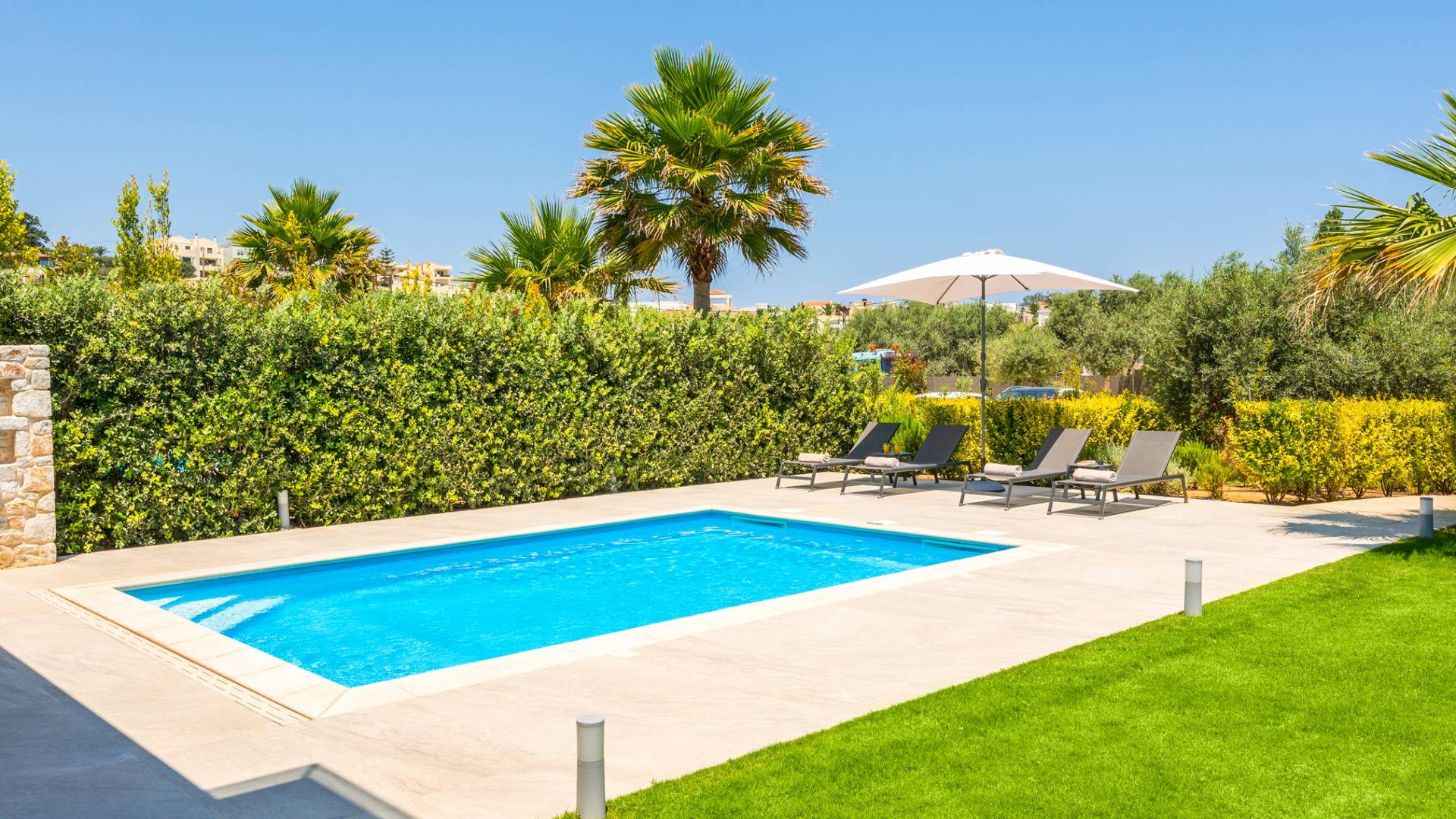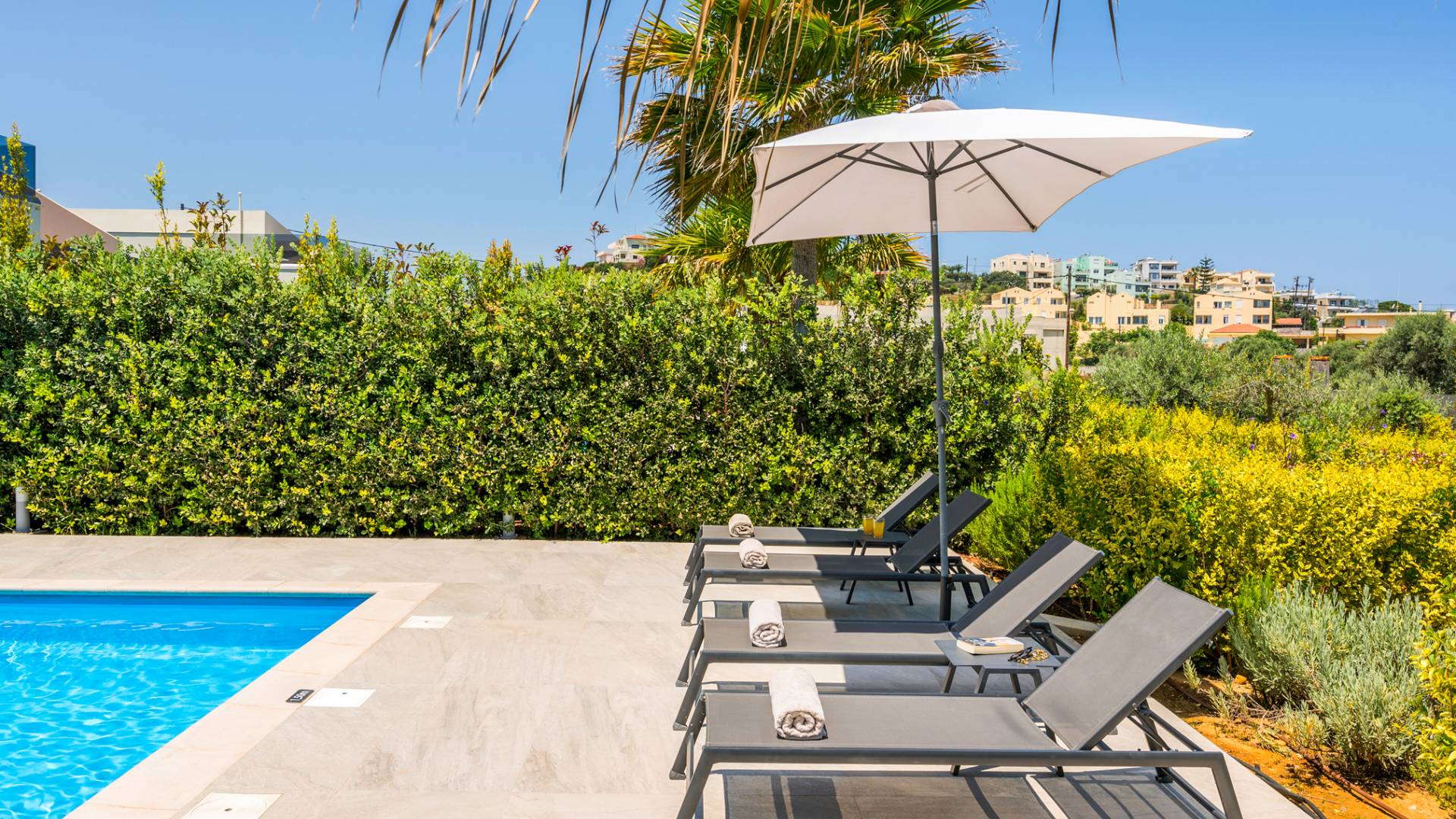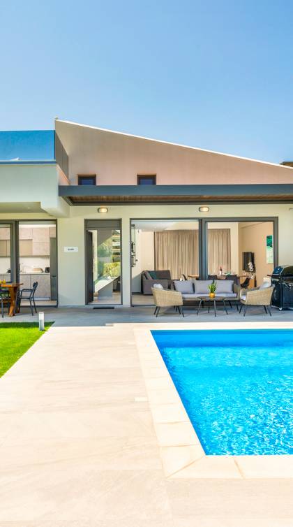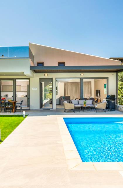Villa 1 at Solivida Villas Chania - Discover this newly built luxury villa in Chania, Crete, perfect for families and couples seeking a relaxing Mediterranean getaway. Located within walking distance from the blue-flag sandy beaches of Chrissi Akti and Agioi Apostoloi, and just 3km from Chania city center, this villa offers the ideal balance of tranquility and accessibility - no car rental needed!