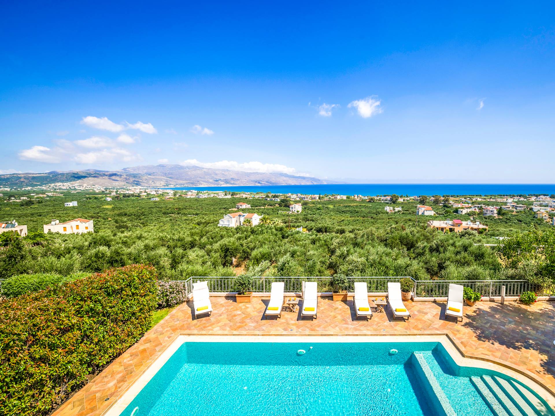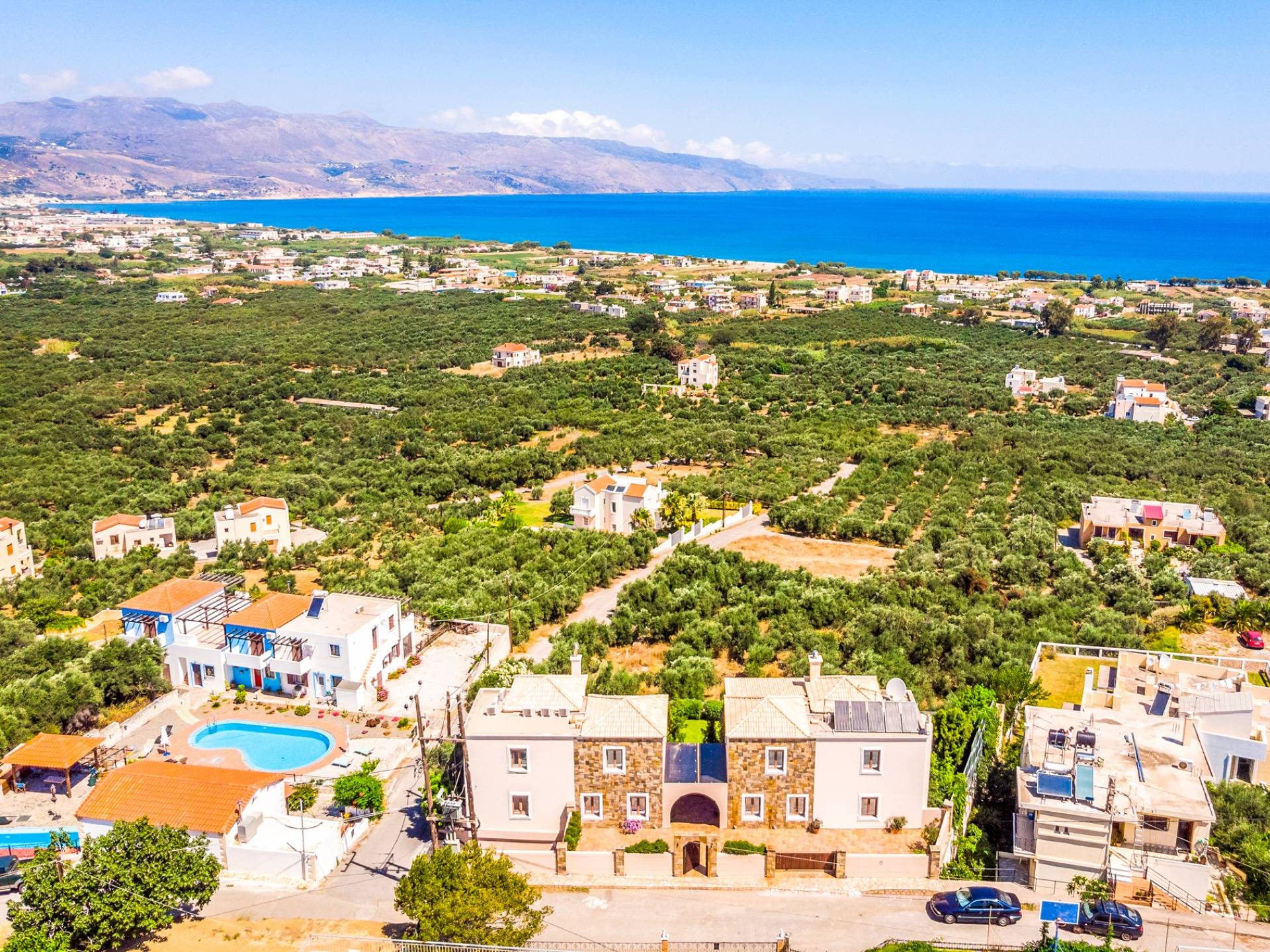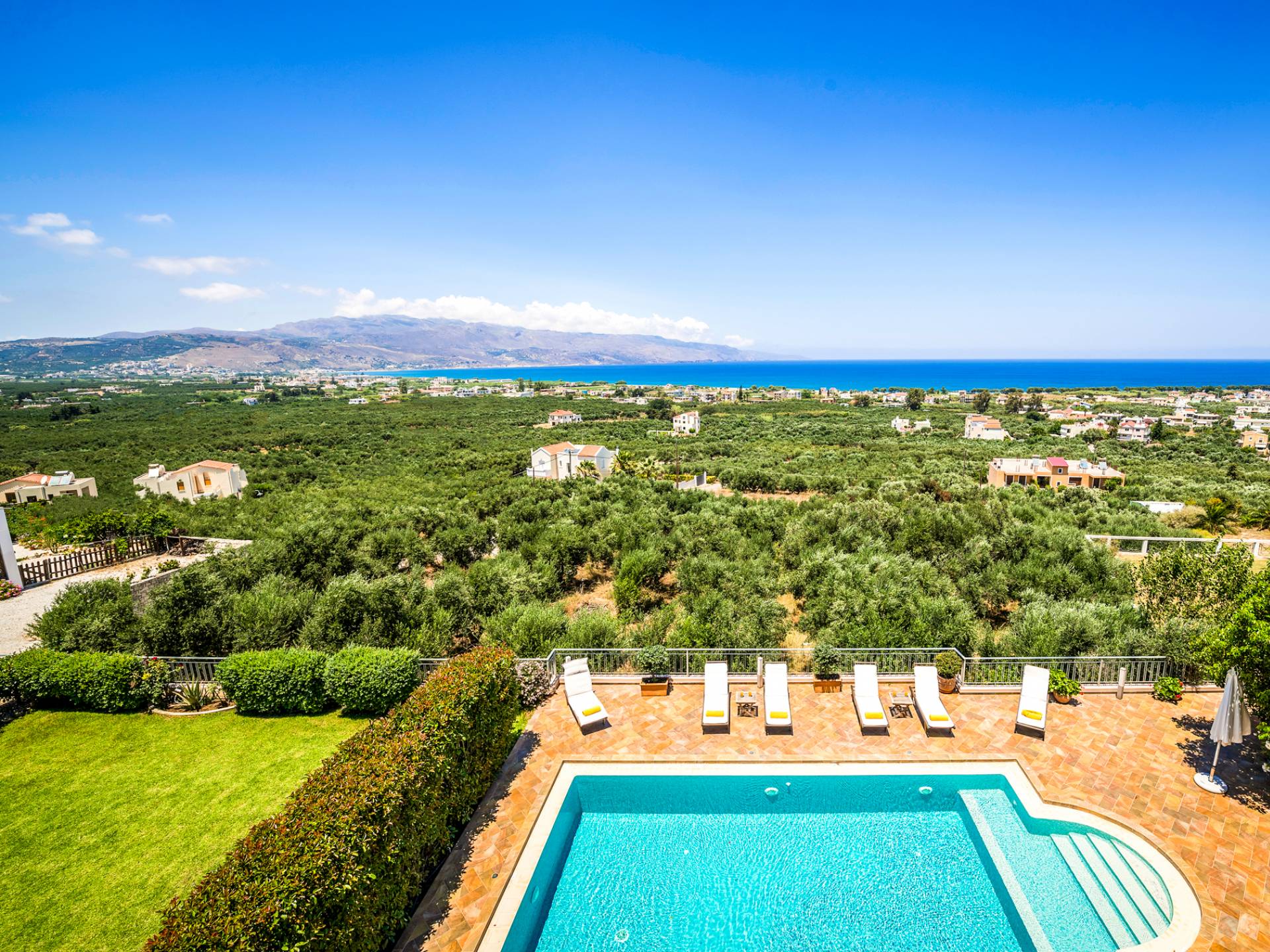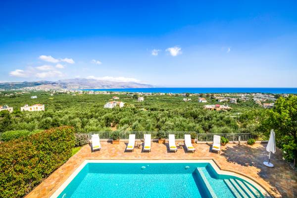 Caneva Villas Chania are luxury villa rentals with 3 bedrooms, indoor pool and outdoor private pool. The luxurious Caneva Villas Chania are constructed on a small hill. Their view is simply gorgeous. Endless olive groves stretching down to the sea forming a luscious green "carpet" that blends with the infinite blue. The elegant decor and the modern services provided by every single villa offer the ideal conditions for a relaxing and pampering stay.