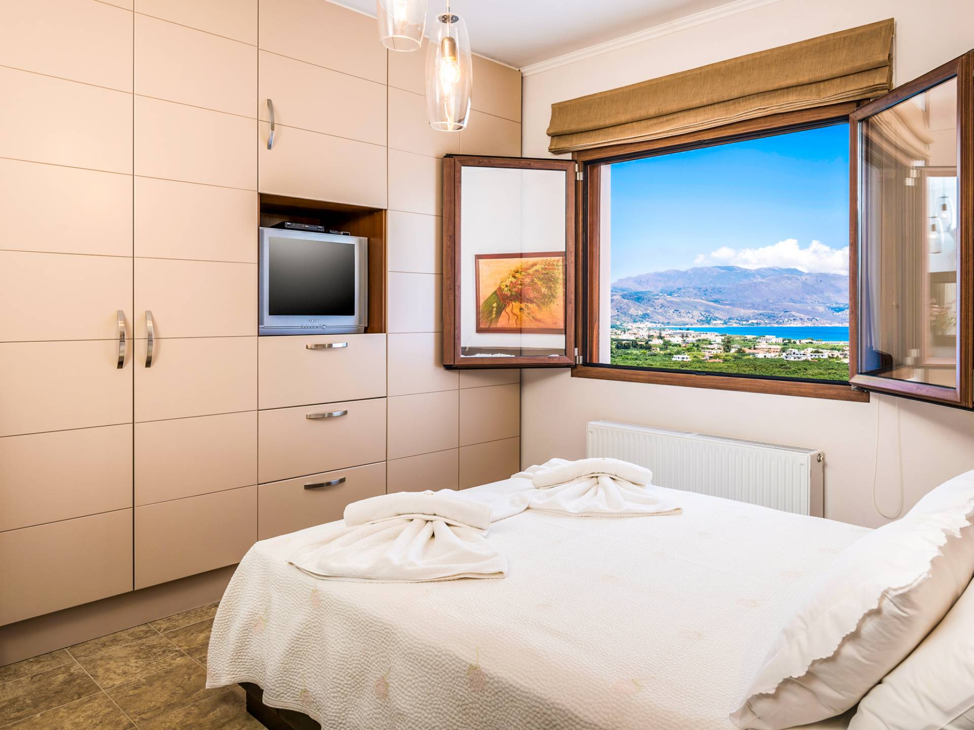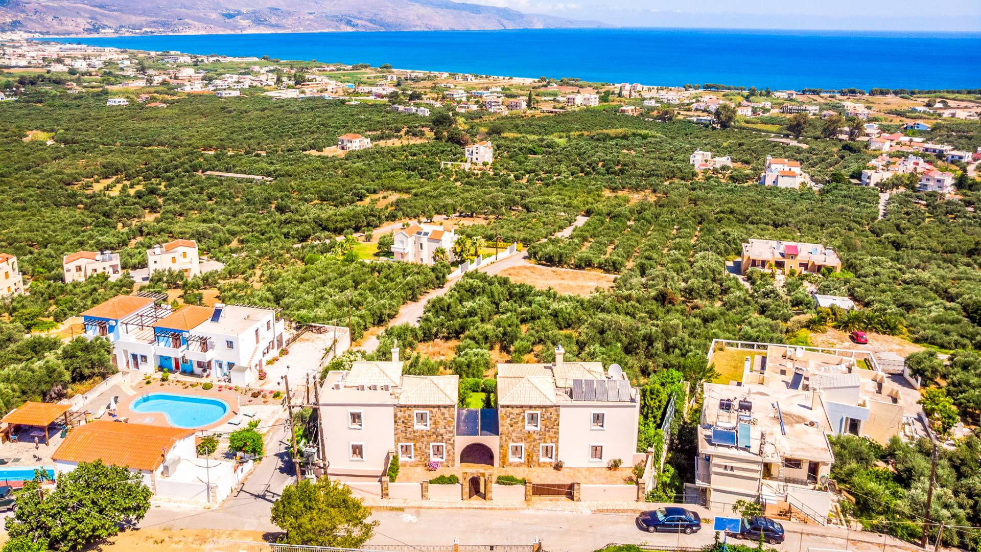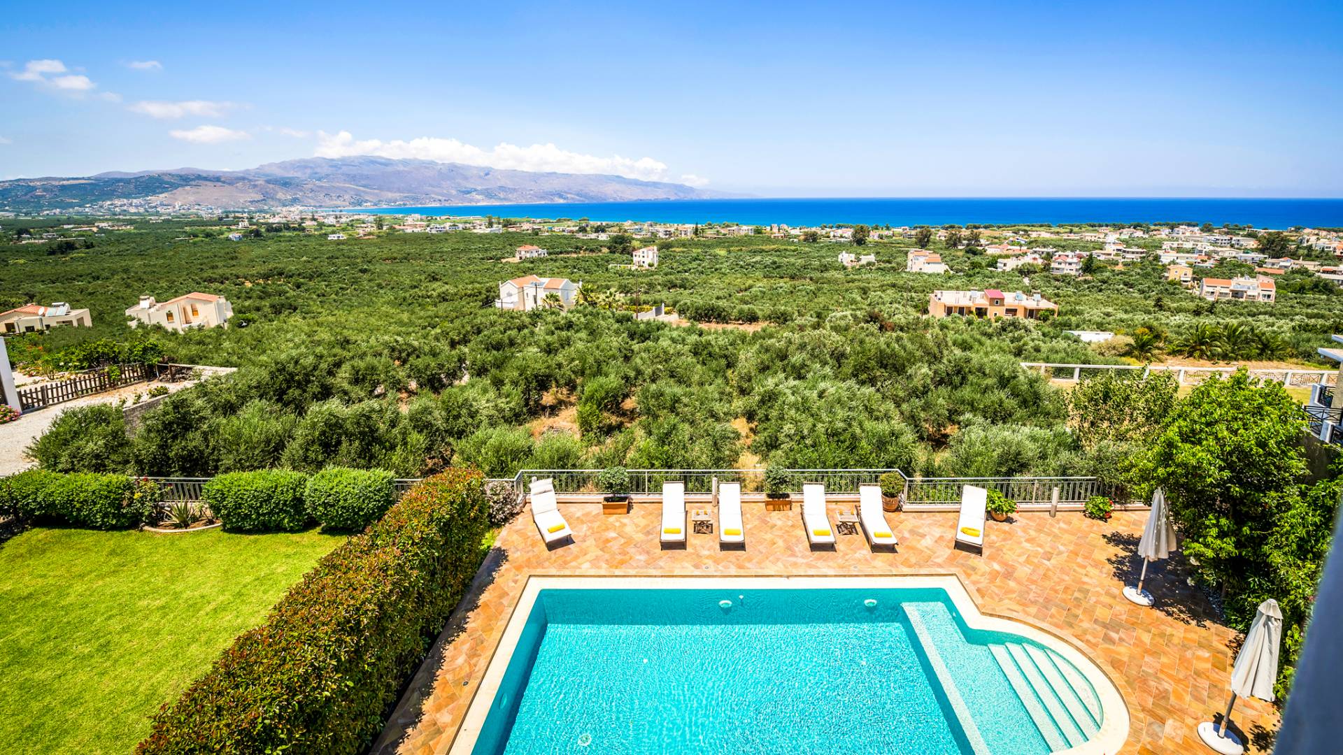 Caneva Villas Chania are luxury villa rentals with 3 bedrooms, indoor pool and outdoor private pool. The luxurious Caneva Villas Chania are constructed on a small hill. Their view is simply gorgeous. Endless olive groves stretching down to the sea forming a luscious green "carpet" that blends with the infinite blue. The elegant decor and the modern services provided by every single villa offer the ideal conditions for a relaxing and pampering stay.