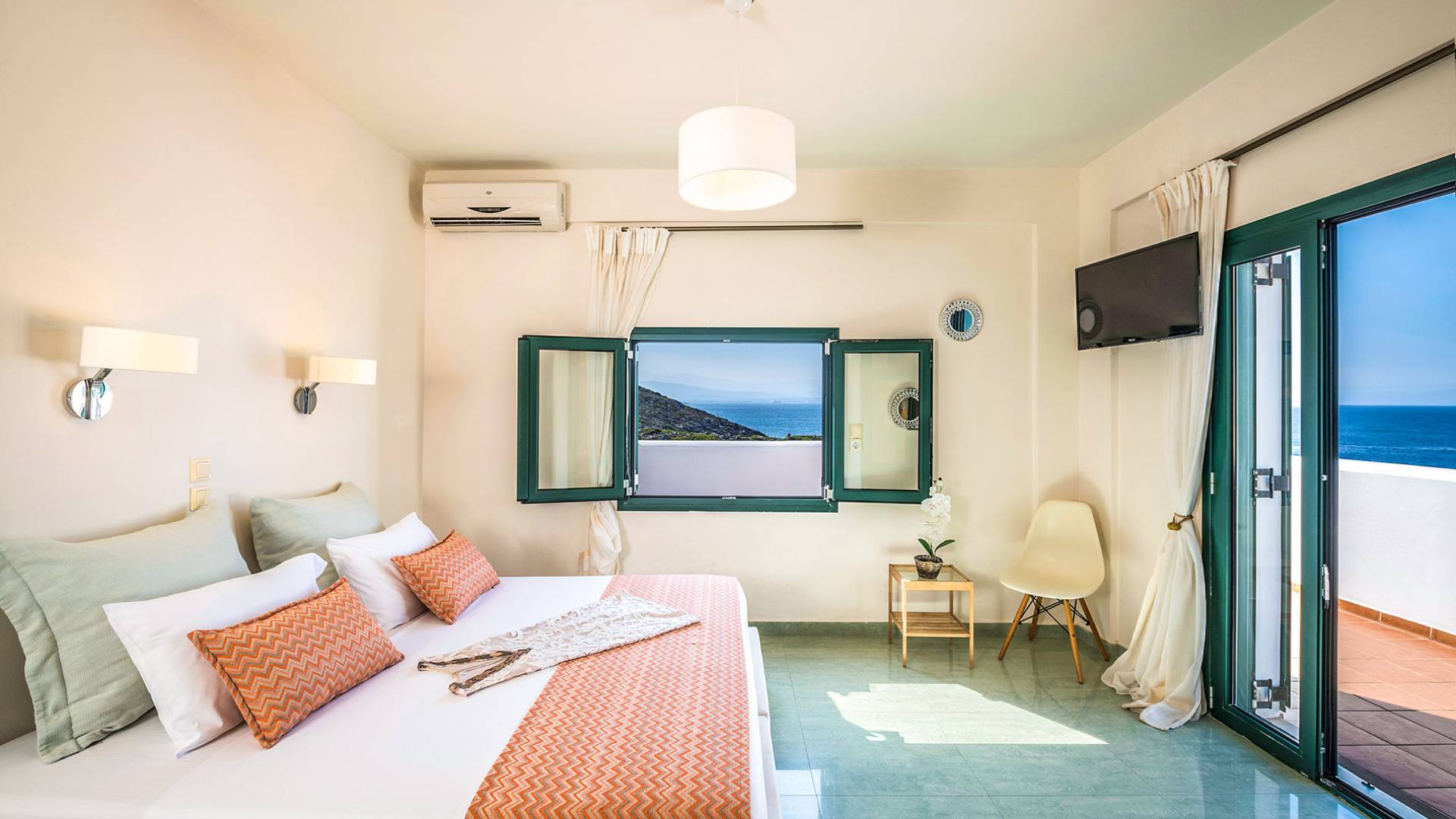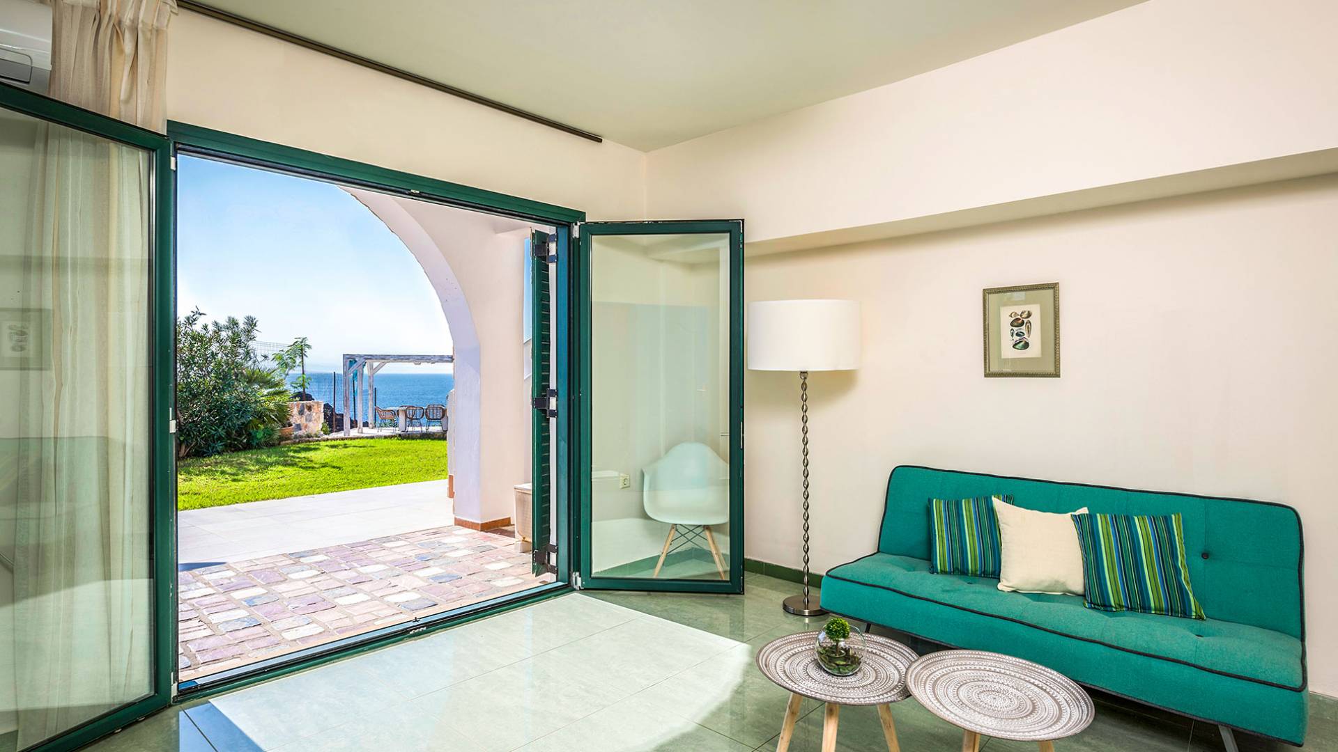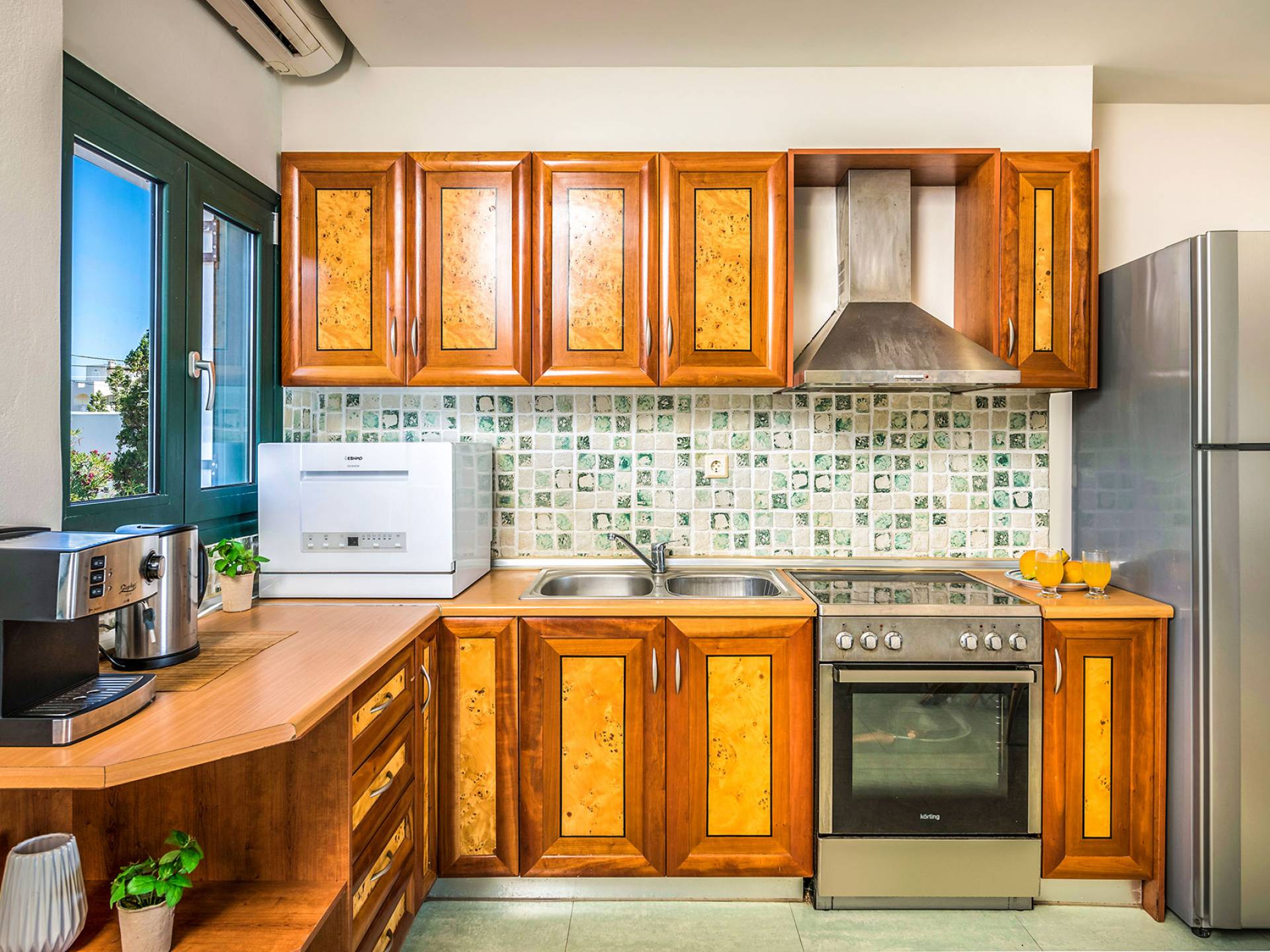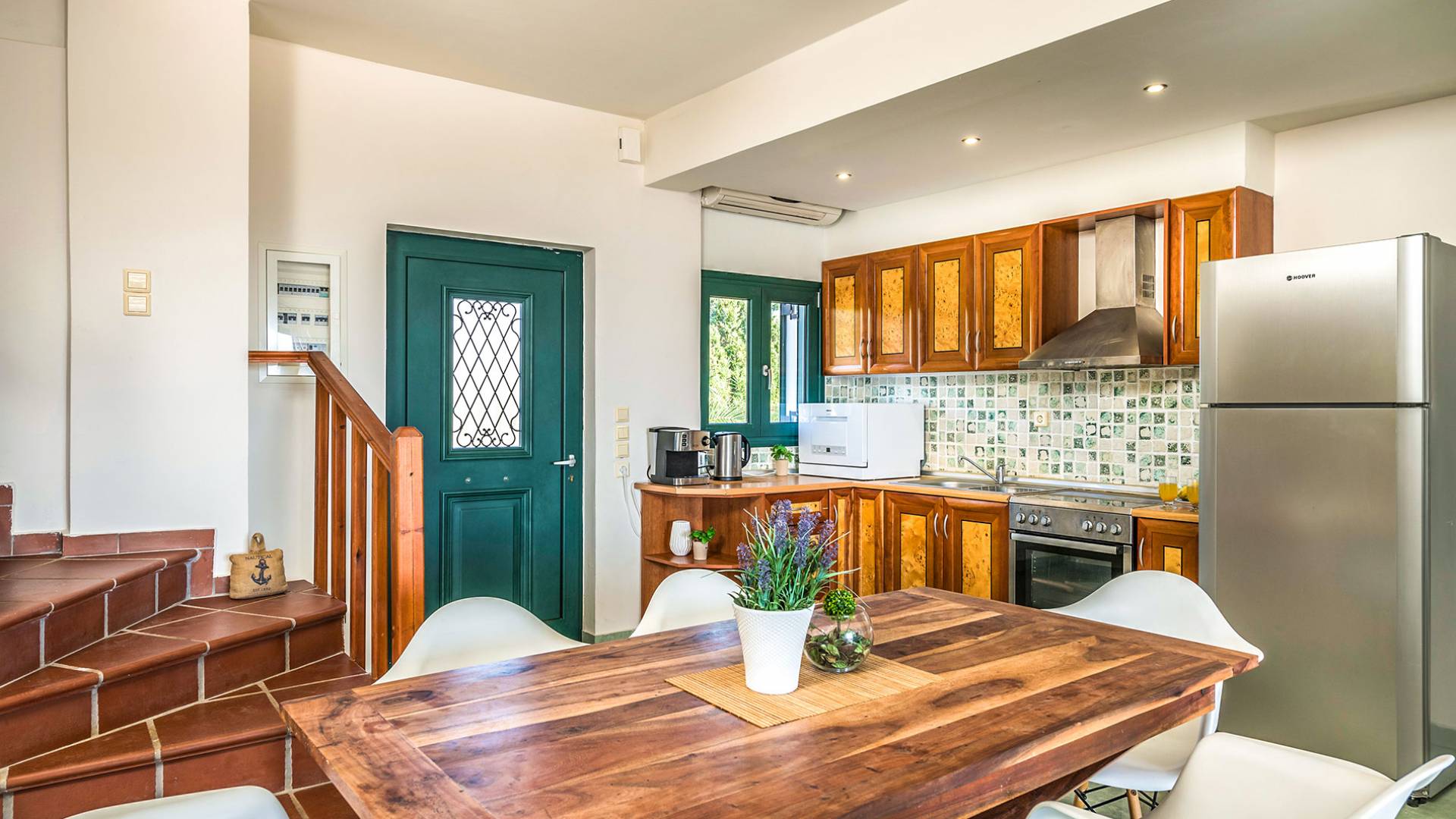 The location of the villa and superb views were magnificent. The fridge was full of all essentials when we arrived and there were lots of extra goodies too. The owner was very helpful and went. The village of Tersanas was a friendly place to eat and shop with lovely restaurants and shops. The airport is also just 10 minutes away. The villa has modern design and spacy rooms that we loved. I would highly recommend this villa.
