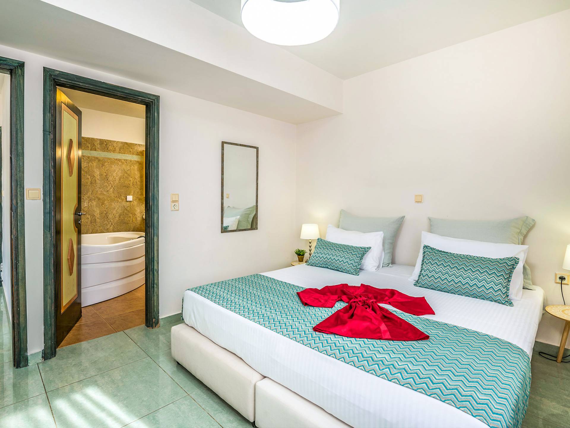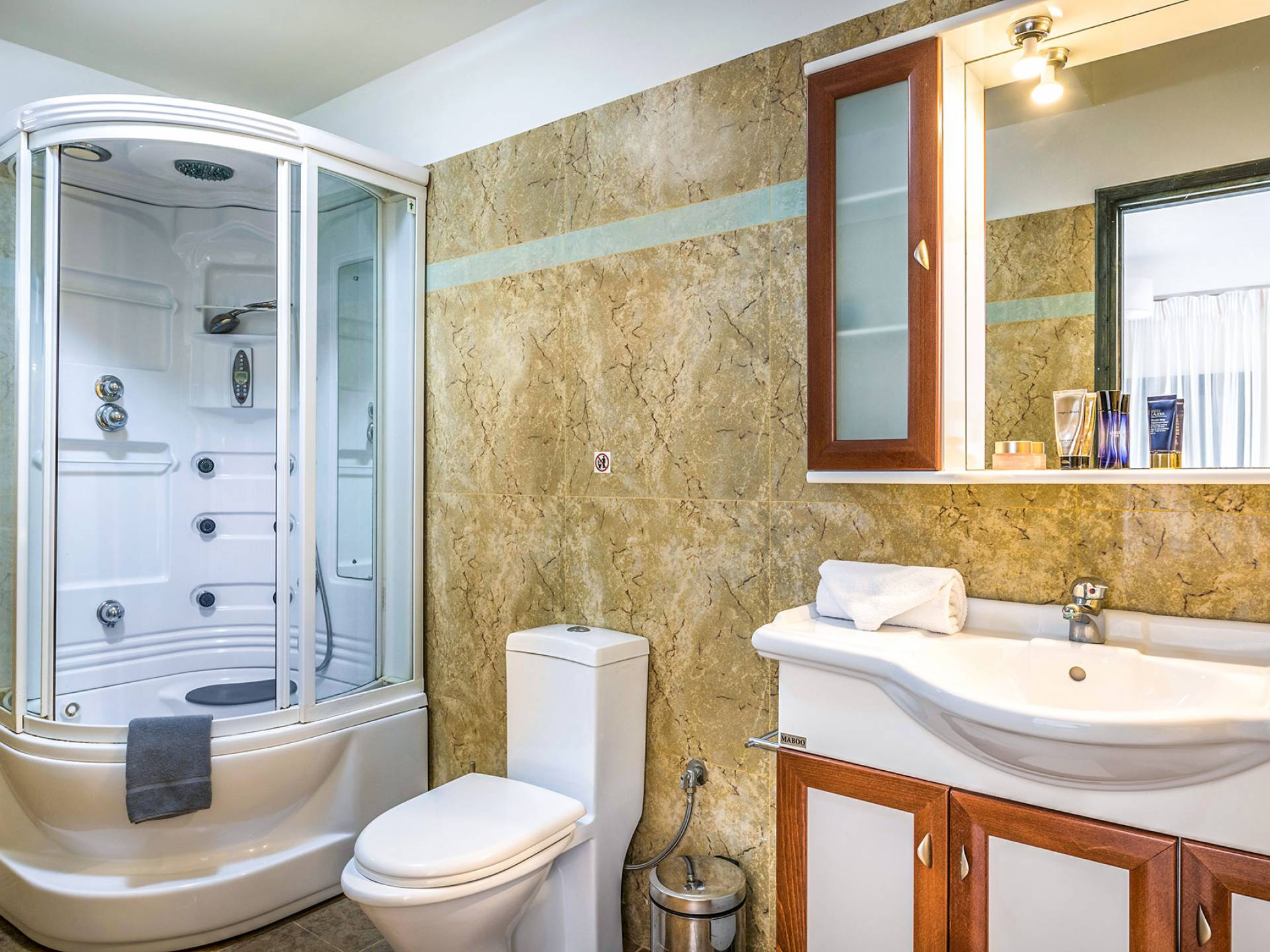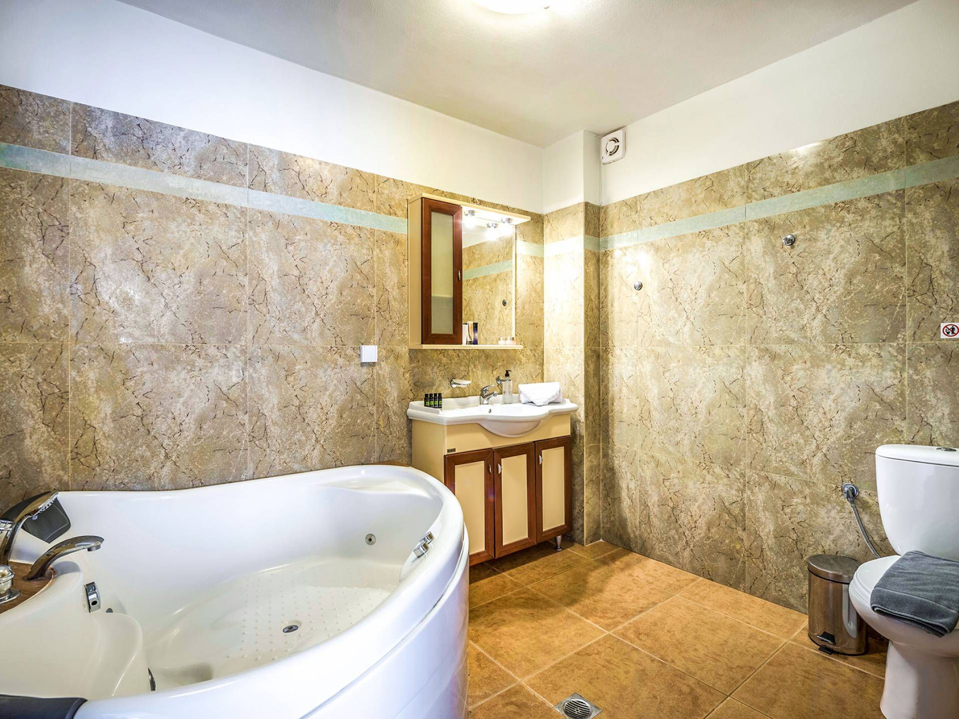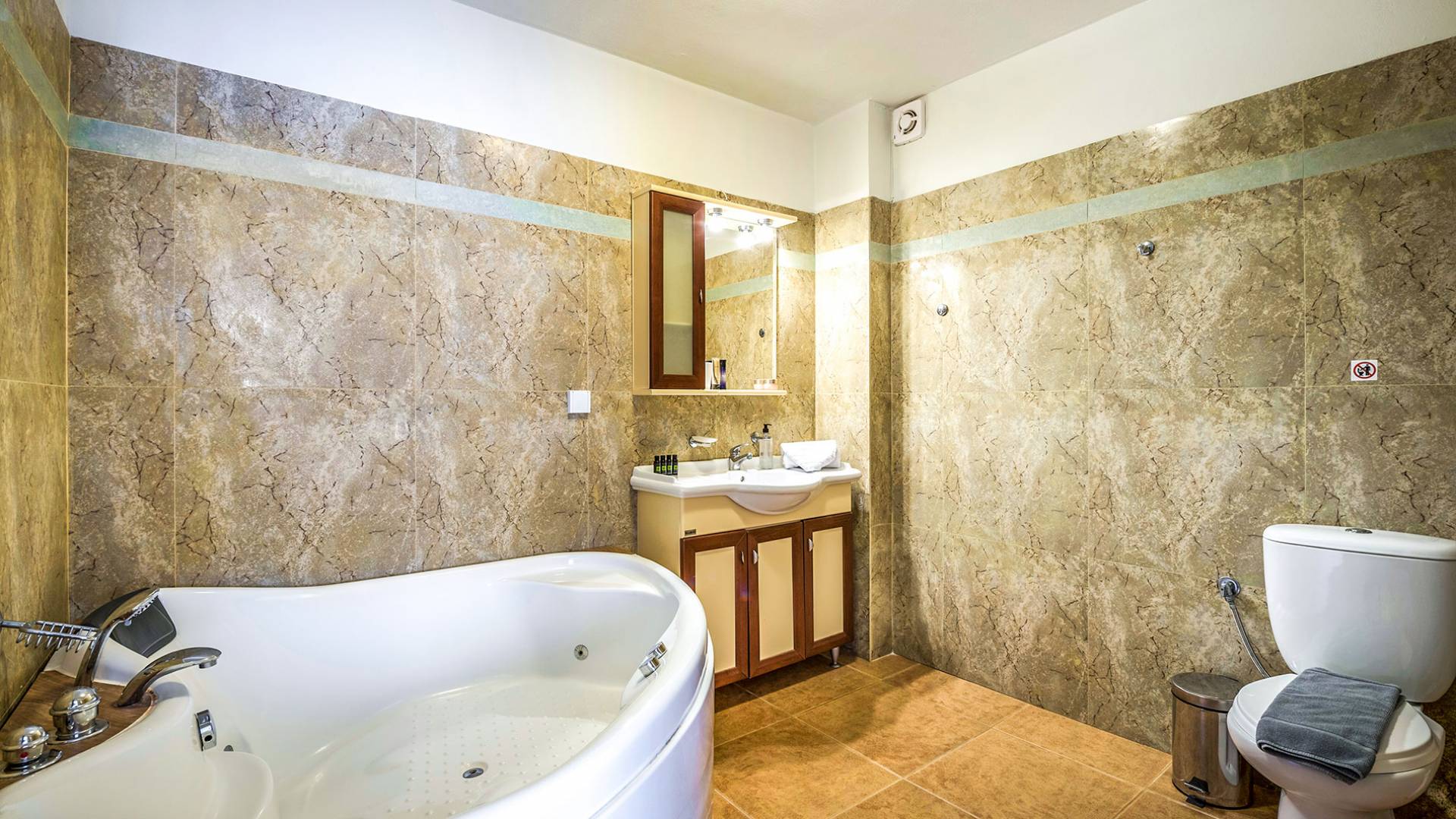 Each bedroom has ensuite bathroom with Jacuzzi tub or Jacuzzi shower, satellite TV and air conditioning.