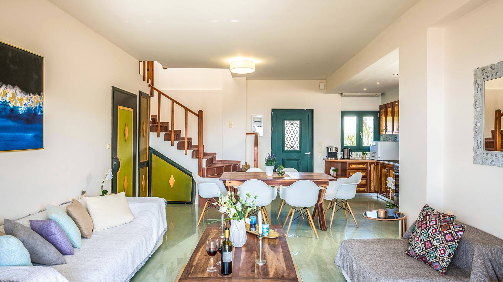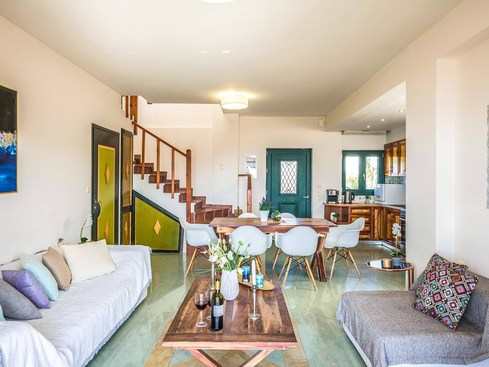 Seven of us stayed here in October 2019. The villa is beautiful. There was so much space and would comfortably sleep a few more people. The pool was lovely was great views out to sea. There are plenty of sun loungers and lots of space in different parts of the garden to sit and eat or have a drink. The nearest beach is walkable. Chania is about half an hour in a taxi. Konstantina was very welcoming and gave us all the information she needed. She also was happy to answer any questions we had whilst we were there. Overall this is a fantastic place to stay and I would highly recommend it.