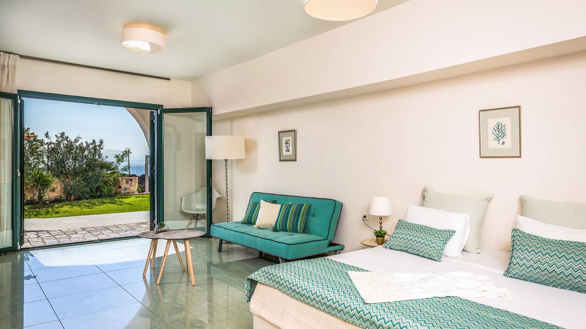 Villa Fedra Chania is a luxury villa to rent with 7 bedrooms and private pool. Villa Fedra Chania is a lovely villa by the sea, located at Tersanas village, with its own private pool and a breathtaking view of the endless blue. The villa has seven bedrooms and it can accommodate up to 14 people since one of the bedrooms is very large and has one double bed and two twin beds.