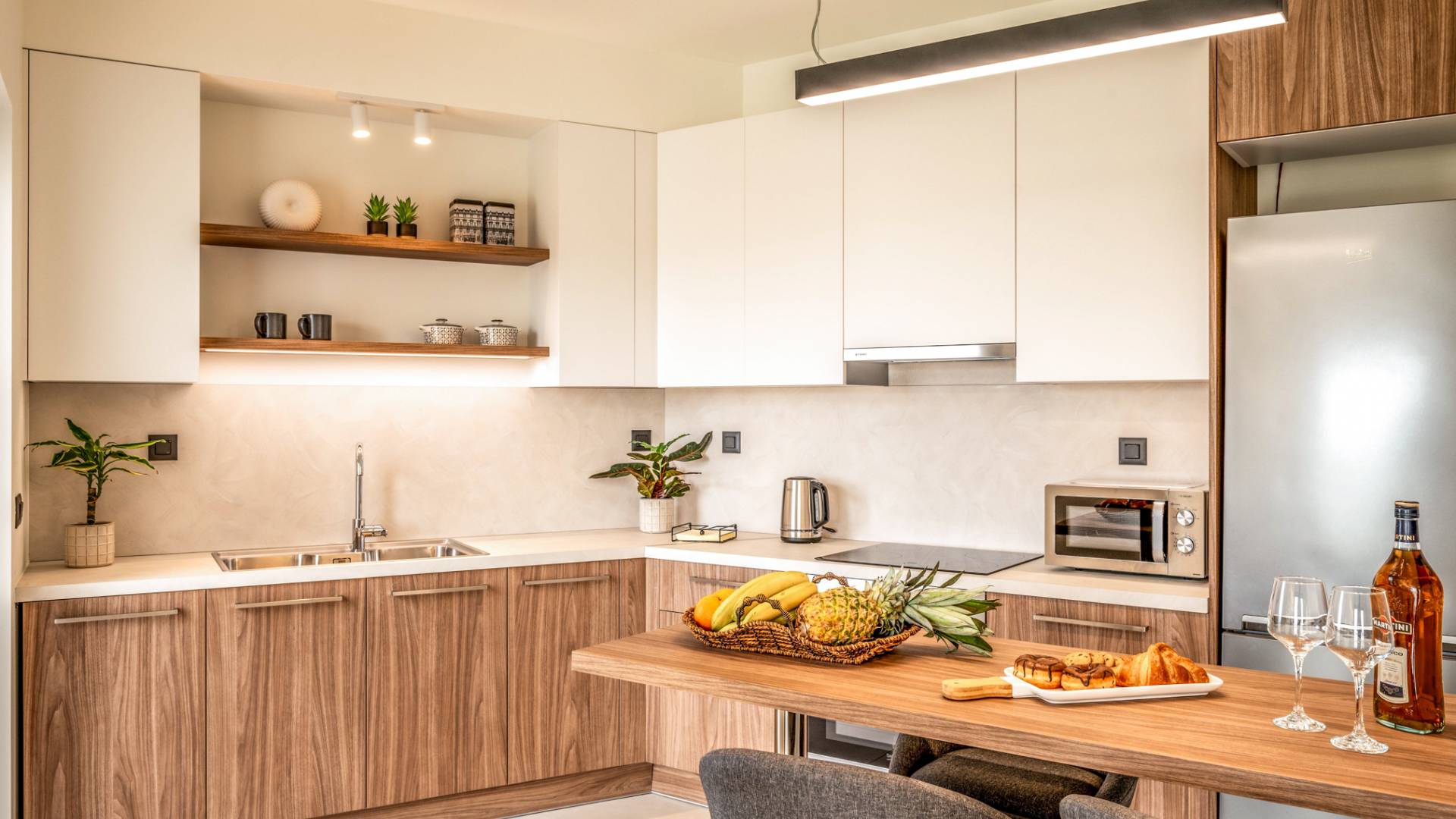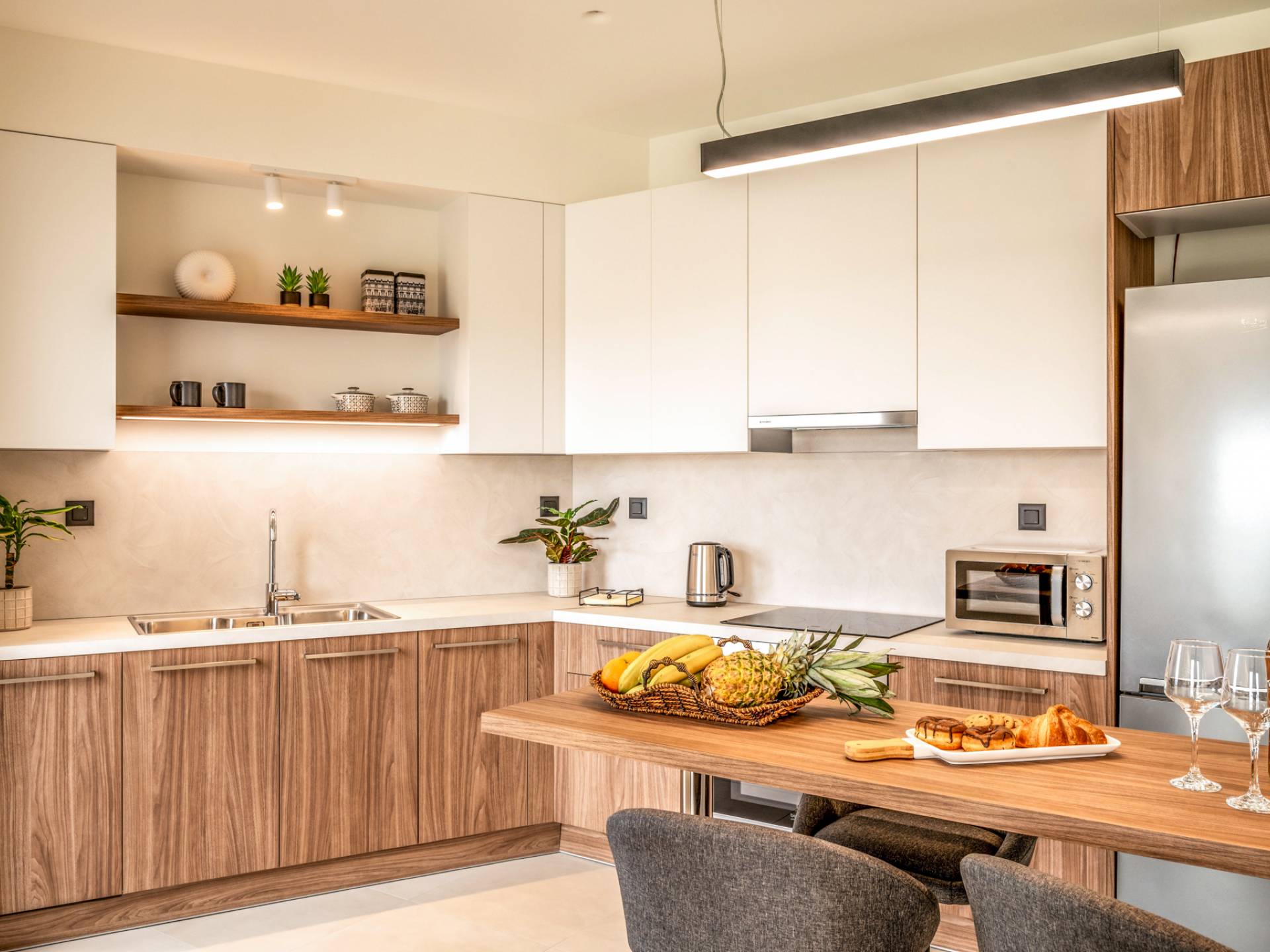 - Fully equipped open-plan kitchen