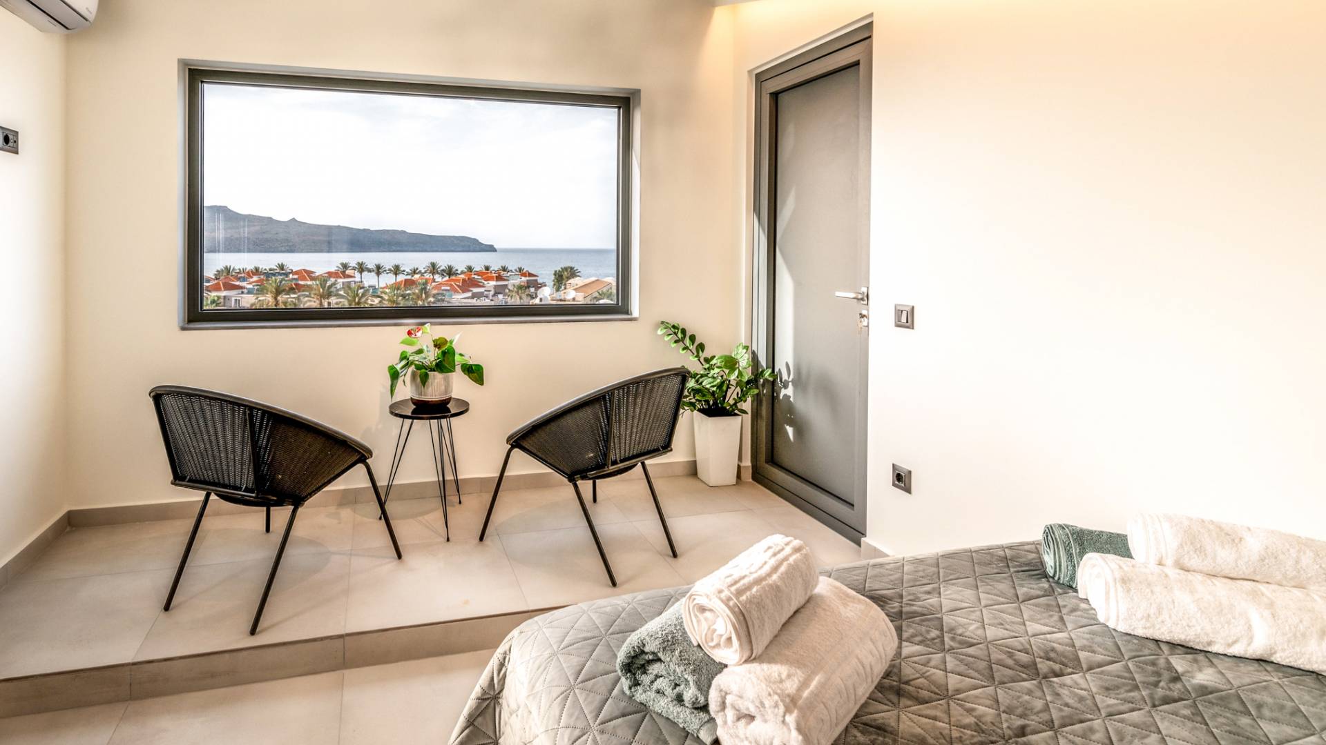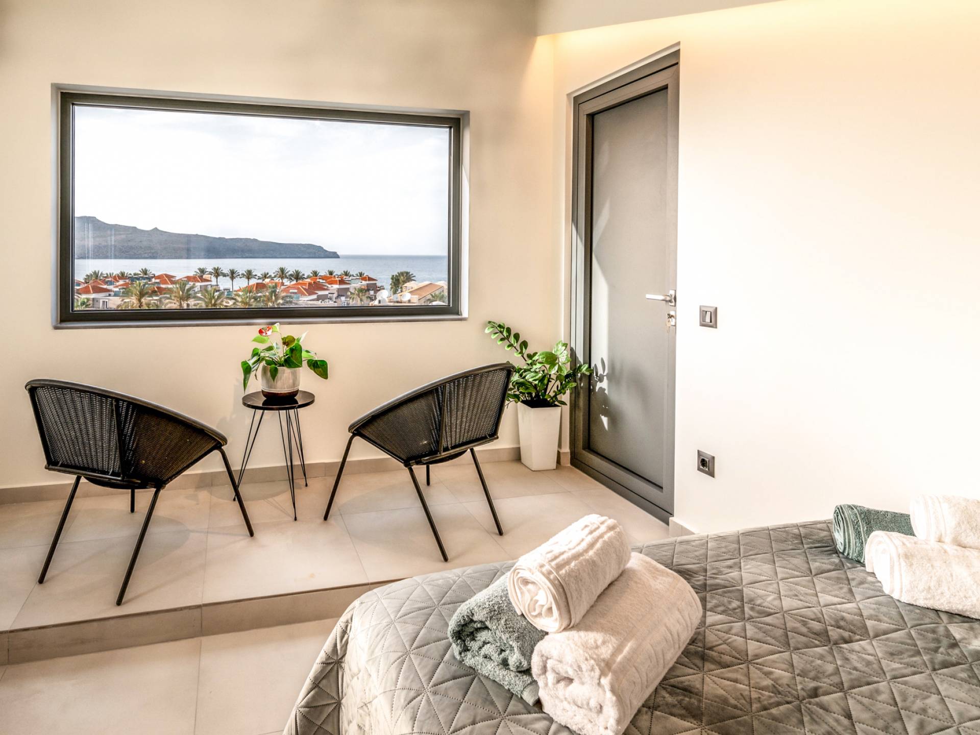 - Large windows with panoramic sea views