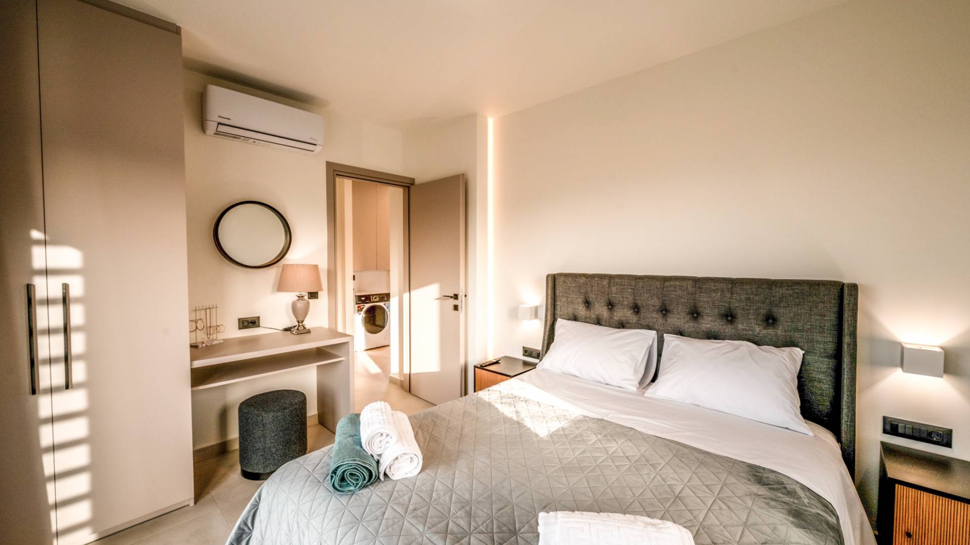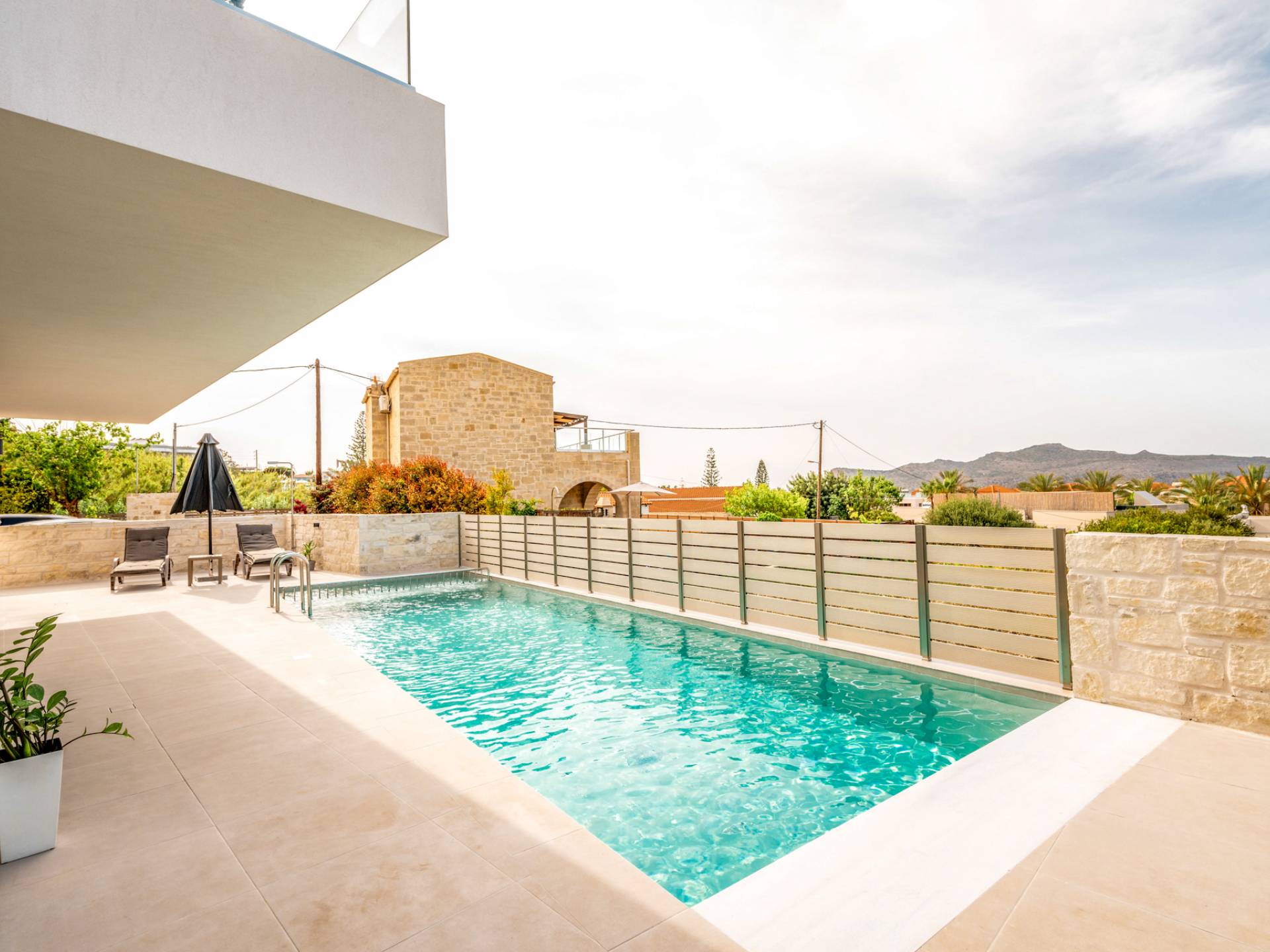 Villa Icons Chania, a newly built villa blends modern style with comfort, offering a serene retreat just 100m from the beach of Agia Marina. Perfectly positioned in the heart of the village, guests enjoy easy access to charming cafes, shops, and restaurants. The private yard features a private pool, ideal for moments of true relaxation and unwinding under the sun.
