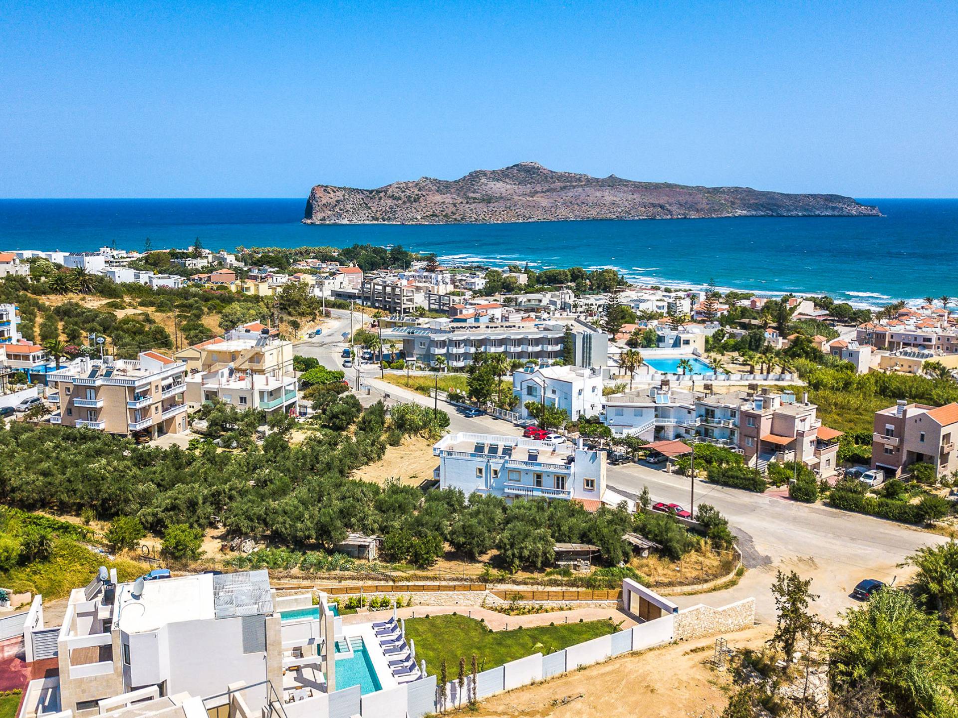 Tucked along the sun-kissed coastline of northwestern Crete, Agia Marina is a vibrant seaside village that perfectly blends natural beauty, Cretan charm, and modern comforts. Just 9 kilometers west of Chania, it has become one of the most sought-after destinations for travelers seeking a balance of relaxation and adventure — and there's no better way to experience it than from the comfort of a private villa.