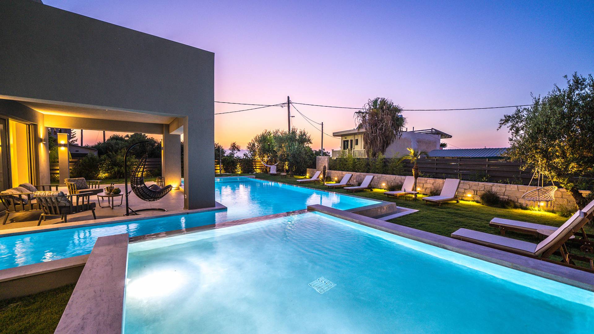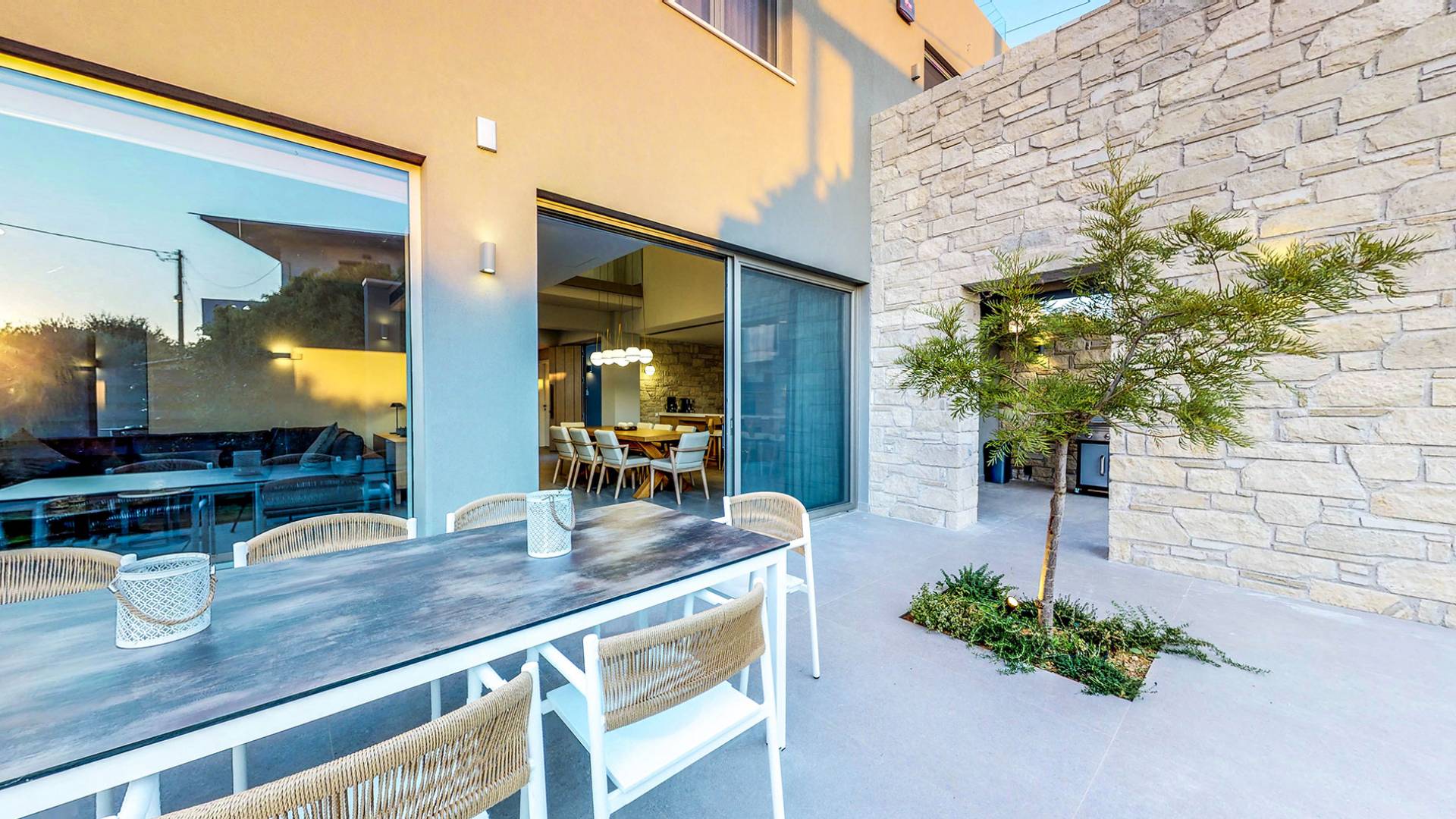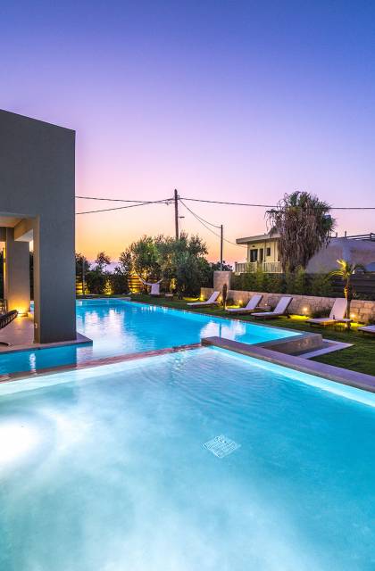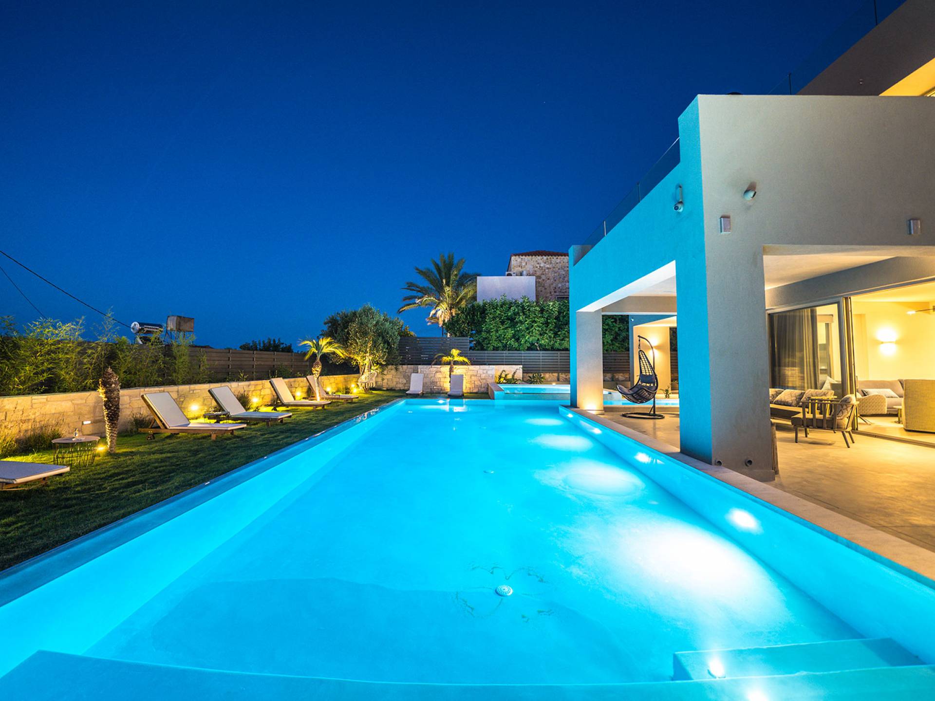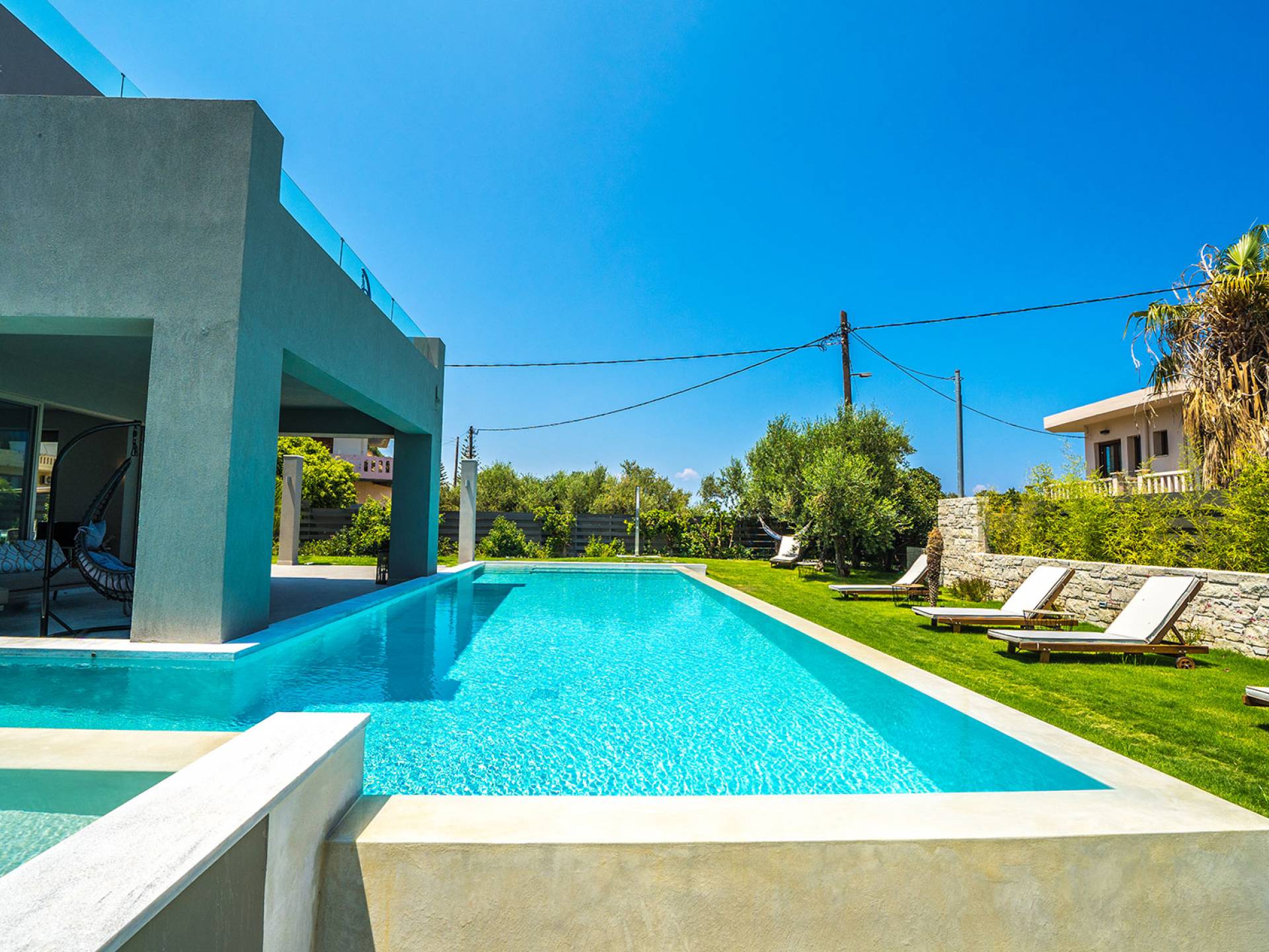 In the most touristic area of Chania, Platanias, created this modern luxury villa. Villa Sese Chania features a modern design and minimalist décor. It is the ideal choice for families and couples seeking a quiet and safe stay in Chania. The privileged location of the villa offers the visitor moments of relaxation and privacy combined with the intense nightlife in the area of Platanias. The sandy beaches and the countless options for entertainment create an ideal place for vacation.