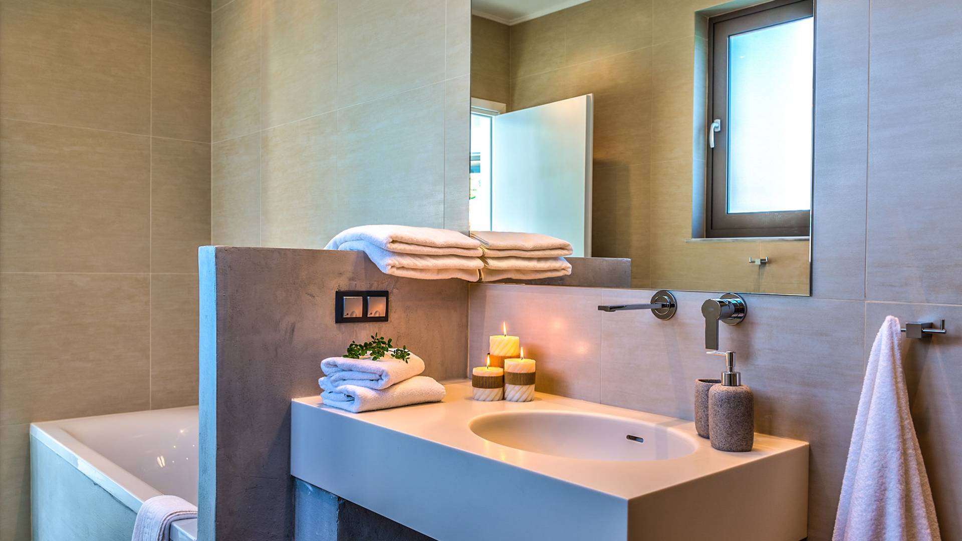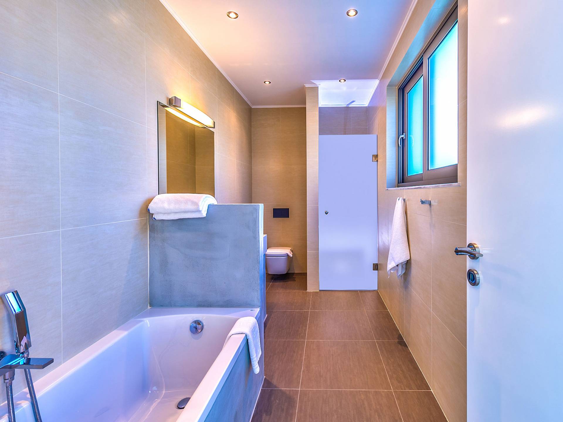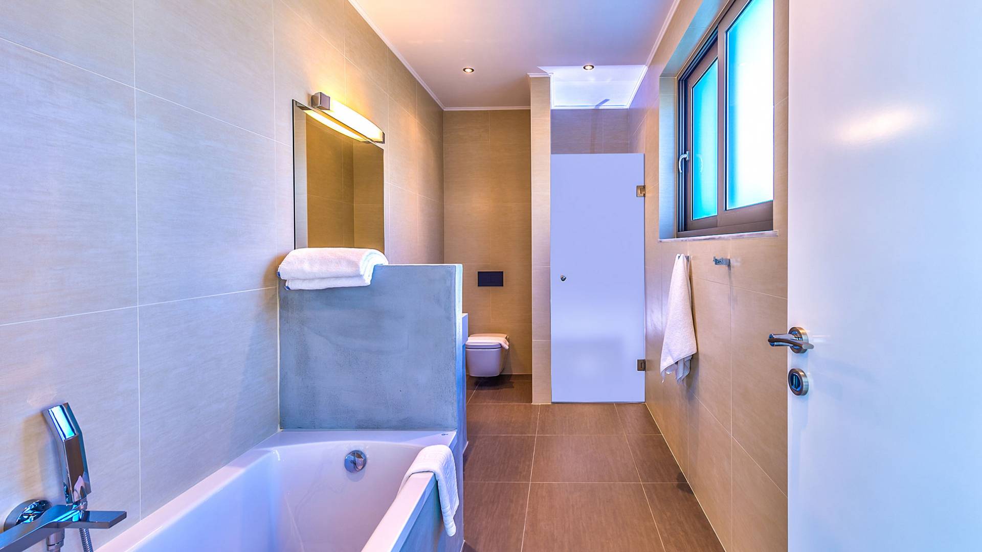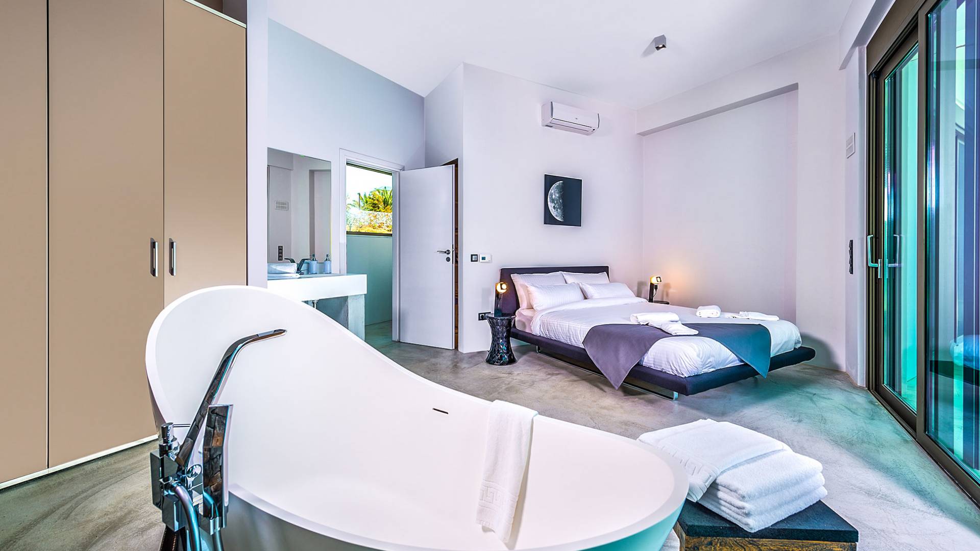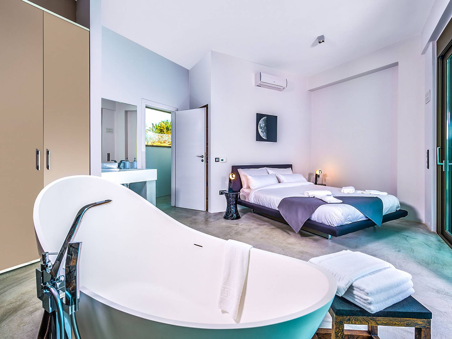 - Bedroom 1: Double bed, freestanding bathtub, terrace access