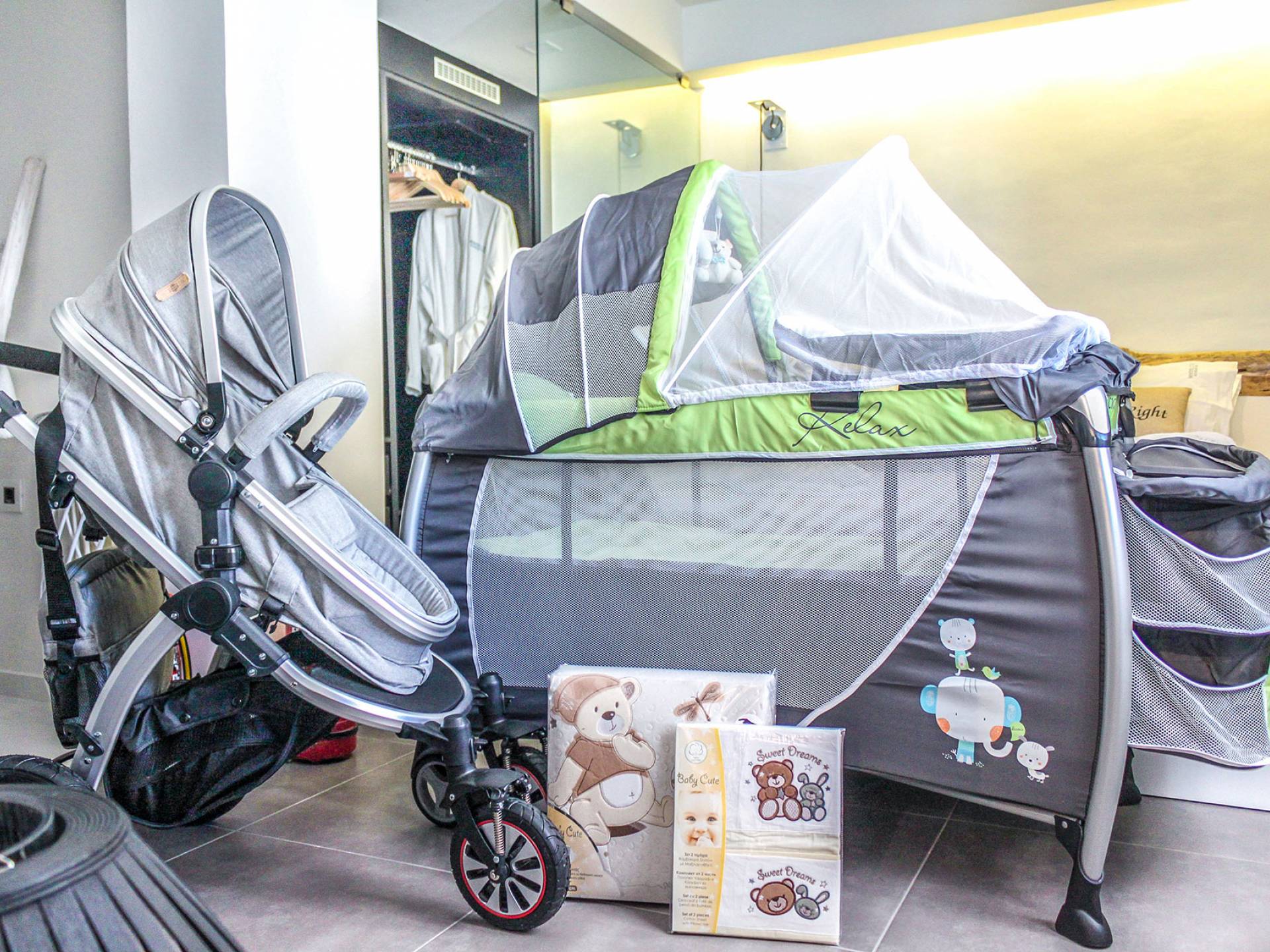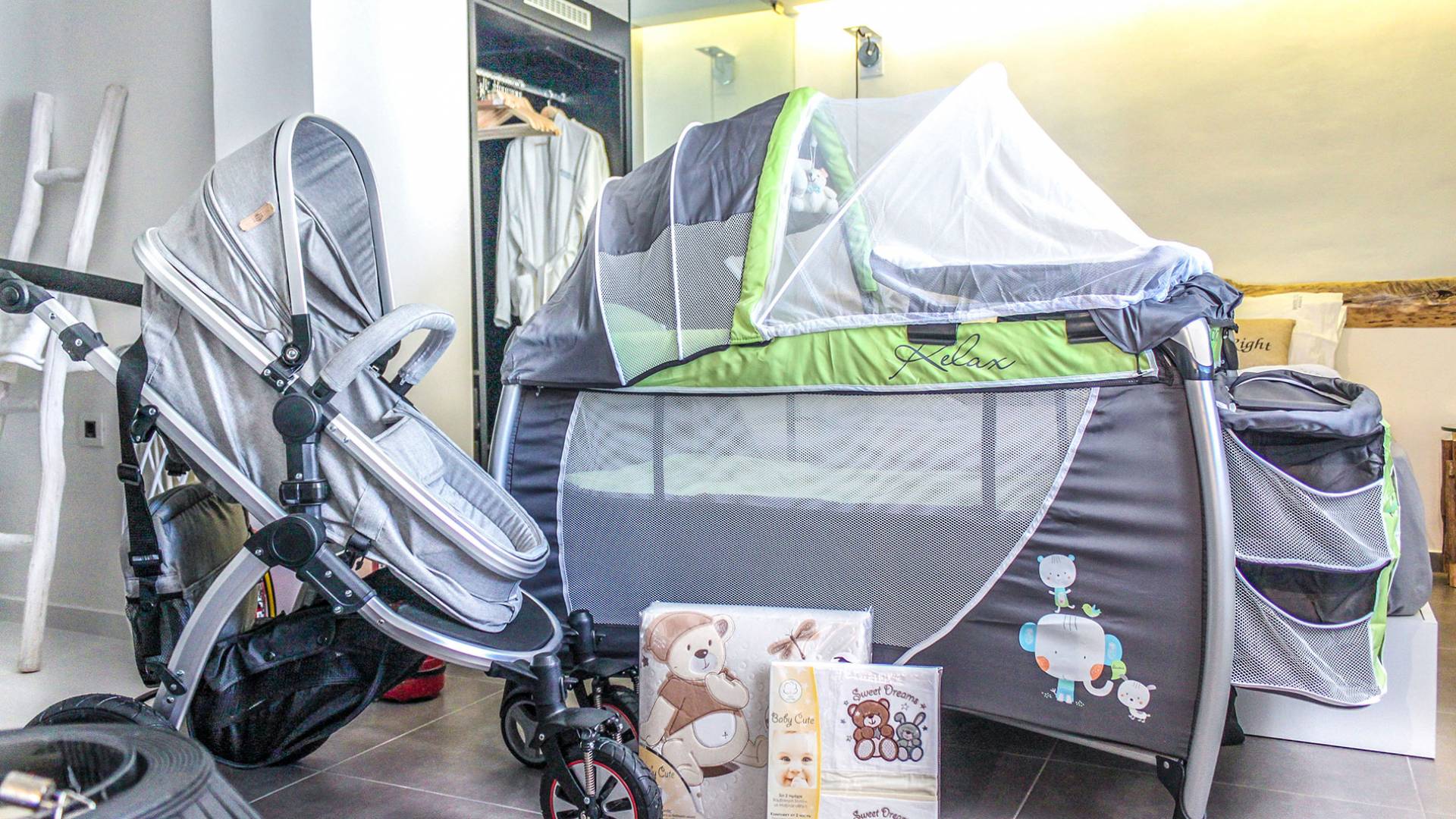 - Baby cot, high chair, and child-safe facilities