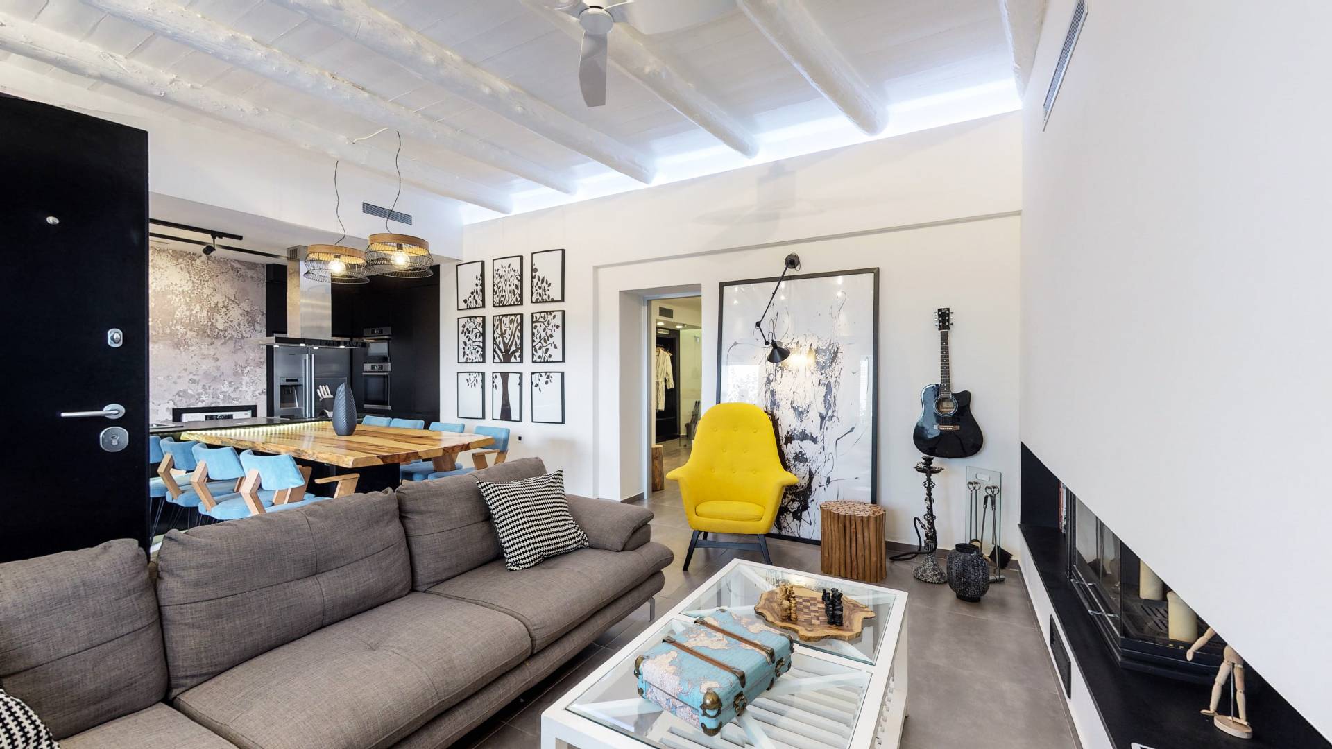 - Elegant open-plan living area with fireplace, Smart TV & PS4