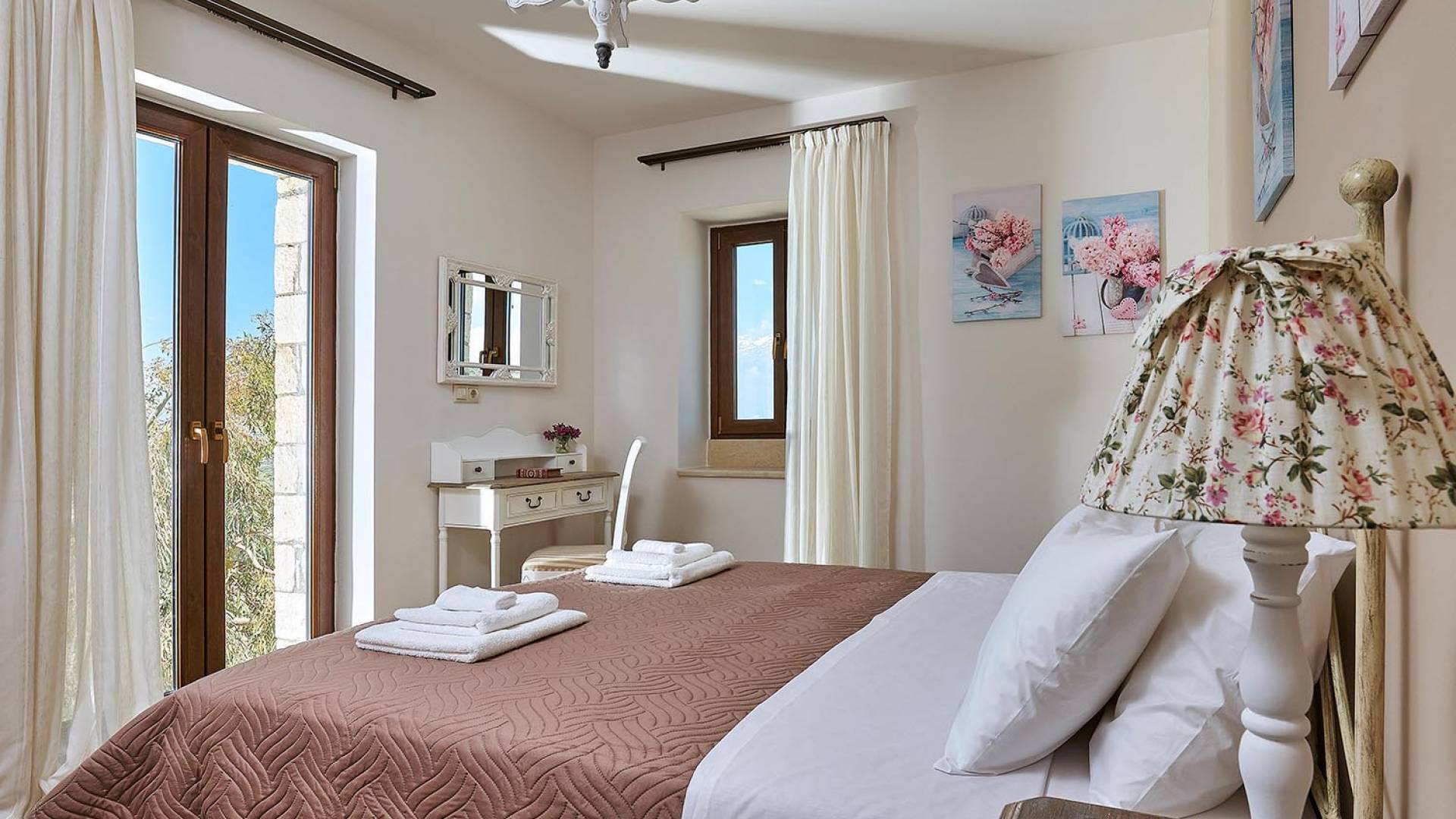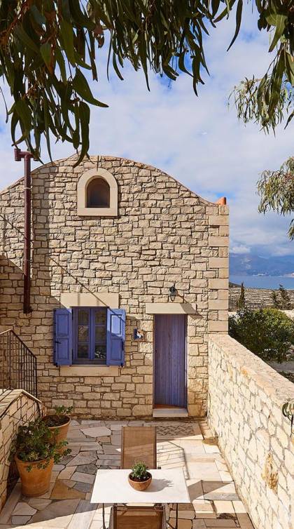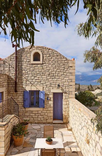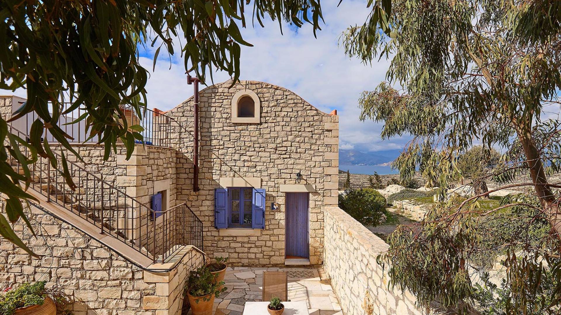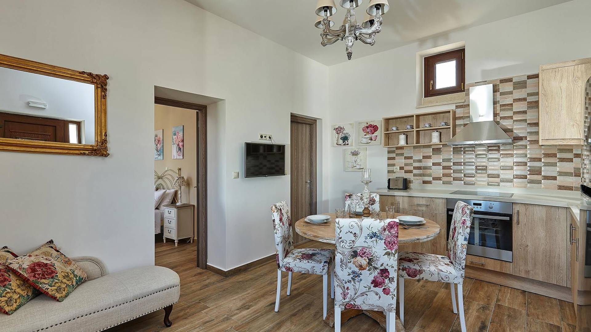 1 Bedroom Villas at Orelia Cretan Villas: Individual natural stone villa of 45 sqm in size, with living room and a fully equipped kitchen, a bedroom with double bed, and a bathroom, suitable for 2 persons.