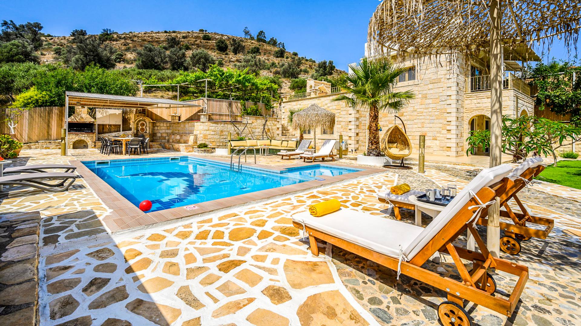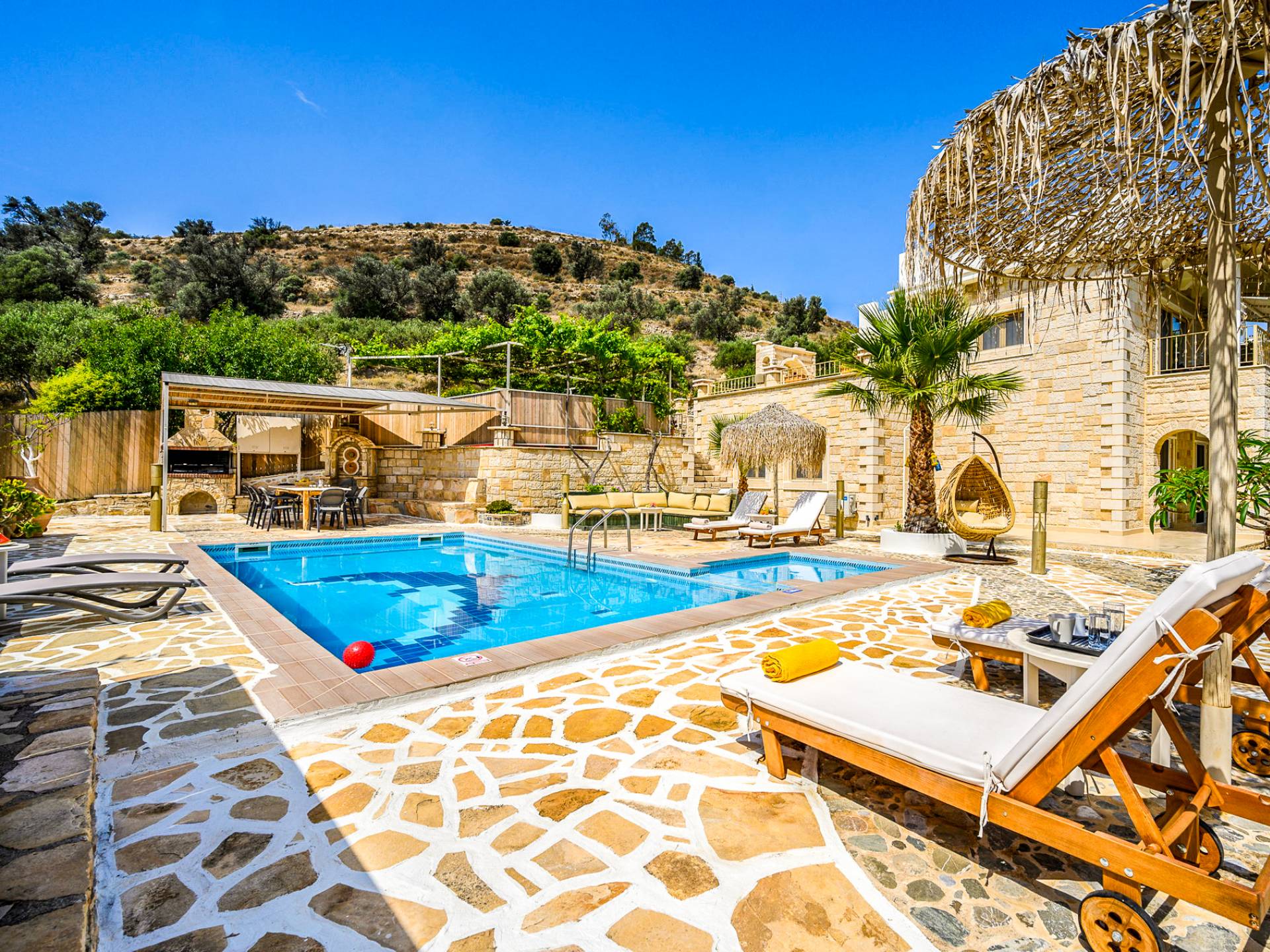 During your stay, Anesis Family Villas wish for you to be able to throw any weight off your shoulders and connect with the beautiful environment that surrounds you as well as with the pleasant attitude of the locals. Your comfort is of utmost importance, thus the villas offer top quality mattresses, beddings & toiletries. In the villa, you will find everything you need to prepare a fresh & tasty meal, everything you need to relax by the pool or enjoy a night with friends at the bbq area.